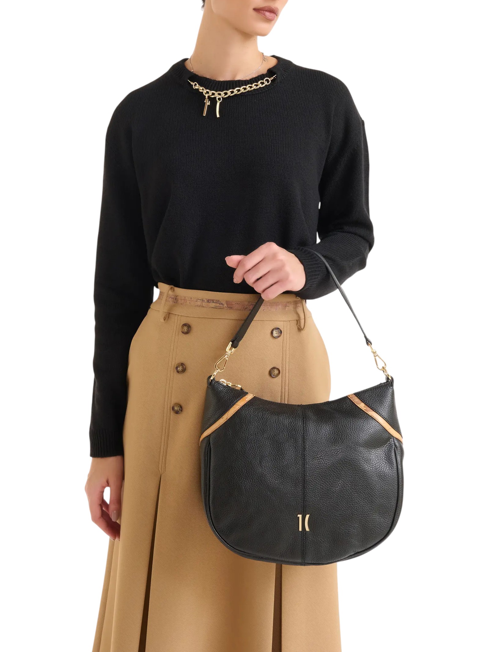 La linea morbida della sottospalla Castle Leather valorizza la pregiata pelle granata. Il design è caratterizzato da inserti a lancia in nappa stampa Geo Classic, ispirati alle forme dell'architettura neogotica scozzese, e dal taglio centrale che percorre i volumi ampi: l'effetto è minimal e armonioso, impreziosito dal maxi logo 1C in oro chiaro. La portabilità è sottospalla o crossbody grazie allo spallaccio e alla tracolla in nastro stampa Geo Classic, entrambi rimovibili, mentre l'interno è organizzato in più tasche. L'alleata perfetta per look daily funzionali e sofisticati.