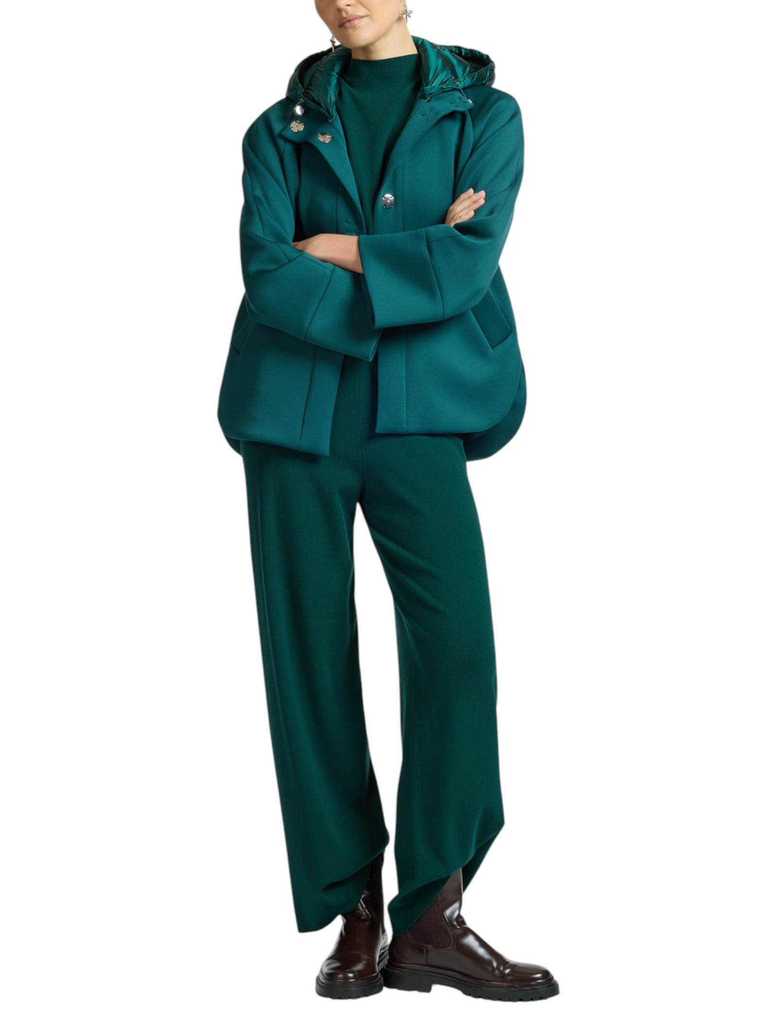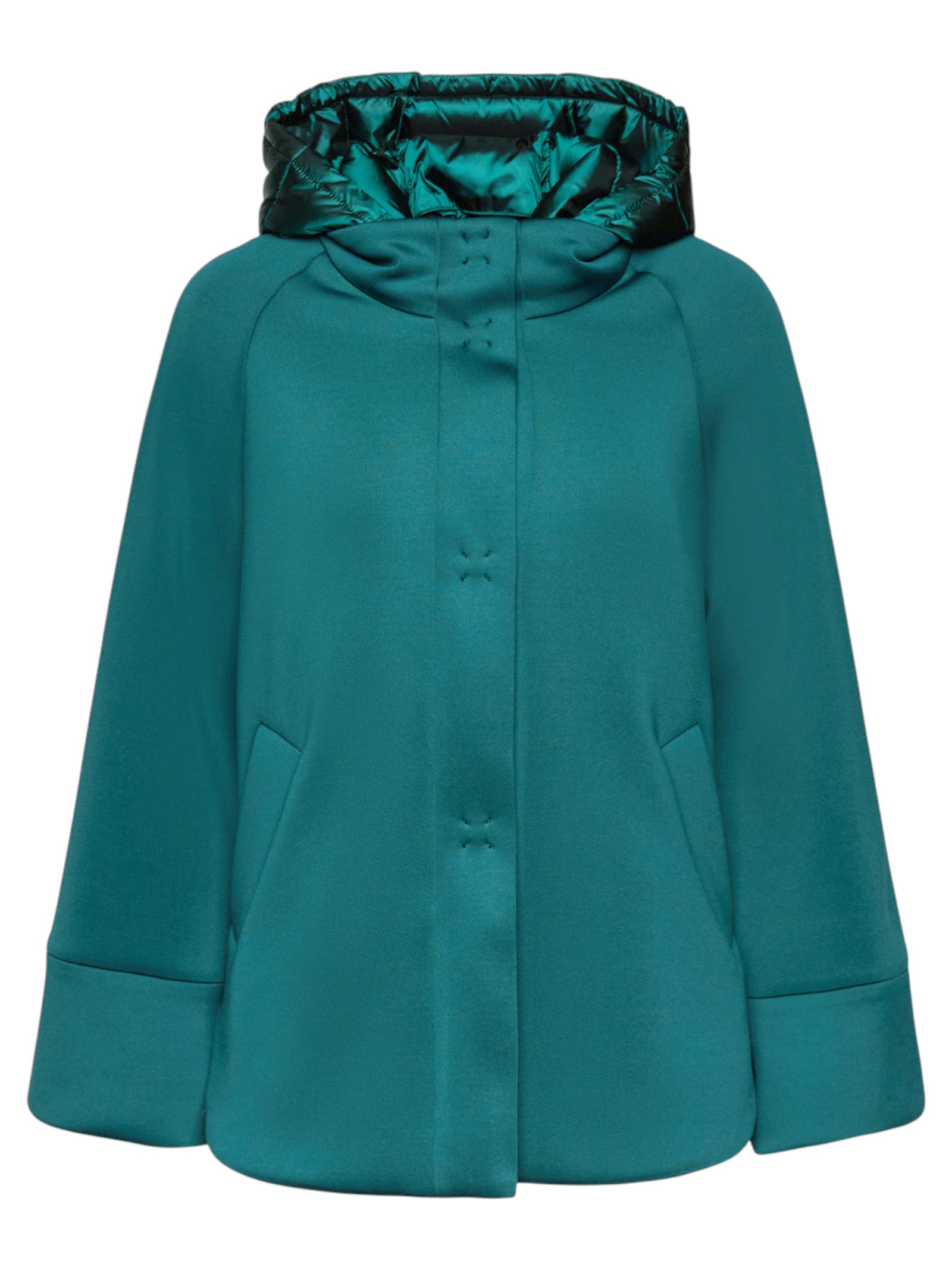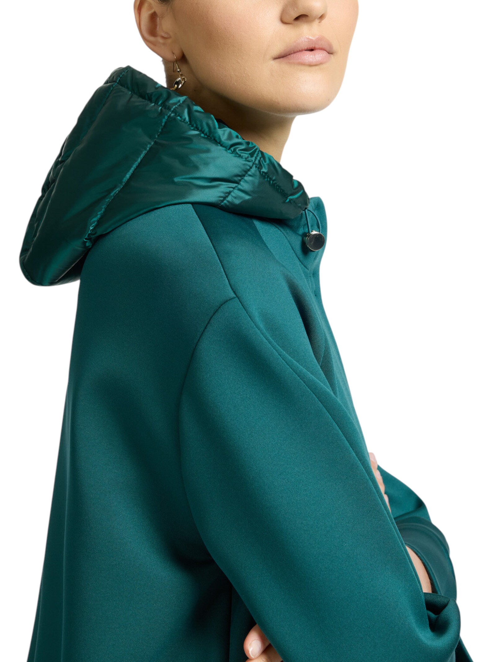 Caban in tessuto scuba ultrastretch con cappuccio staccabile in nylon trapuntato