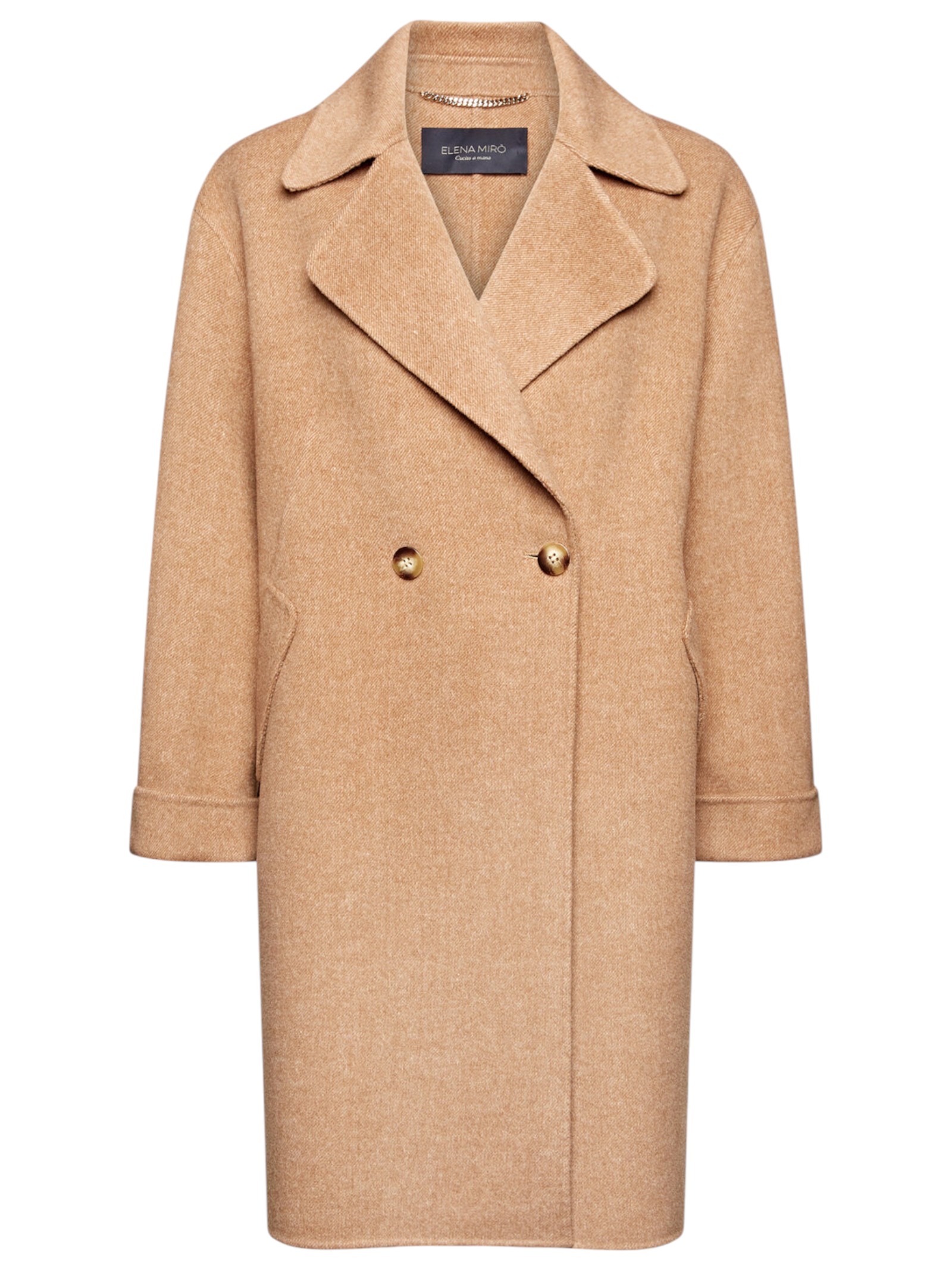Cappotto midi doppiopetto in pregiato tessuto di pura lana, sfoderato