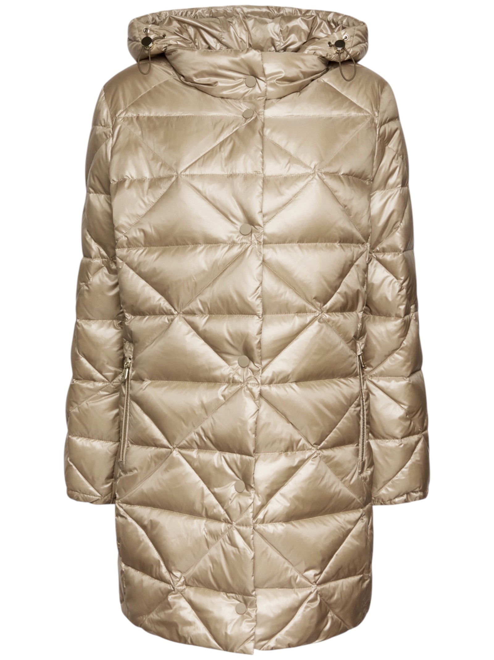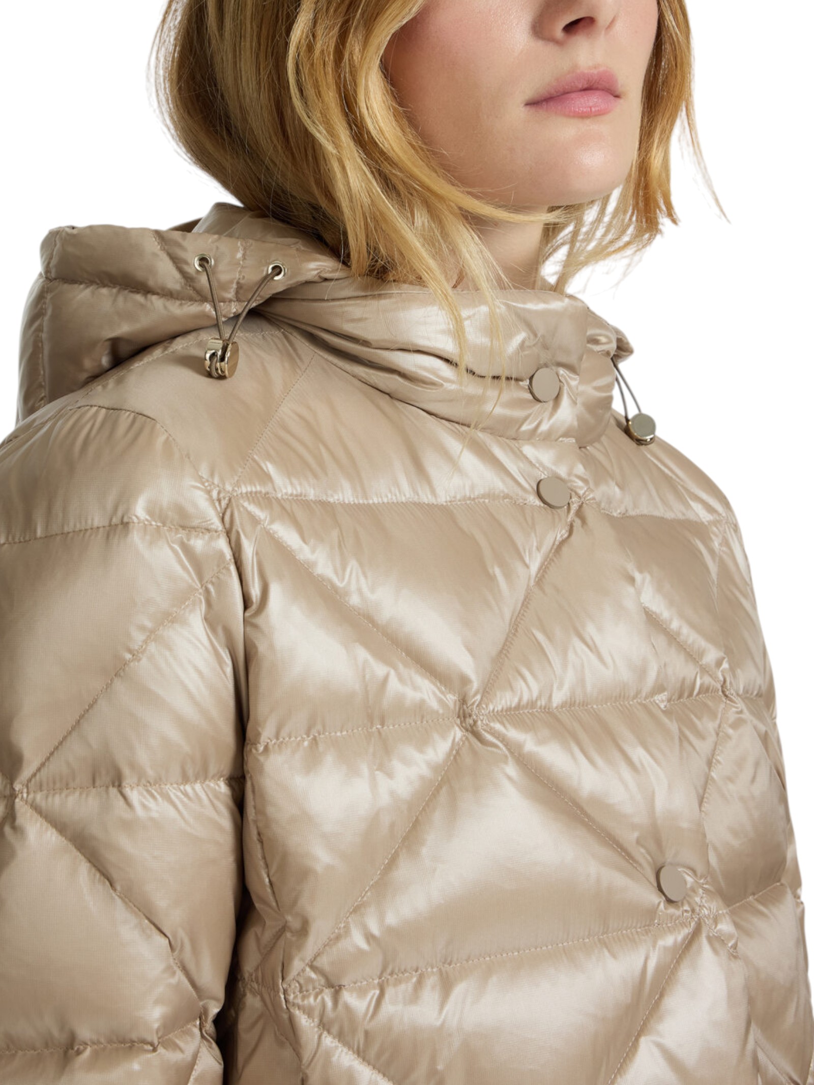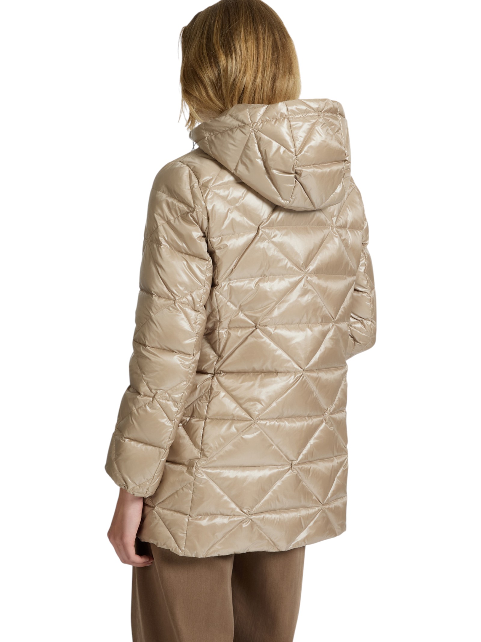 Piumino lungo in nylon antigoccia dalla trapuntatura disegno origami