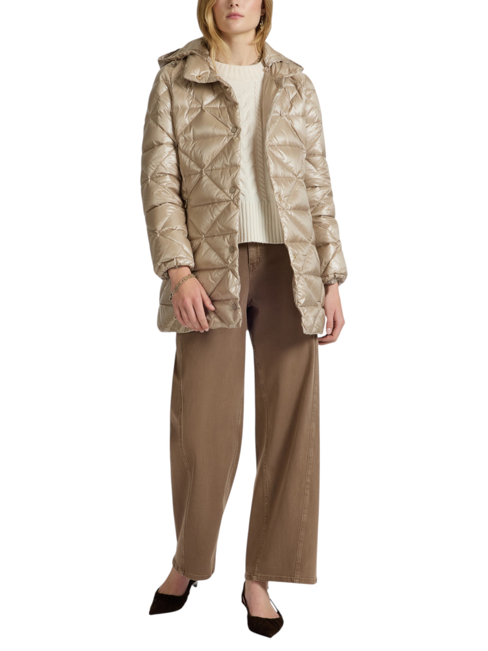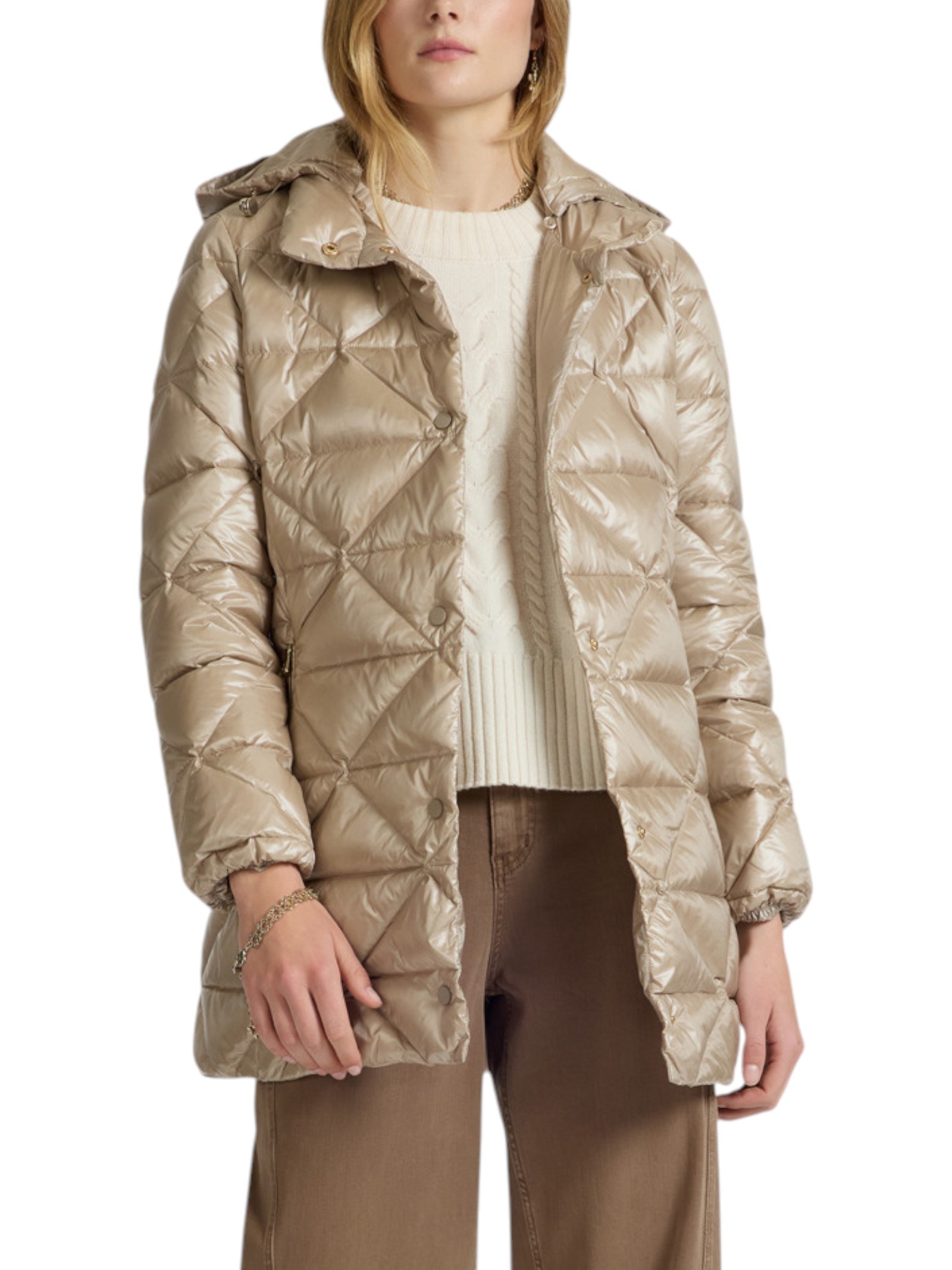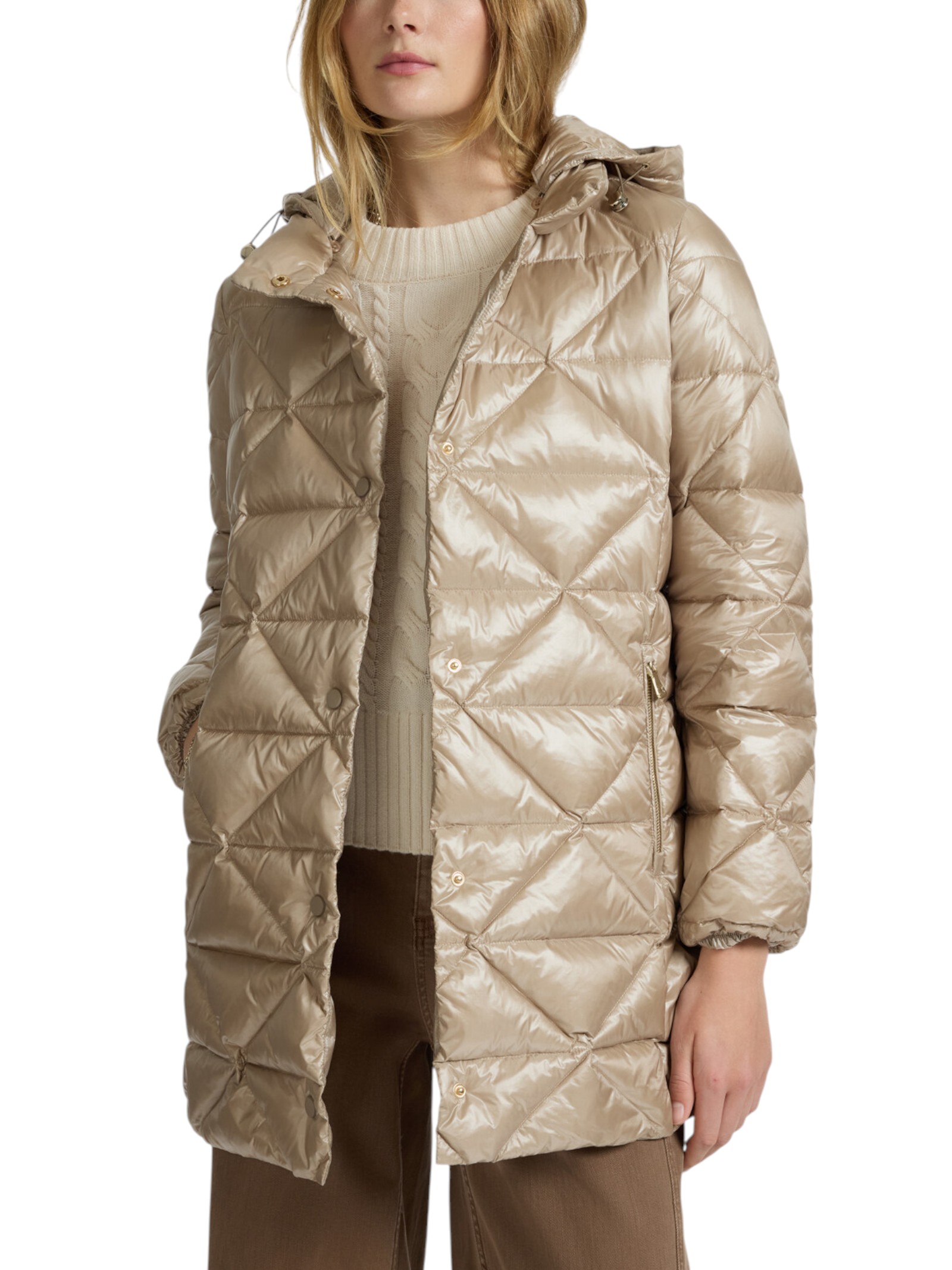 Piumino lungo in nylon antigoccia dalla trapuntatura disegno origami