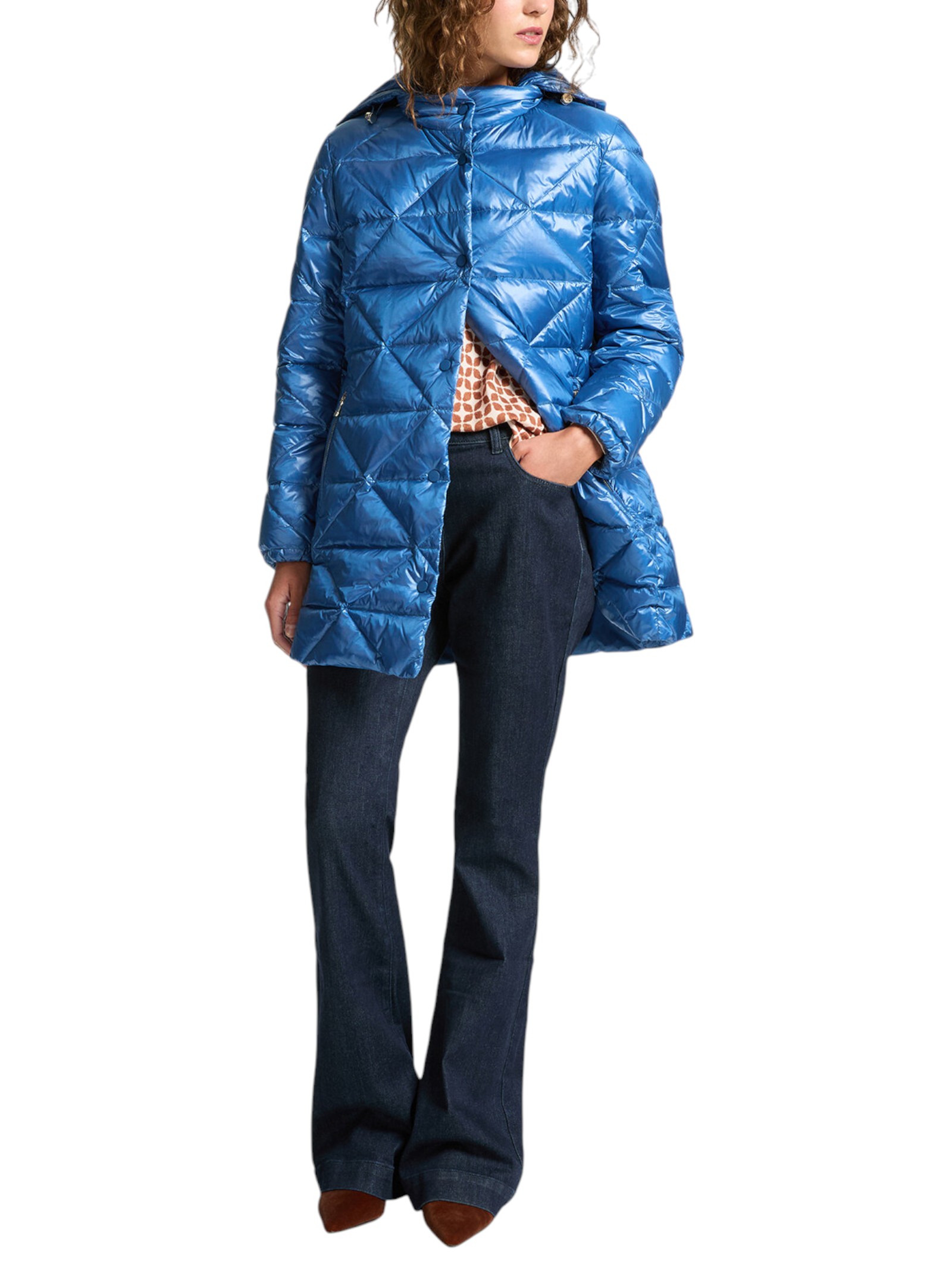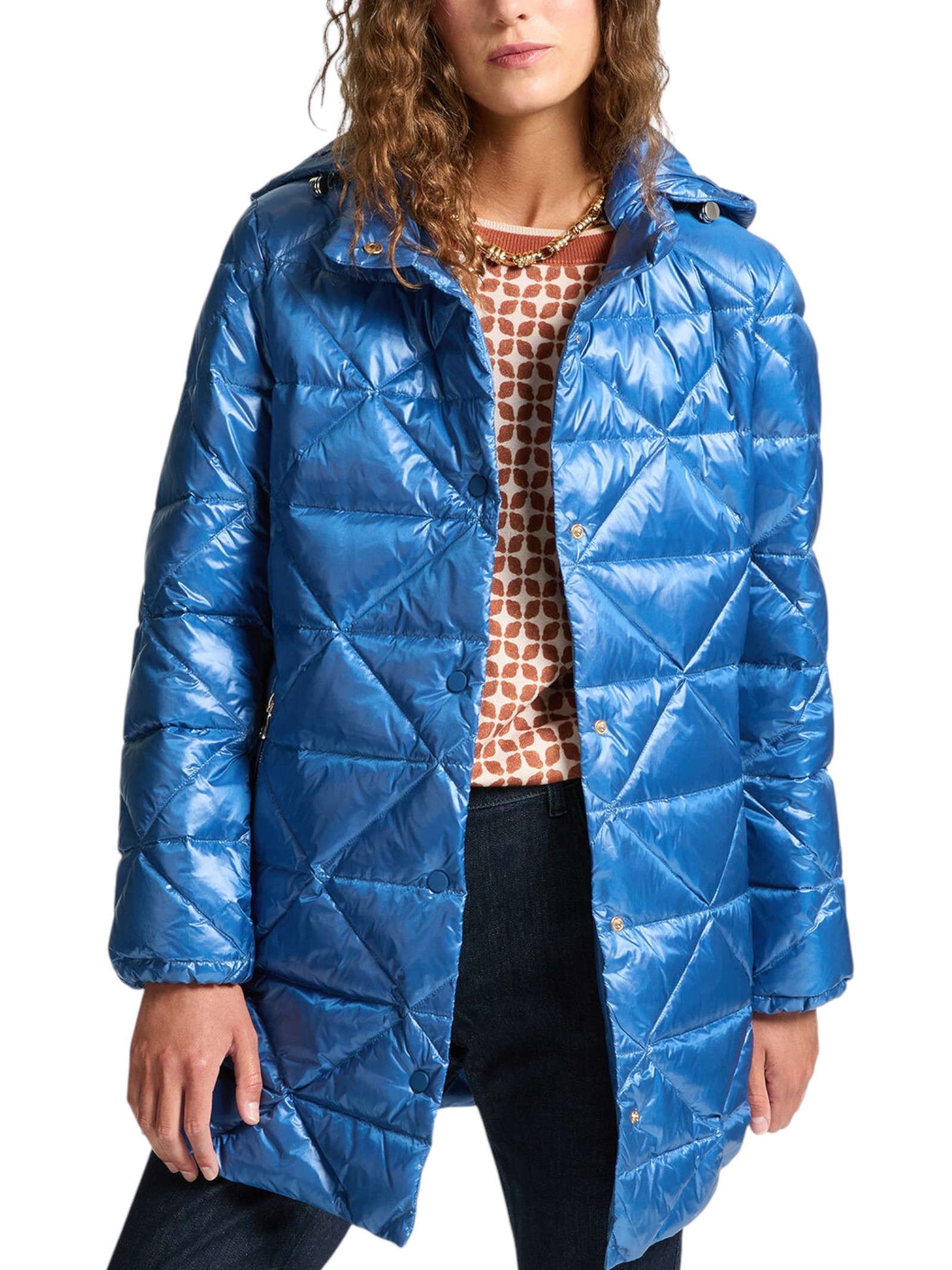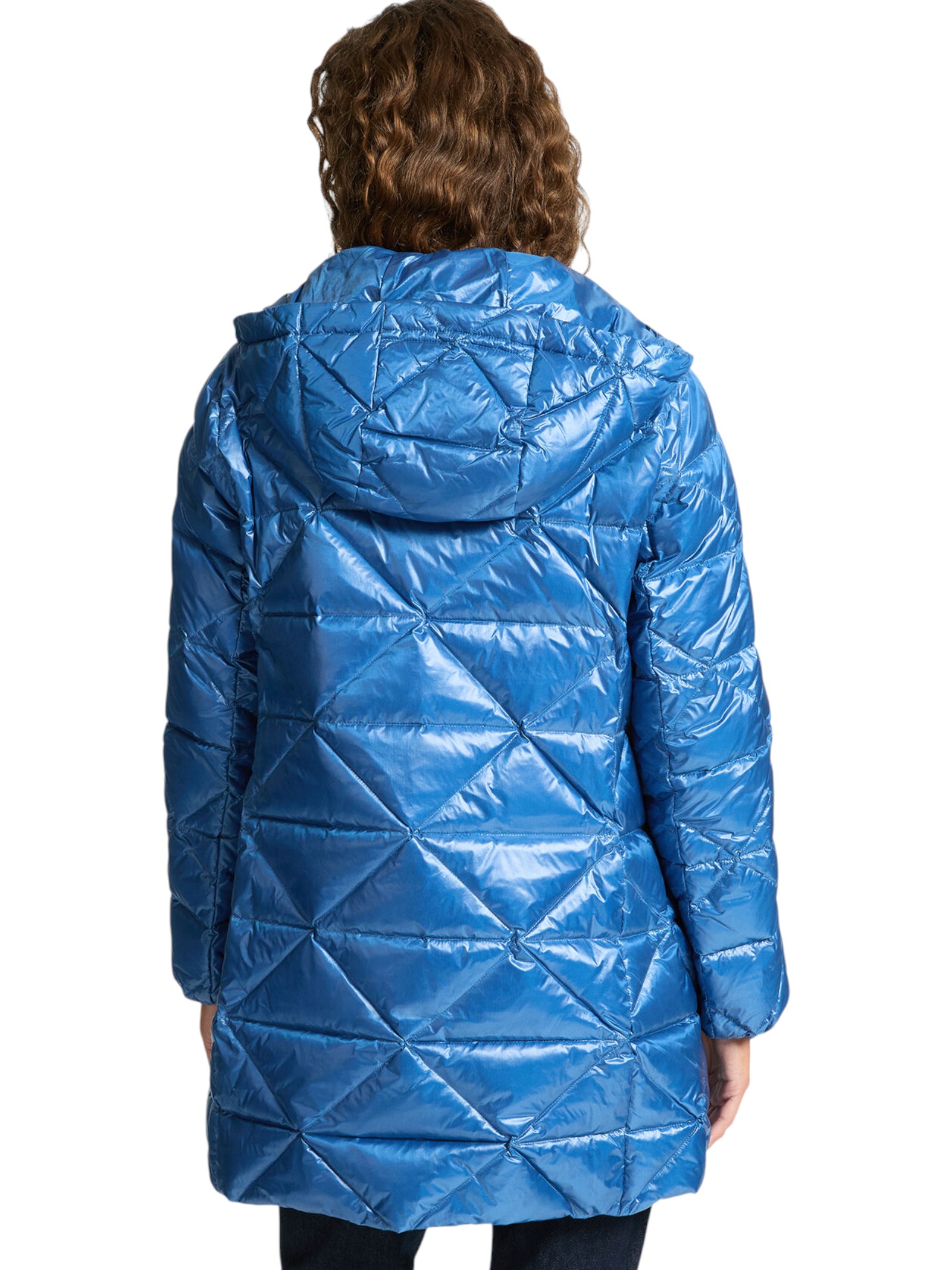 Piumino lungo in nylon antigoccia dalla trapuntatura disegno origami