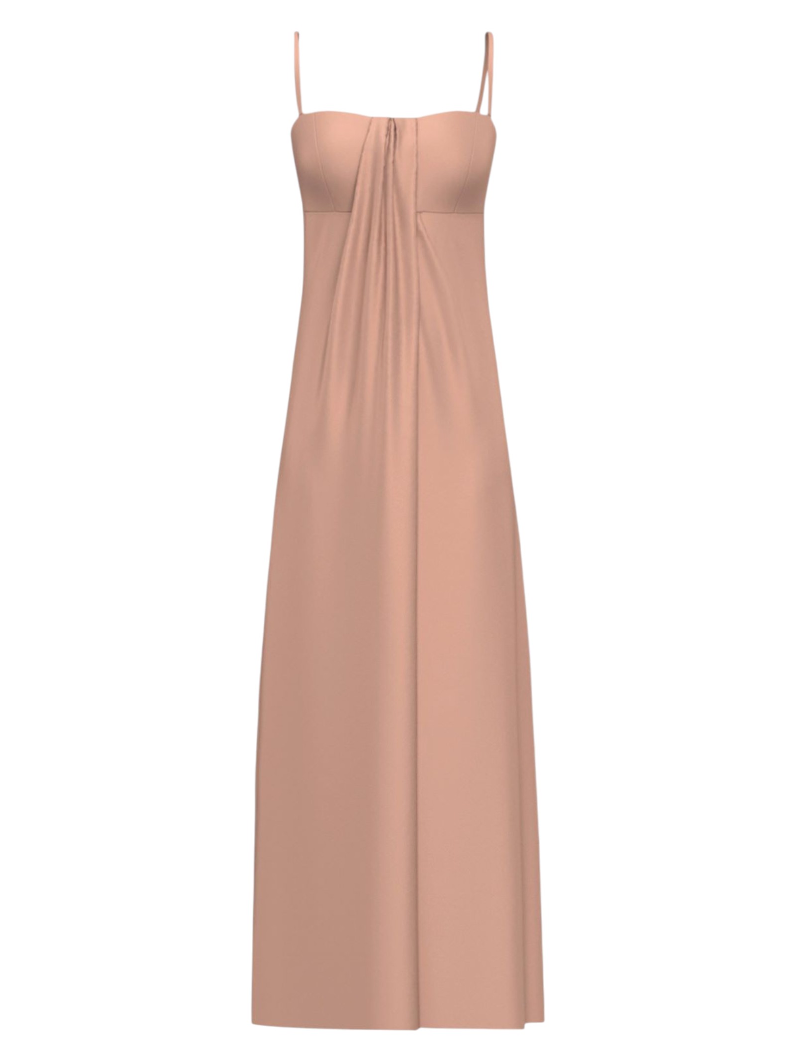 Pensato per le occasioni più eleganti e per le cerimonie in generale. Questo abito in raso lascia scoperto il décolleté e crea una linea a cuore sullo scollo. Il delicato drappeggio con linee asimmetriche crea movimento su tutta la lunghezza.