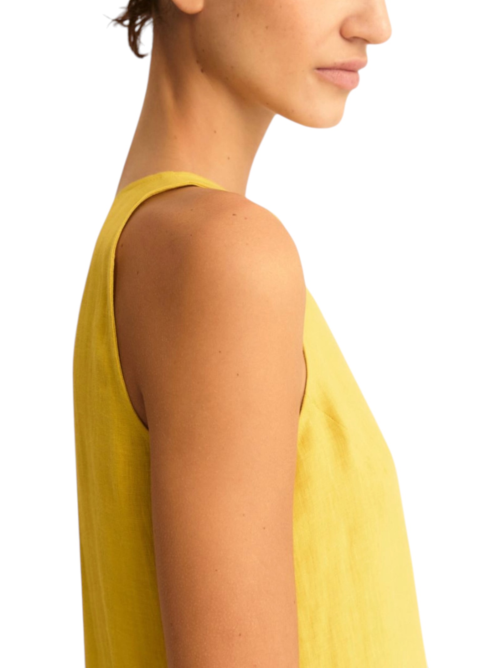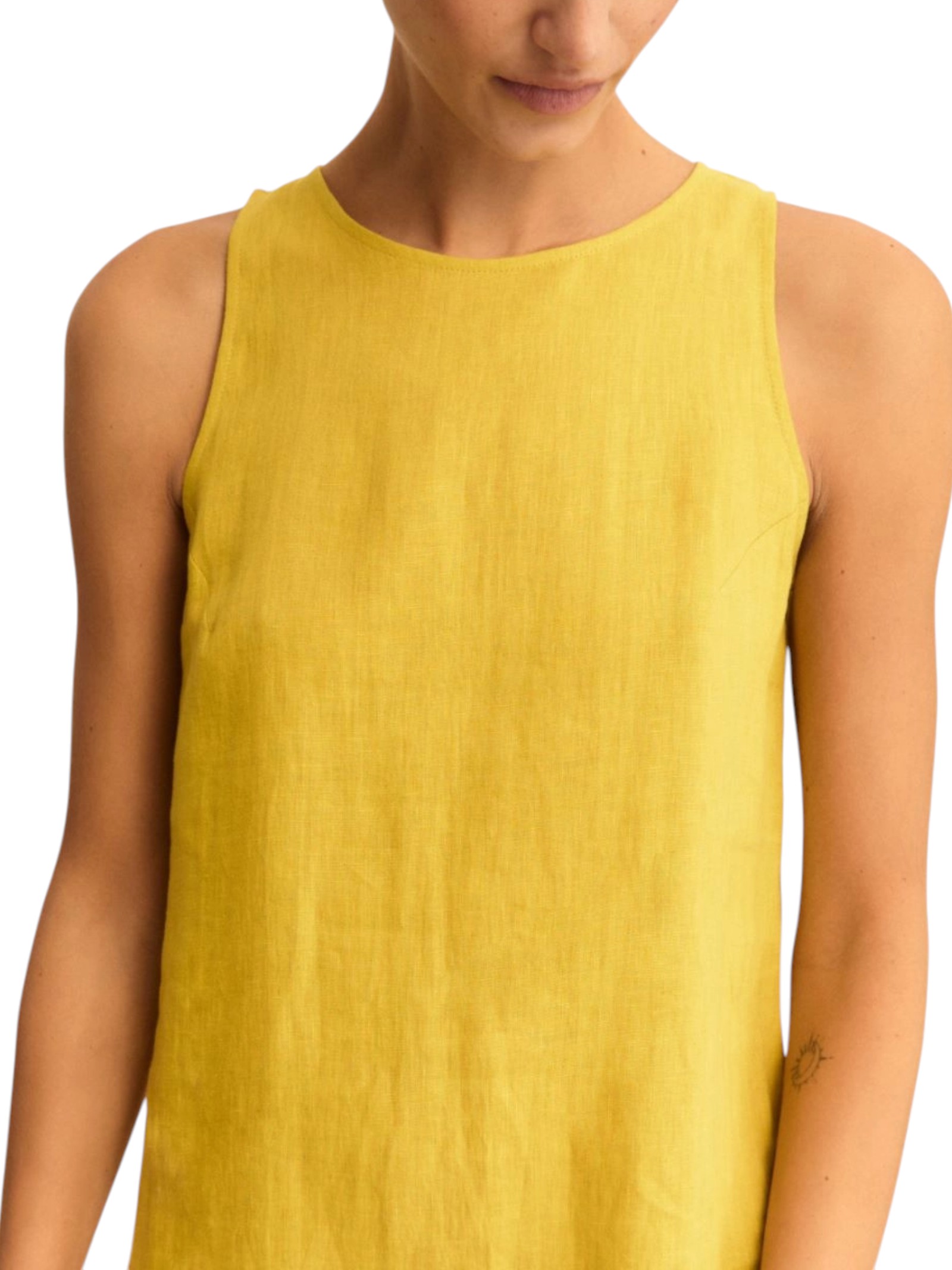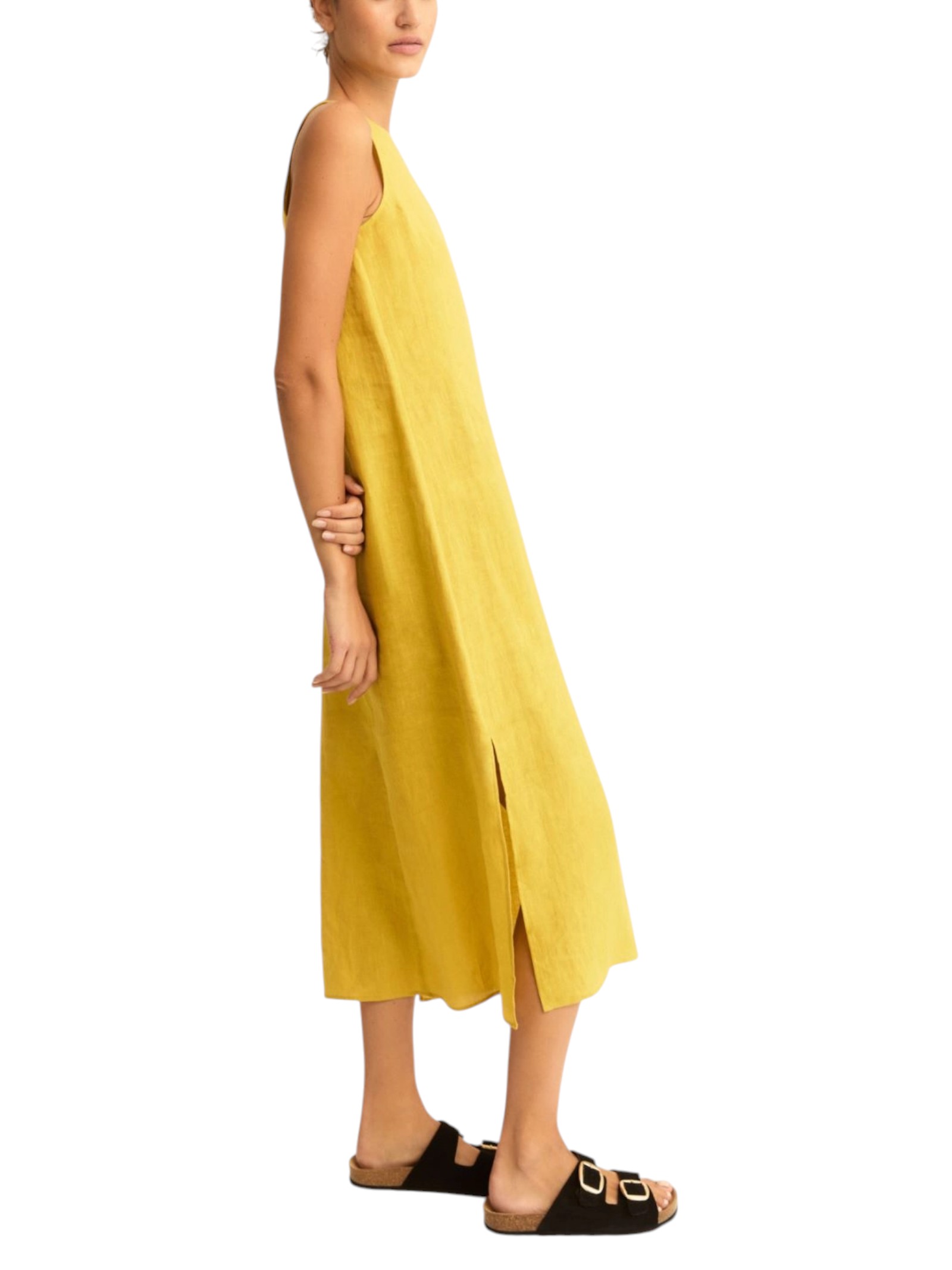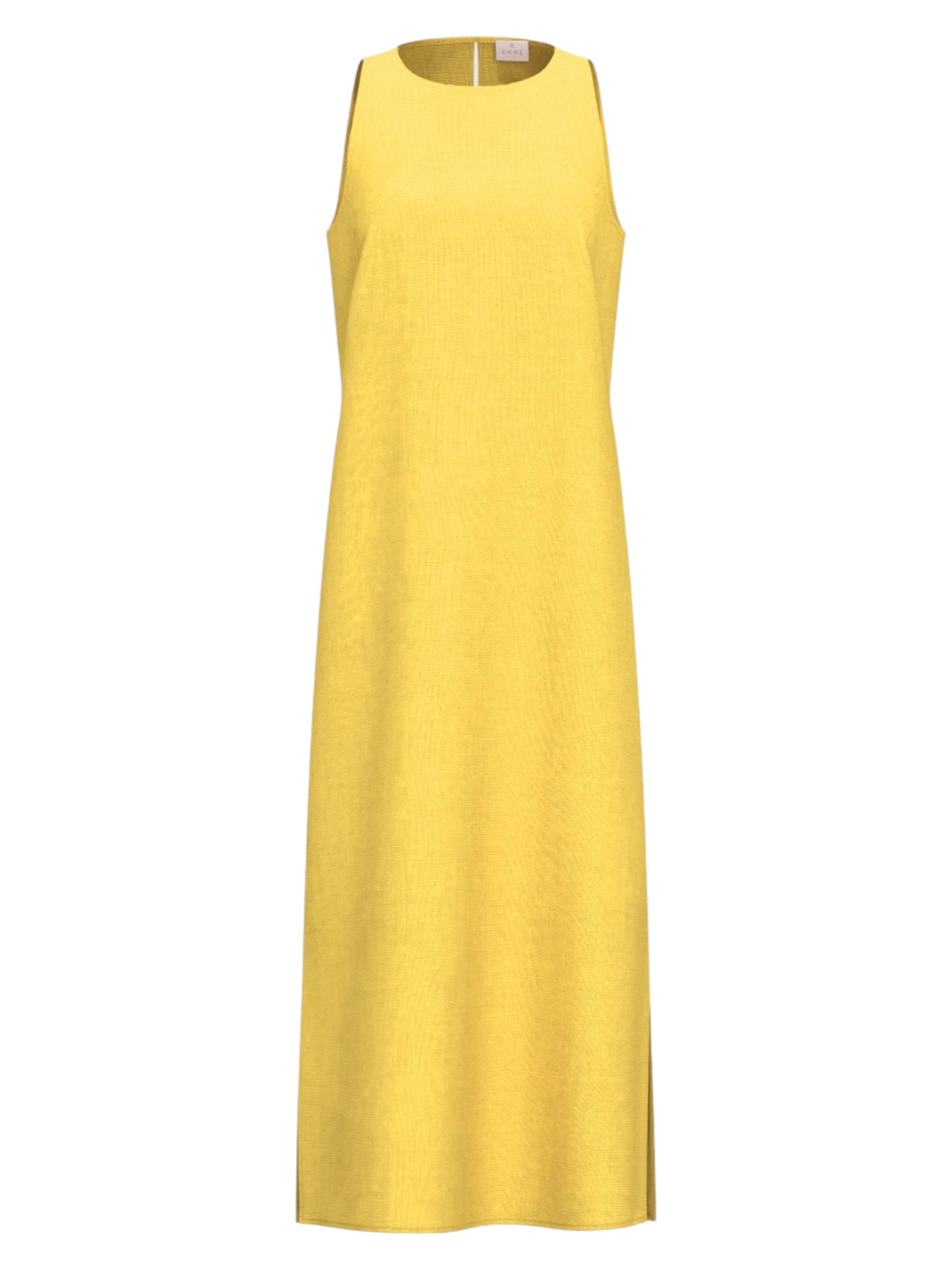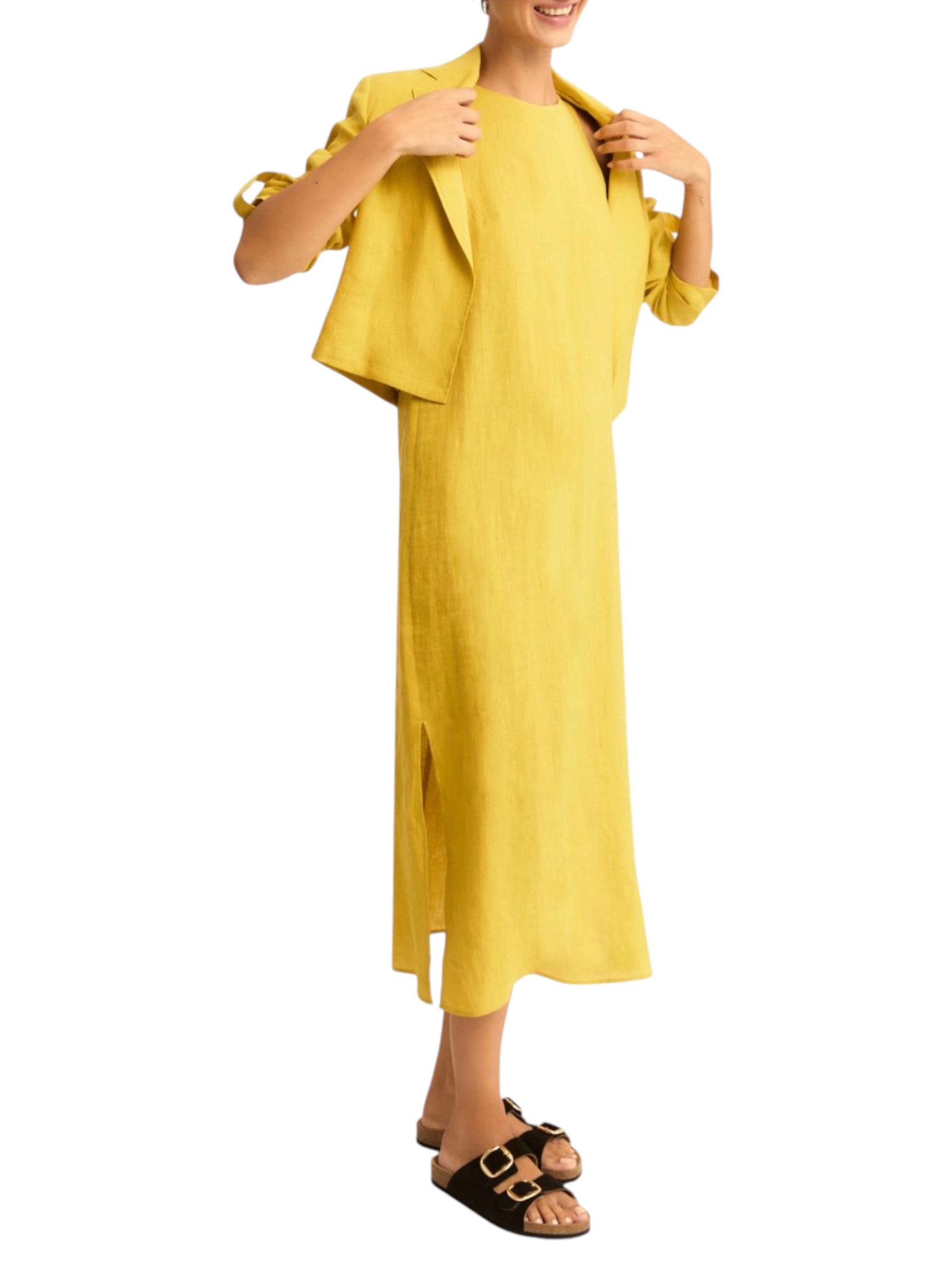 Summer essential: nuovo abito in puro lino lavato, con linea dritta sul busto e spacchi profondi laterali. Da declinare nelle nuance vitaminiche, per un nuovo stile urbano.