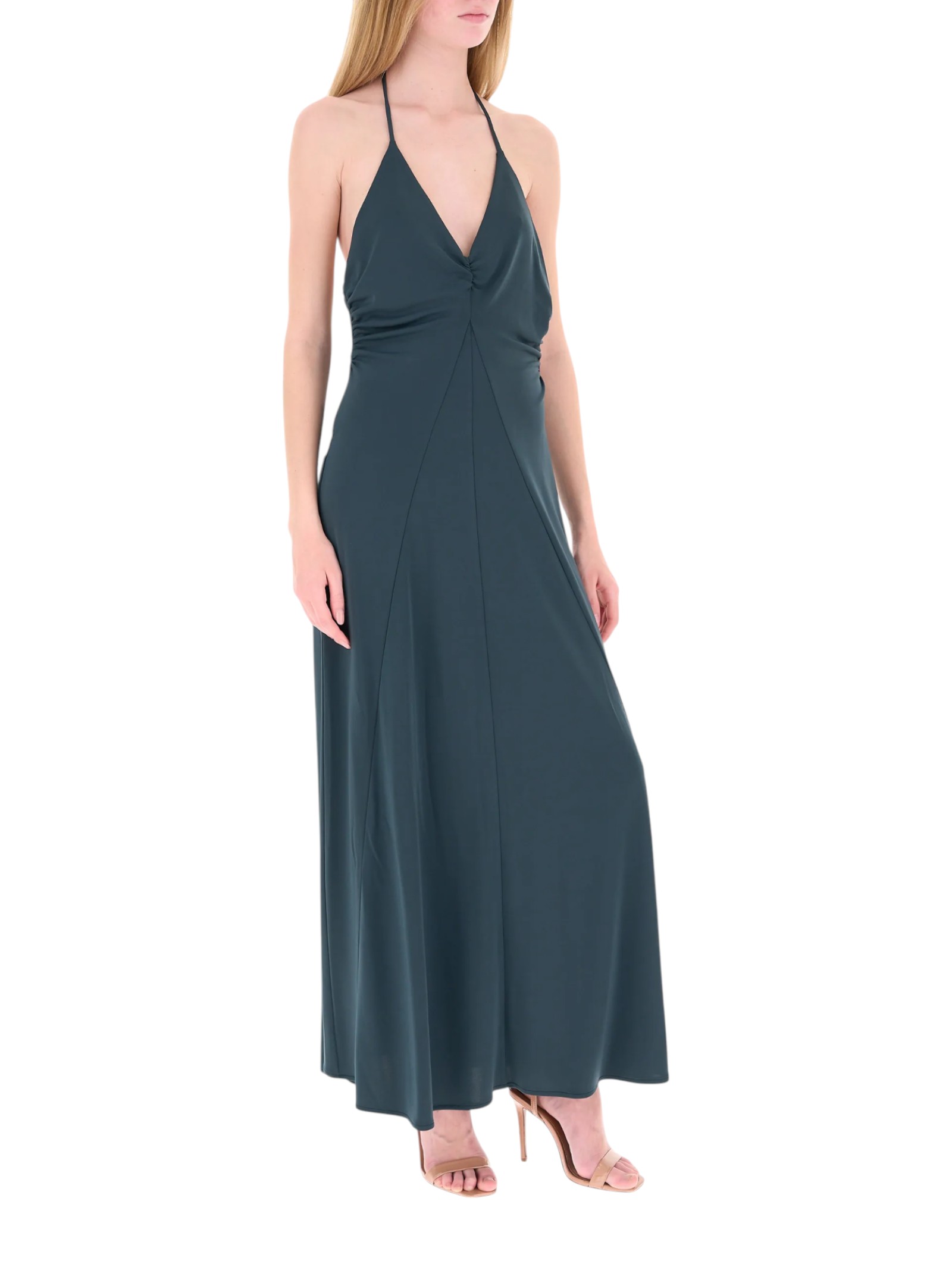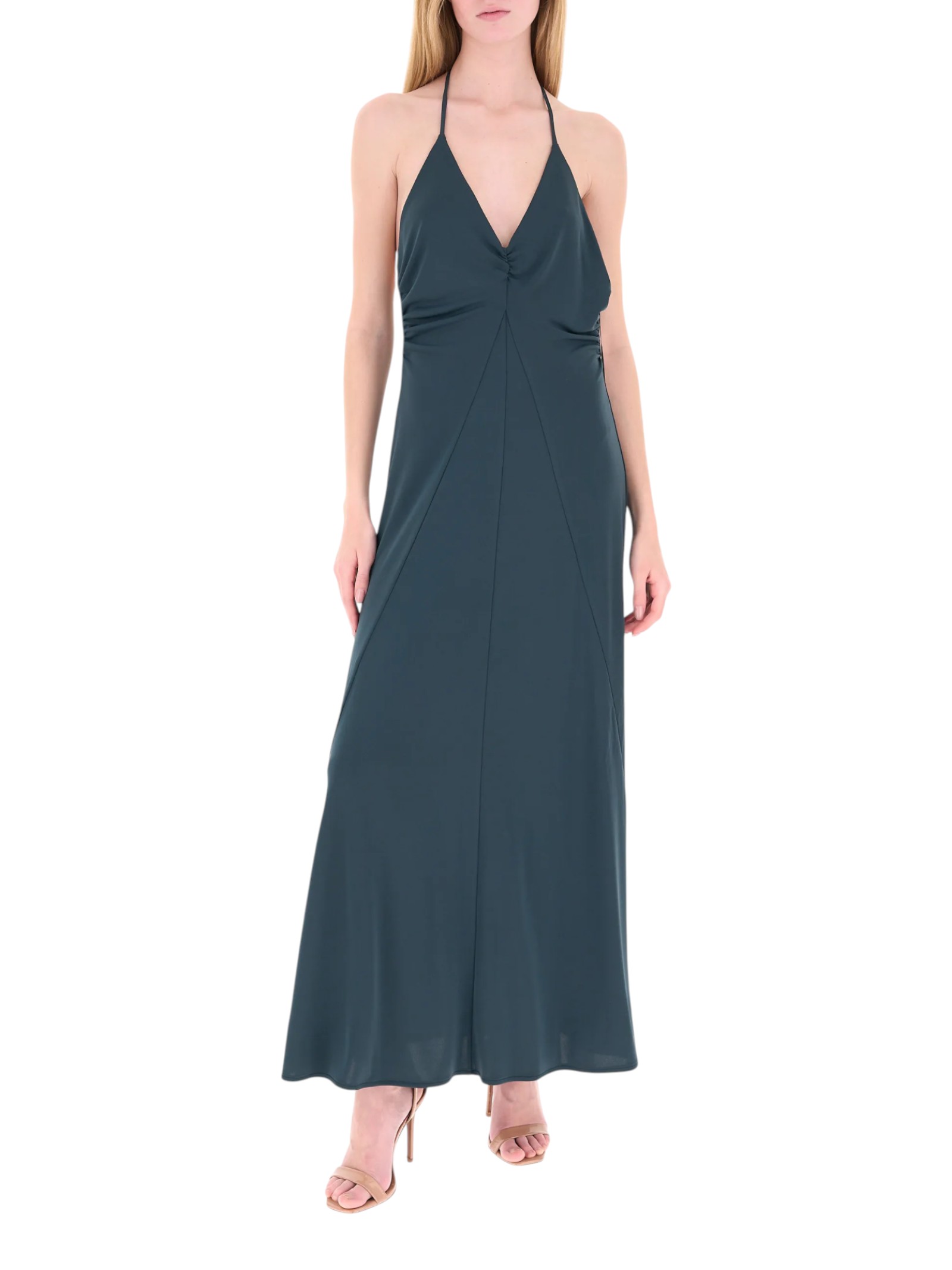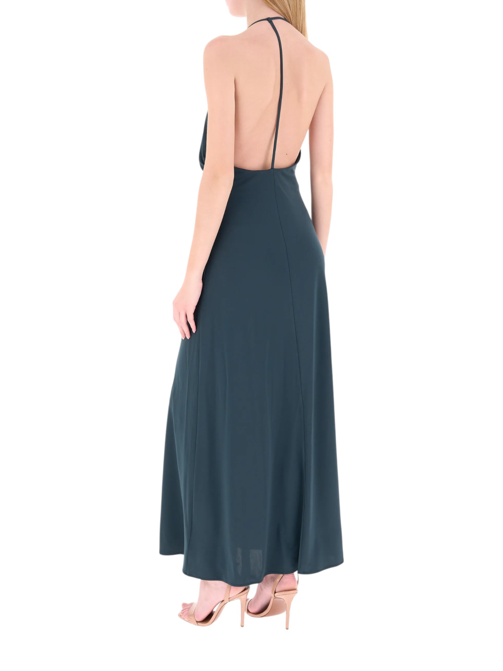 Abito scollo a V sul davanti, scollo profondo sulla schiena. Linea morbida. Elegante ed adatto alla cerimonia ed occasioni speciali.
