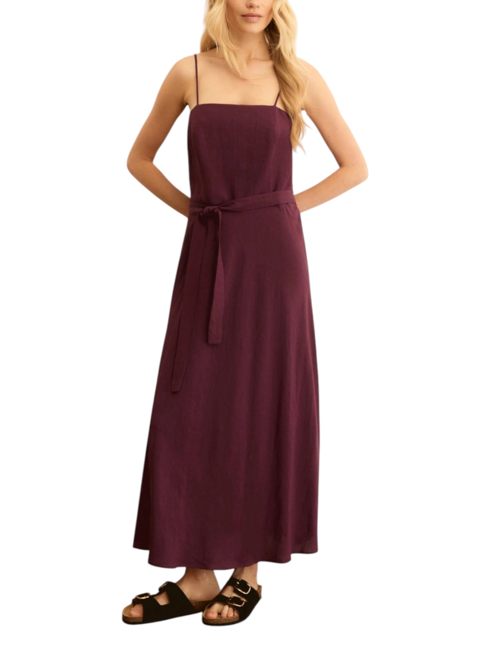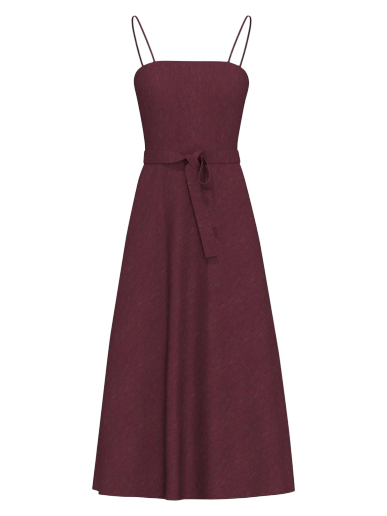Taglio femminile, scollo dritto e spalline sottili: il nuovo abito in tela fluida disegna una silhouette contemporanea, perfetta per la città e per la bella stagione. Con cintura in vita da annodare e stringere a piacere.