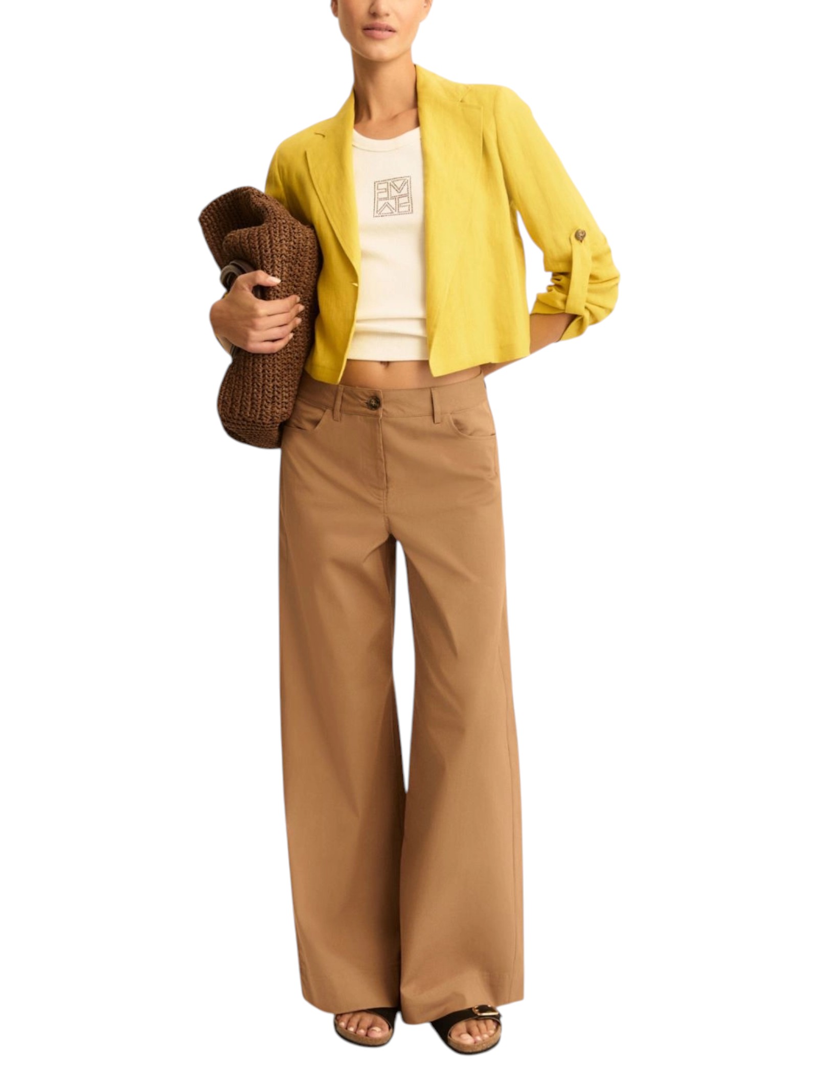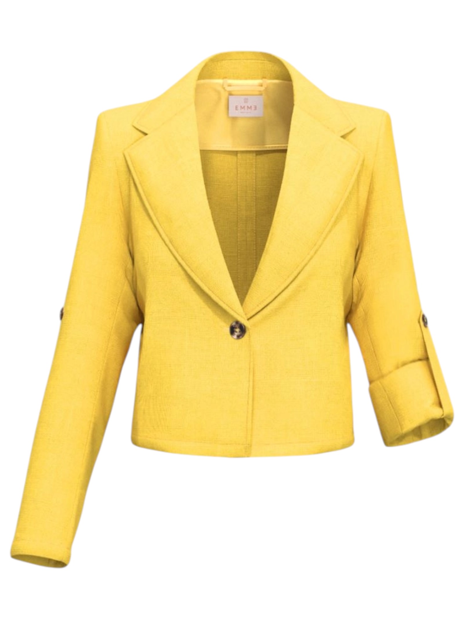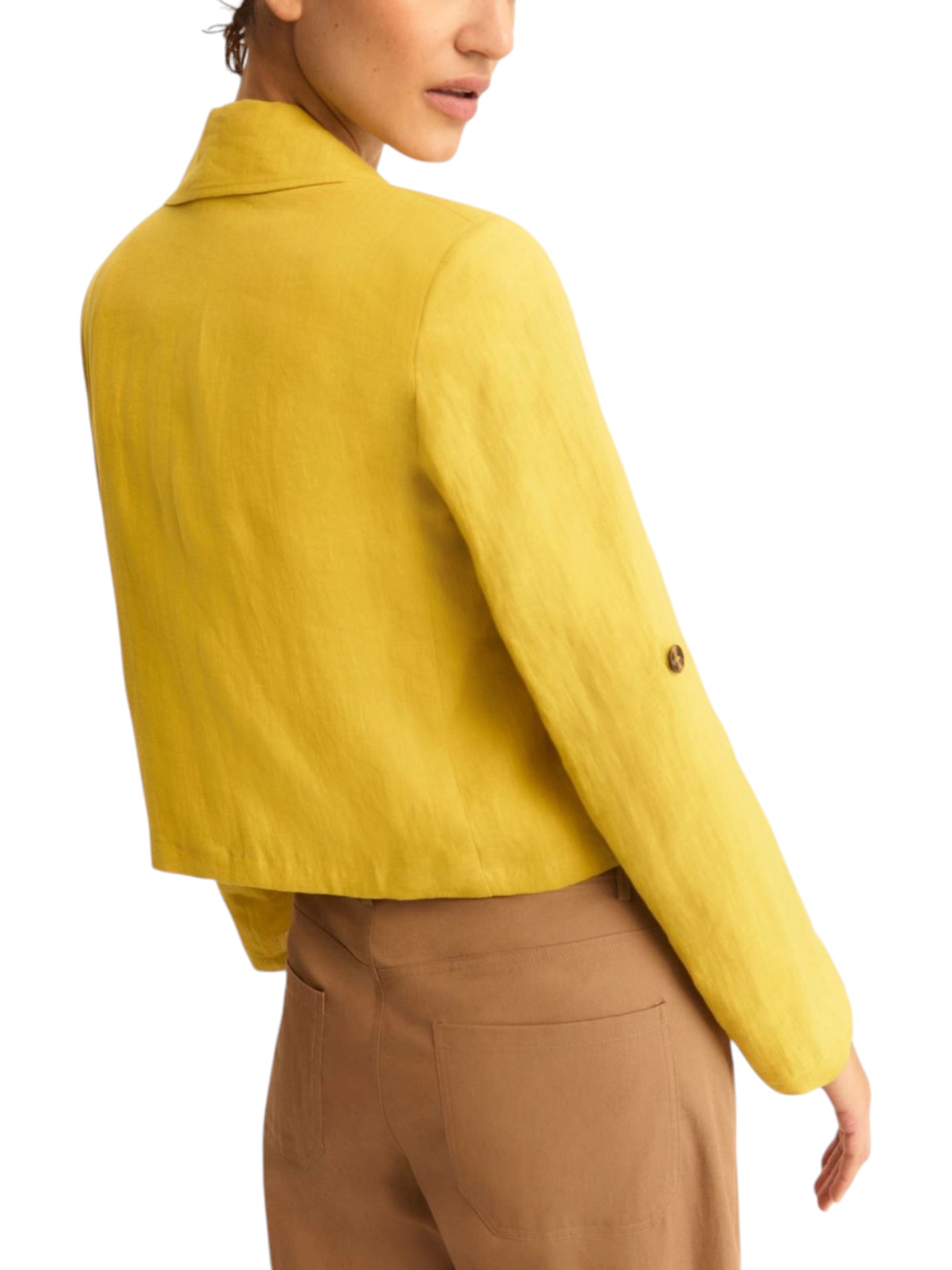 La freschezza del lino trasforma il blazer da stendardo di sartorialità in top versatile. Le maniche arrotolabili offrono una visione alternativa, versatile, perfetta per l'estate.