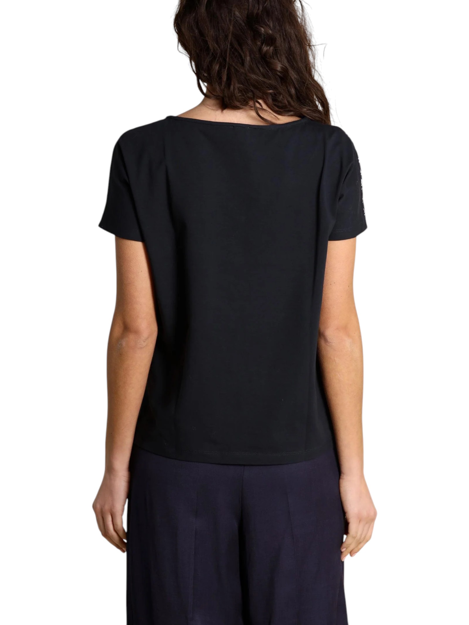 Per un look versatile e quotidiano, ecco la blusa pensata per te: con fronte in tessuto stampato a motivo geometrico, e retro in jersey stretch a contrasto.