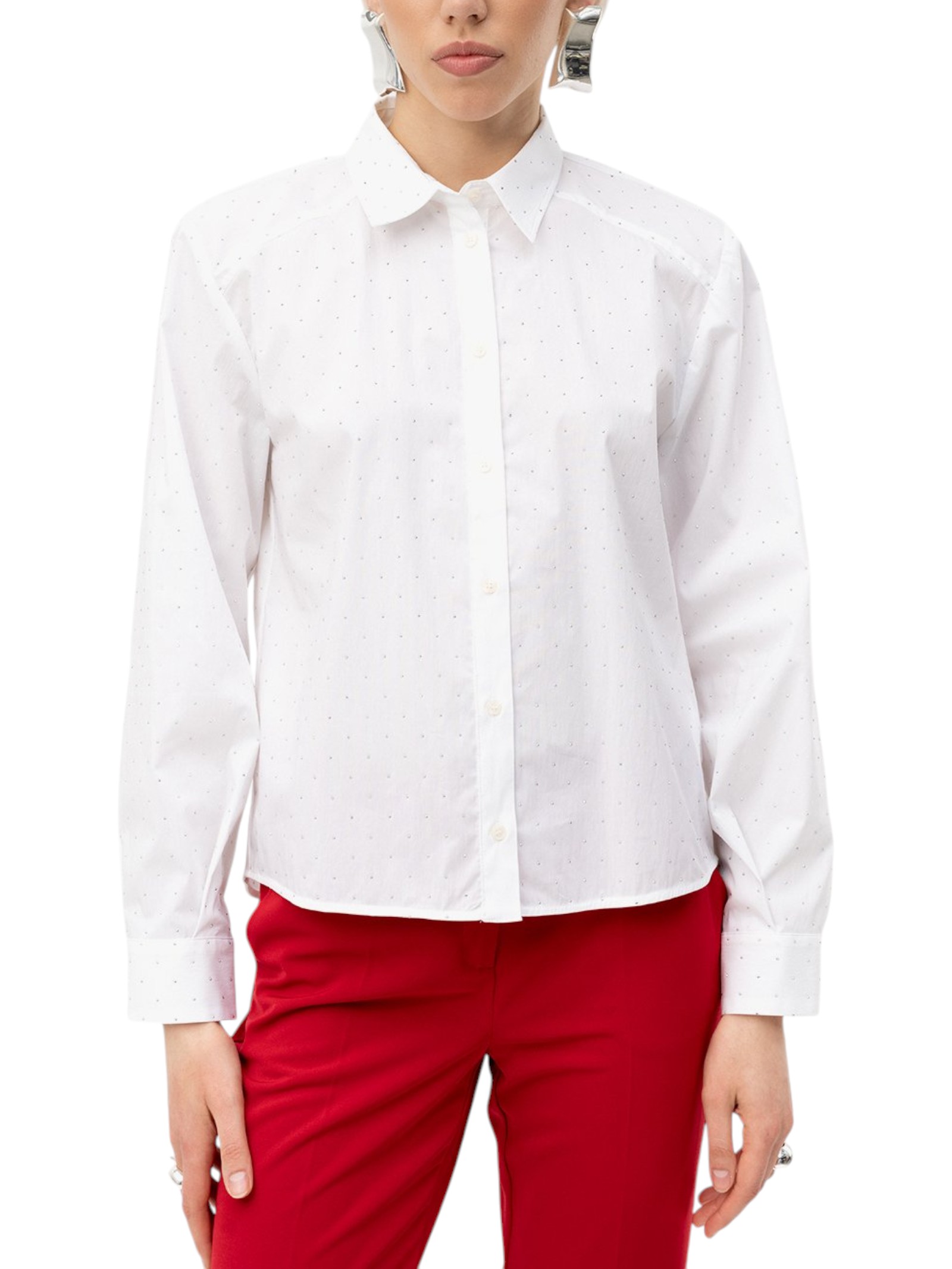 Camicia in cotone, maniche lunghe. Borchiette applicate. Fit regular.