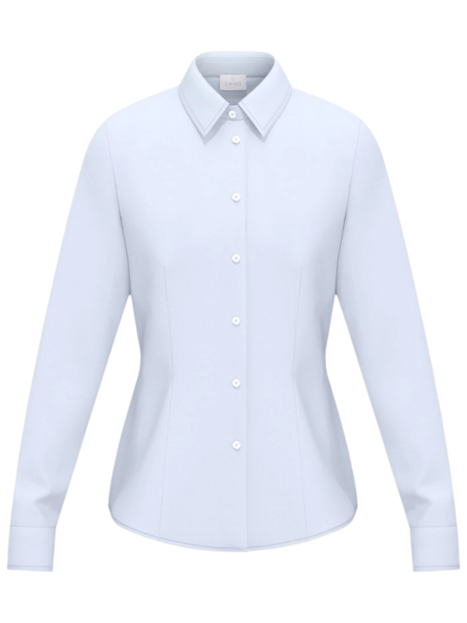 Il grande classico che non esce mai dal guardaroba? La camicia in popeline stretch. Con linea sfiancata, bottoni a vista e le pince profonde che disegnano la silhouette.