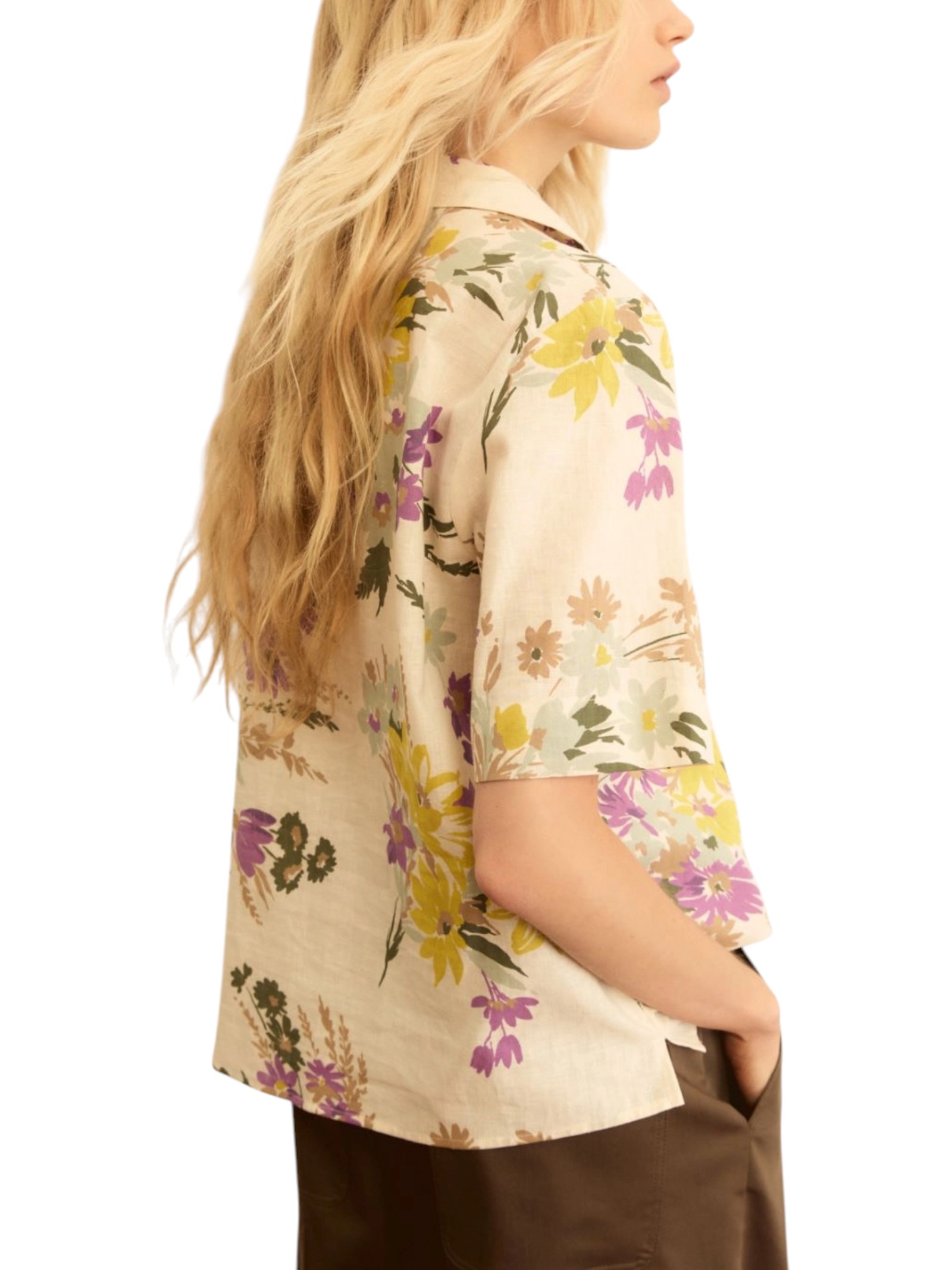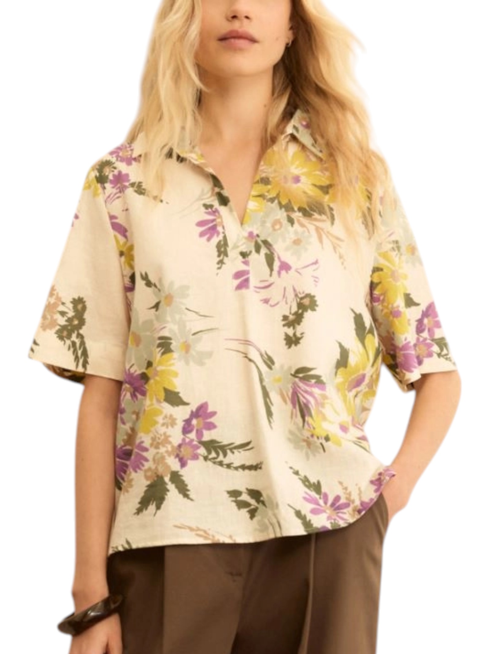 Un interessante abbinamento camicia e polo: questo modello in cotone e lino incarna lo spirito romantico della nuova stagione con la sua stampa floreale dalle delicate tonalità.