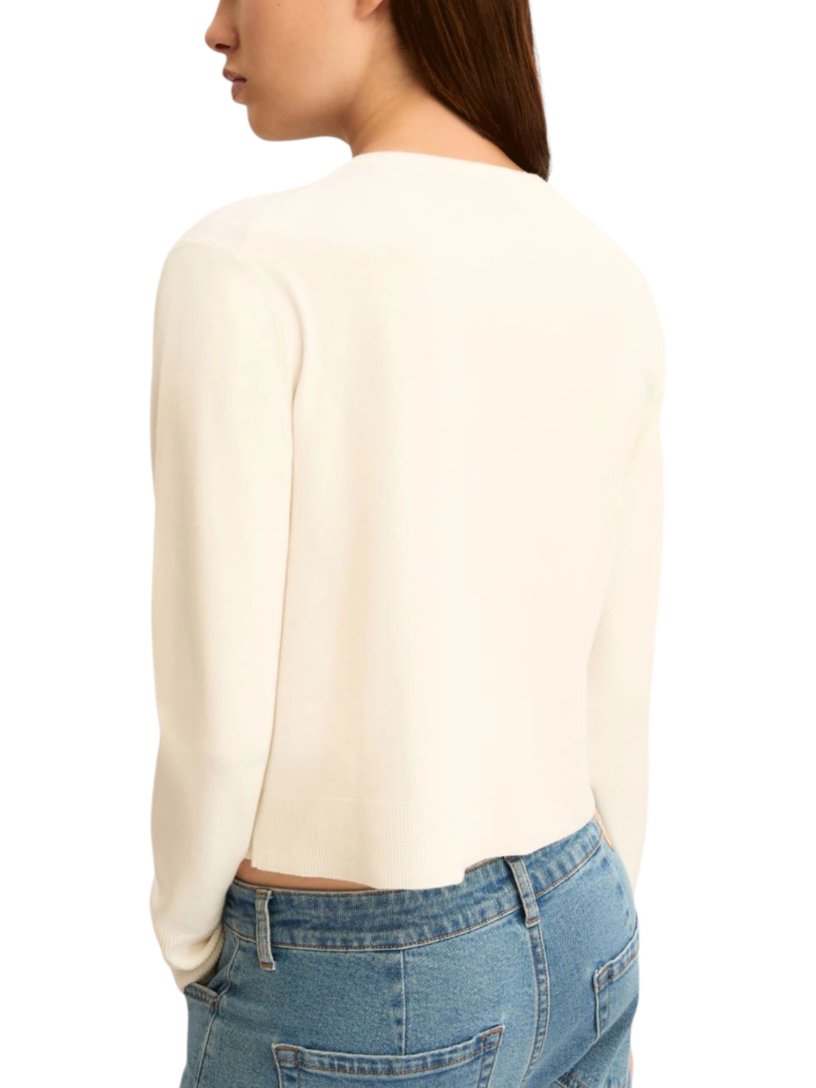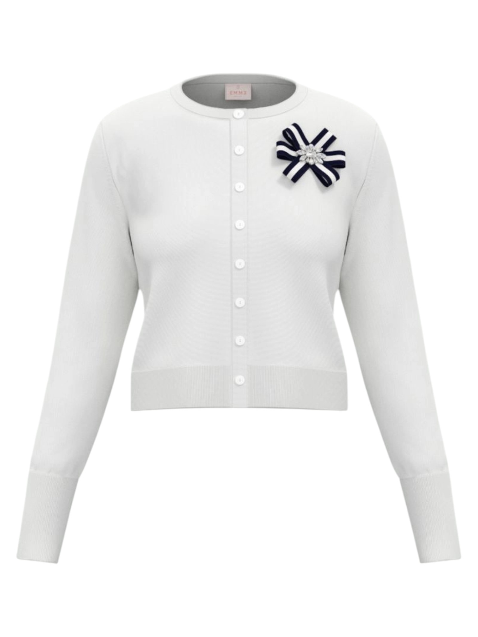 Il capo più versatile e bon ton di stagione è questo cardigan stretch, con linea femminile e piccola spilla bijoux dalla forma a coccarda. Premiata per lo stile!