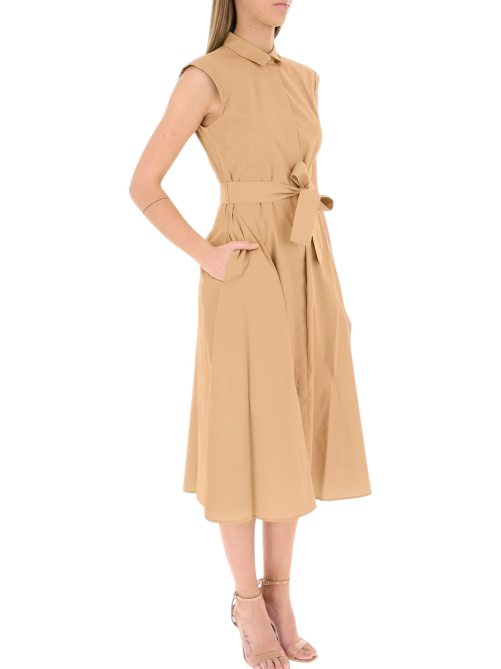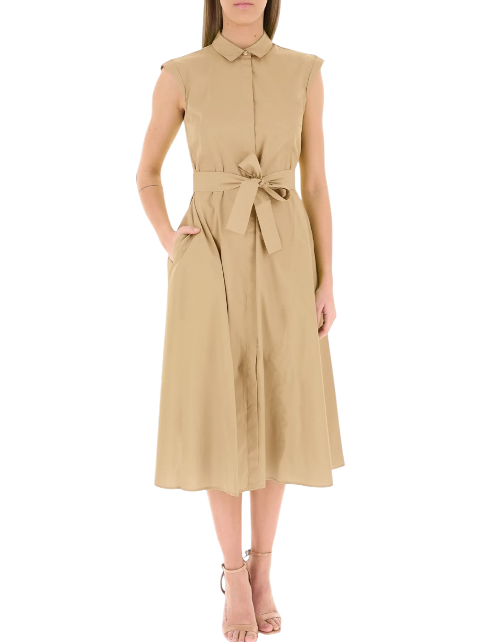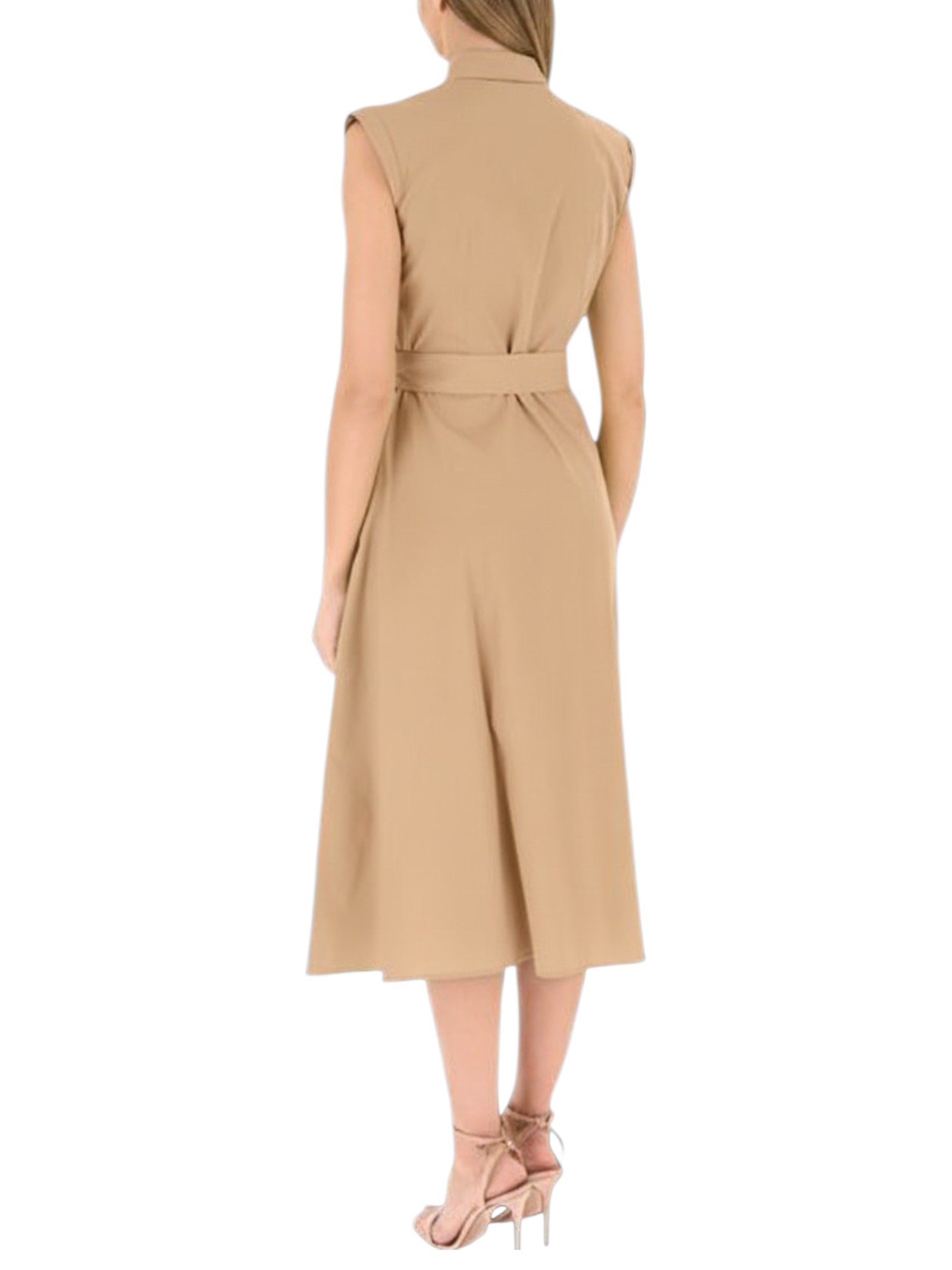 Modello smanicato con taglio e cintura in vita