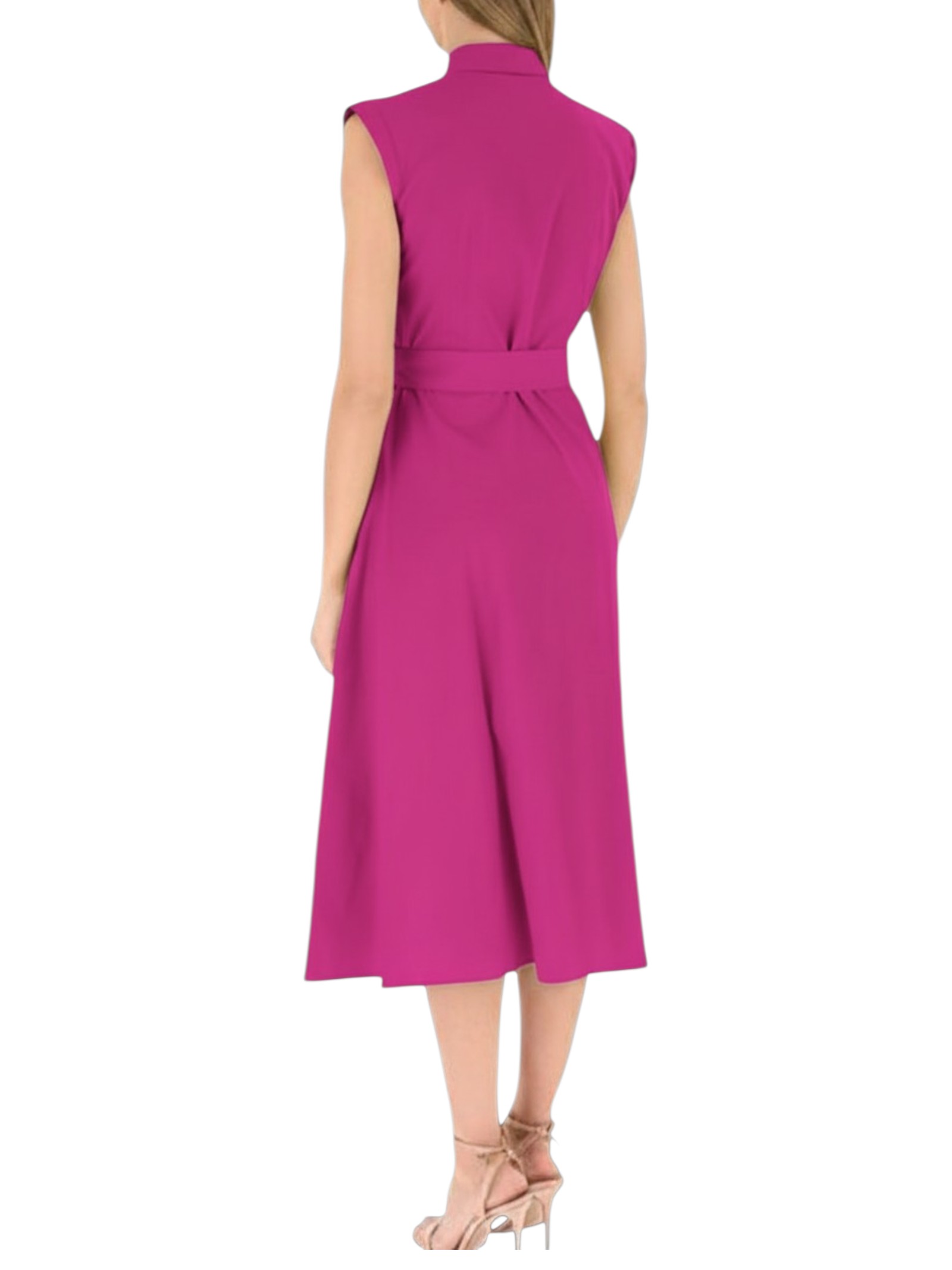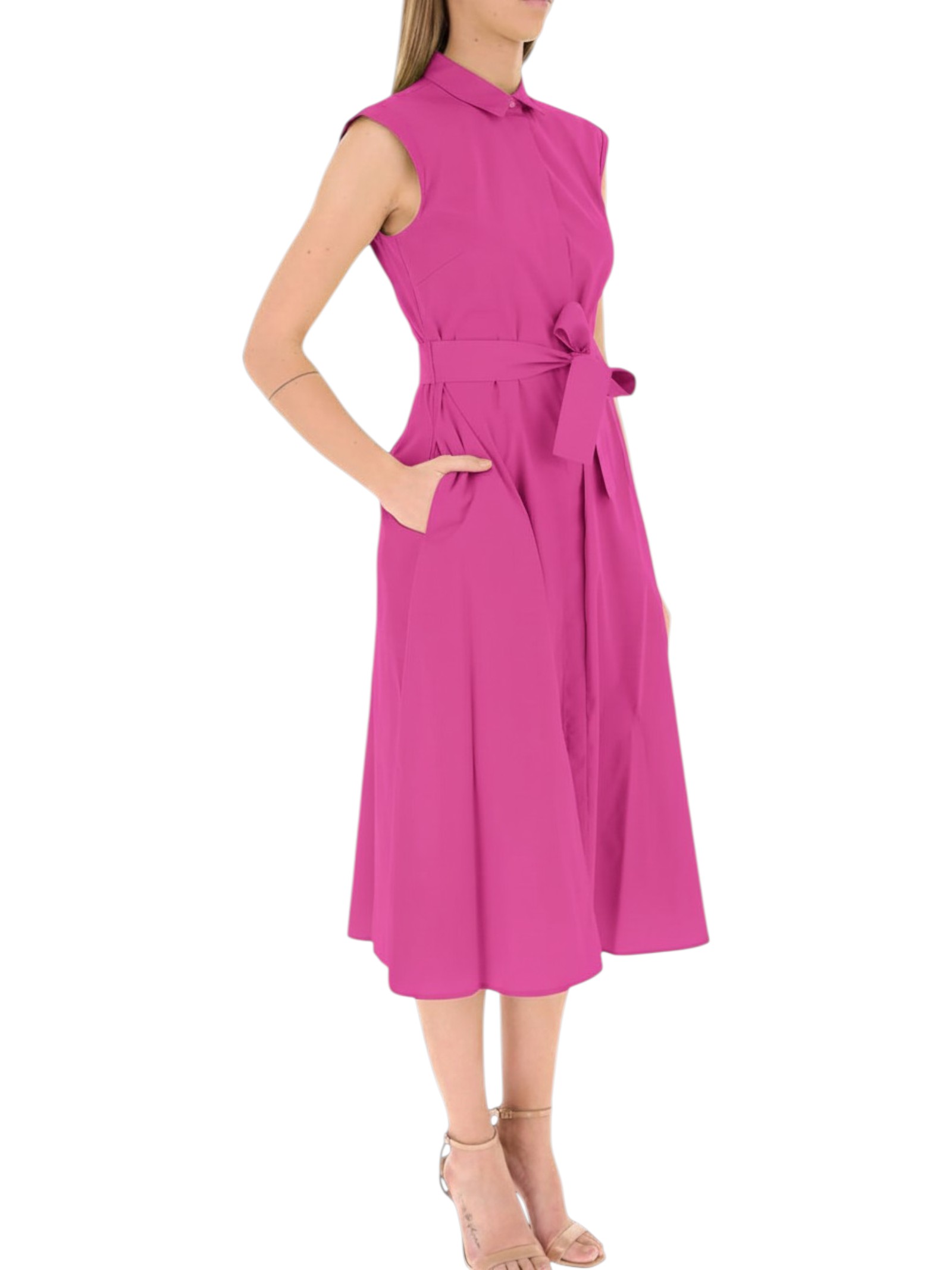 Modello smanicato con taglio e cintura in vita