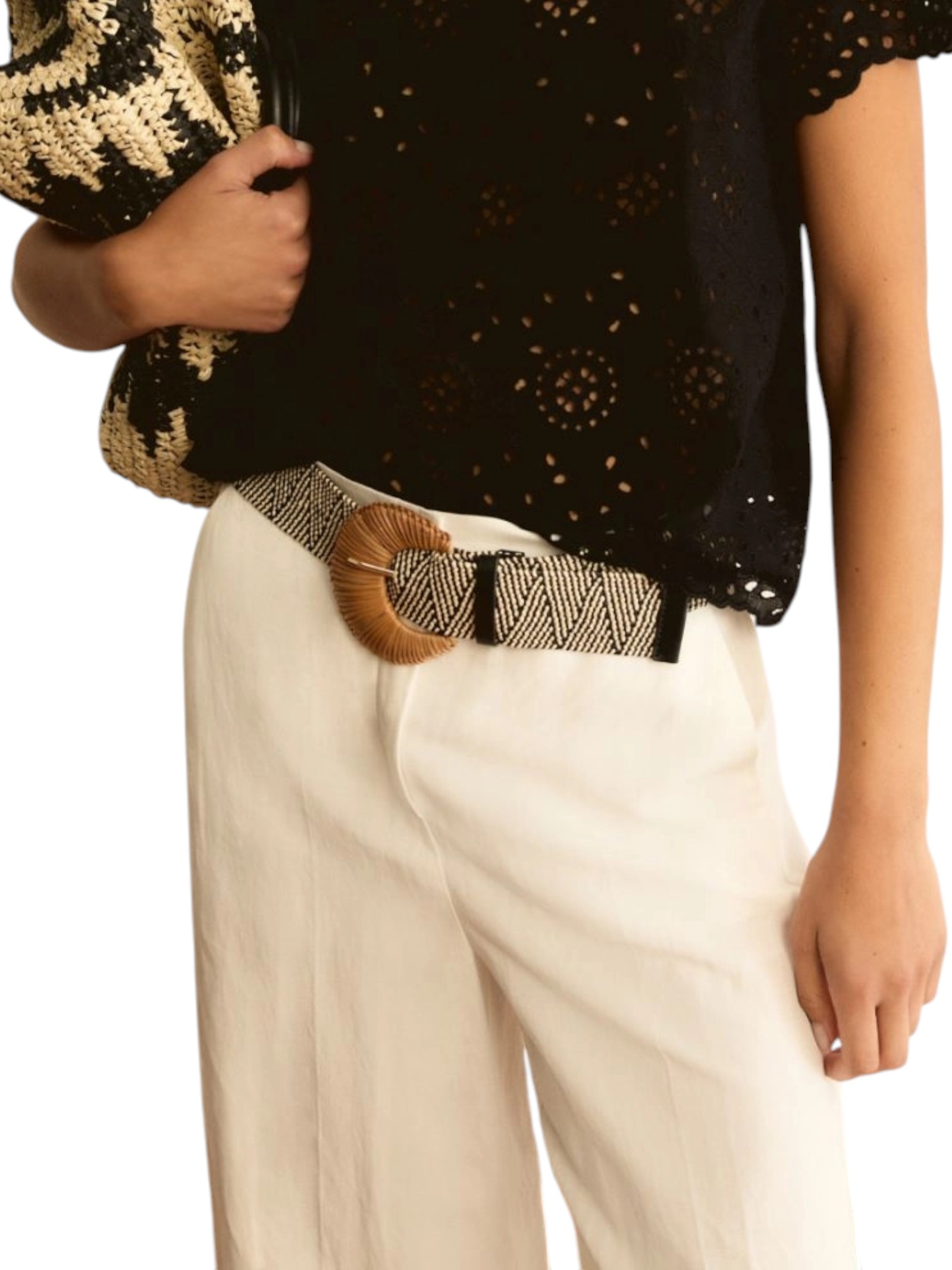 Metti in evidenza il punto vita e completa i tuoi look con questa cintura in rafia stretch. Carattere distintivo, con un solo gesto.