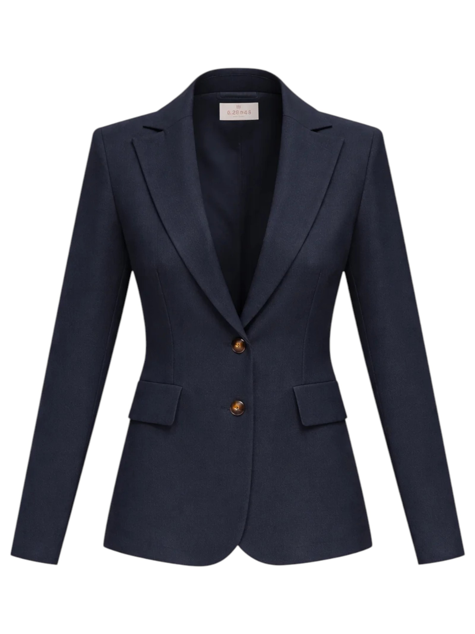Chiusura monopetto con due bottoni a vista. Tasche con patta.