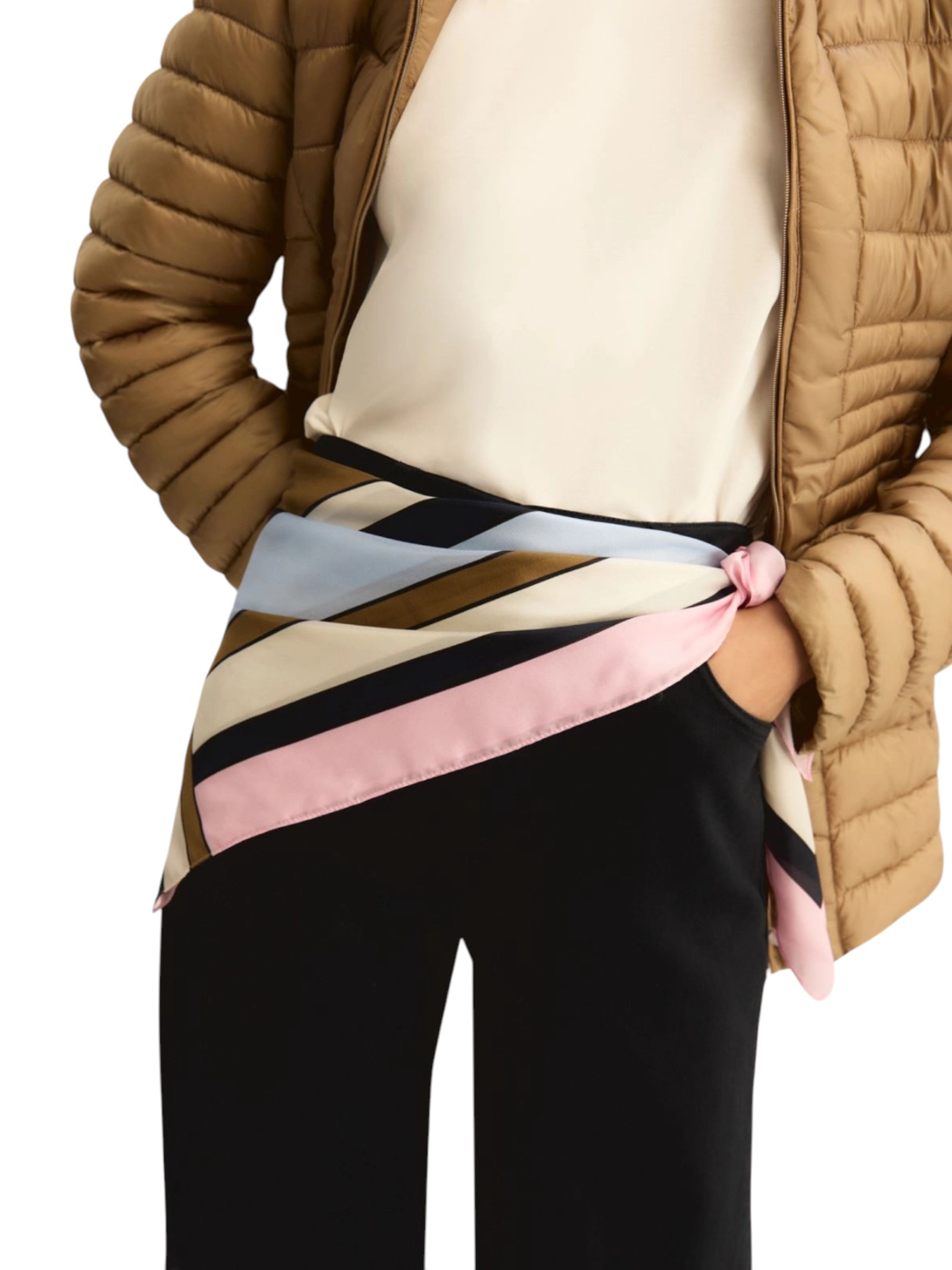 L'eleganza, in formato quadrato: nuovo foulard in morbido twill, con fantasia colorata che introduce la leggerezza della nuova stagione. Da annodare al collo, tra i capelli, alla borsa o al polso.