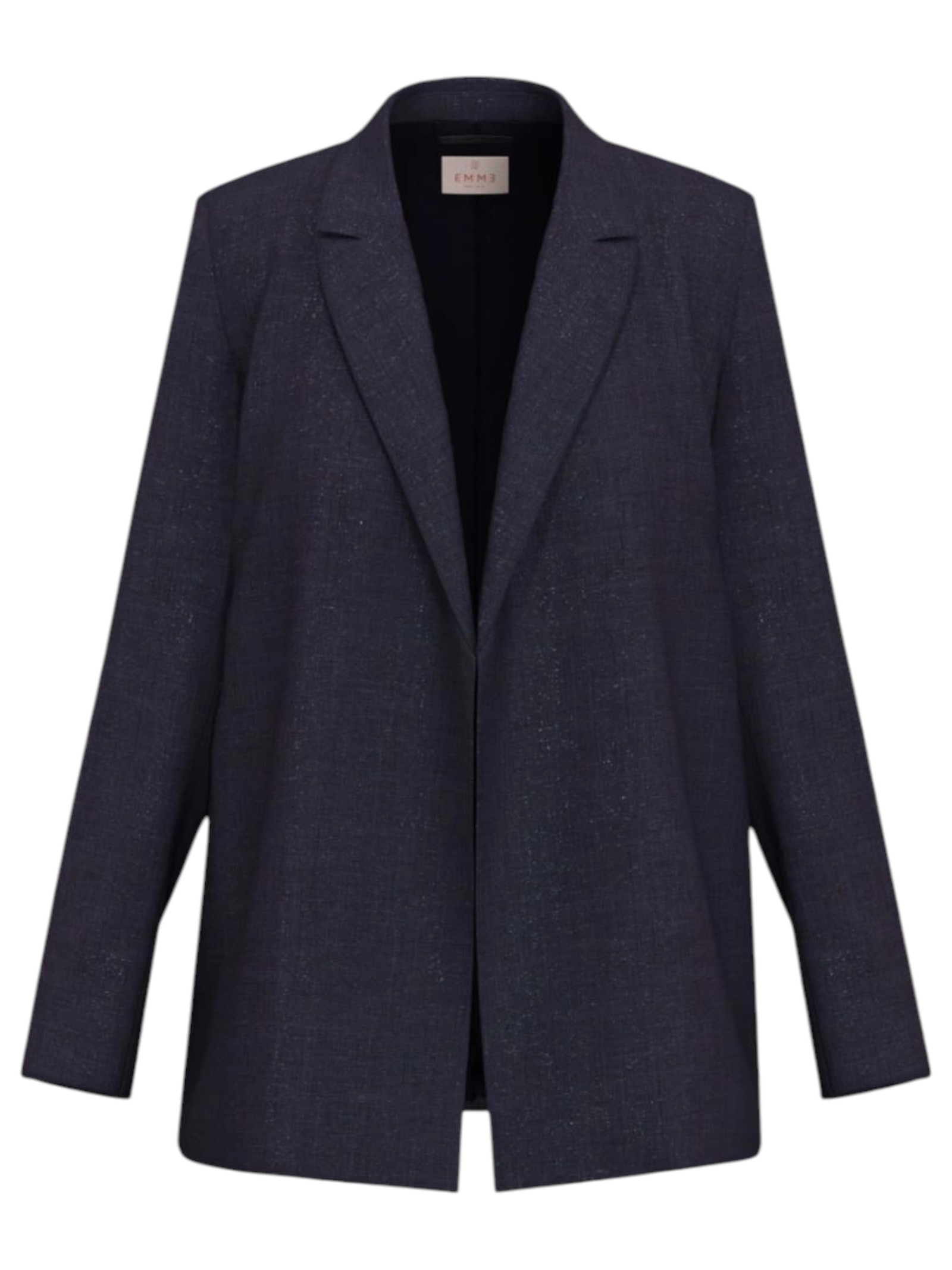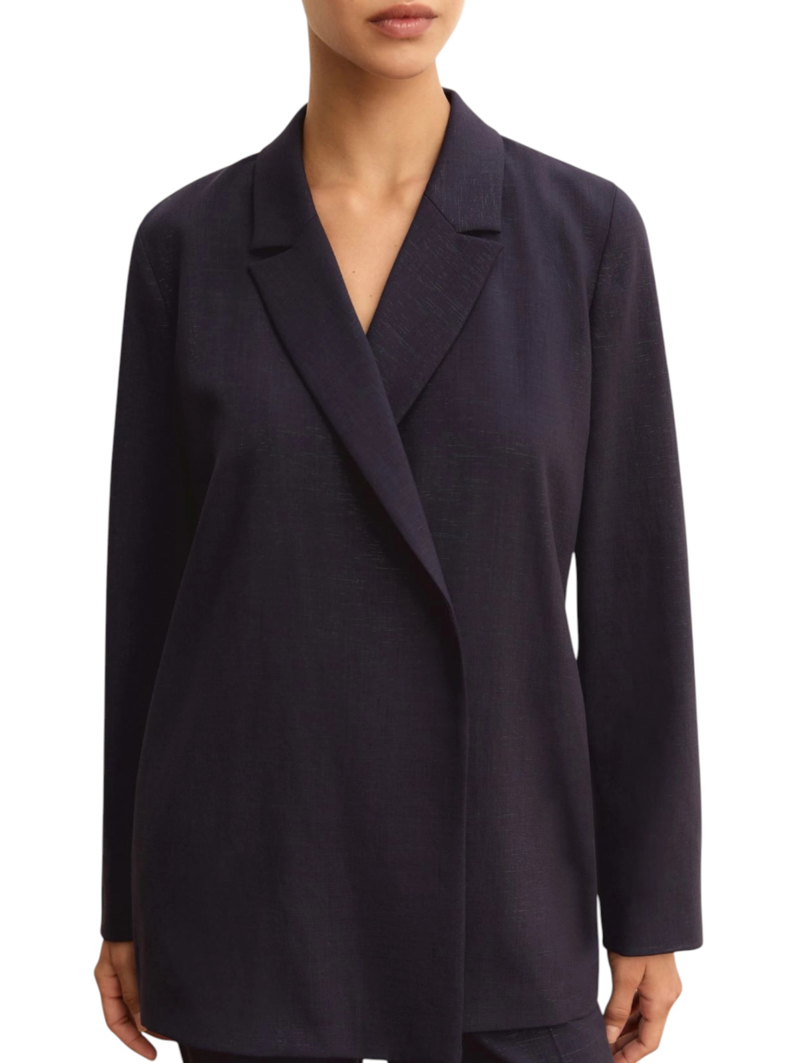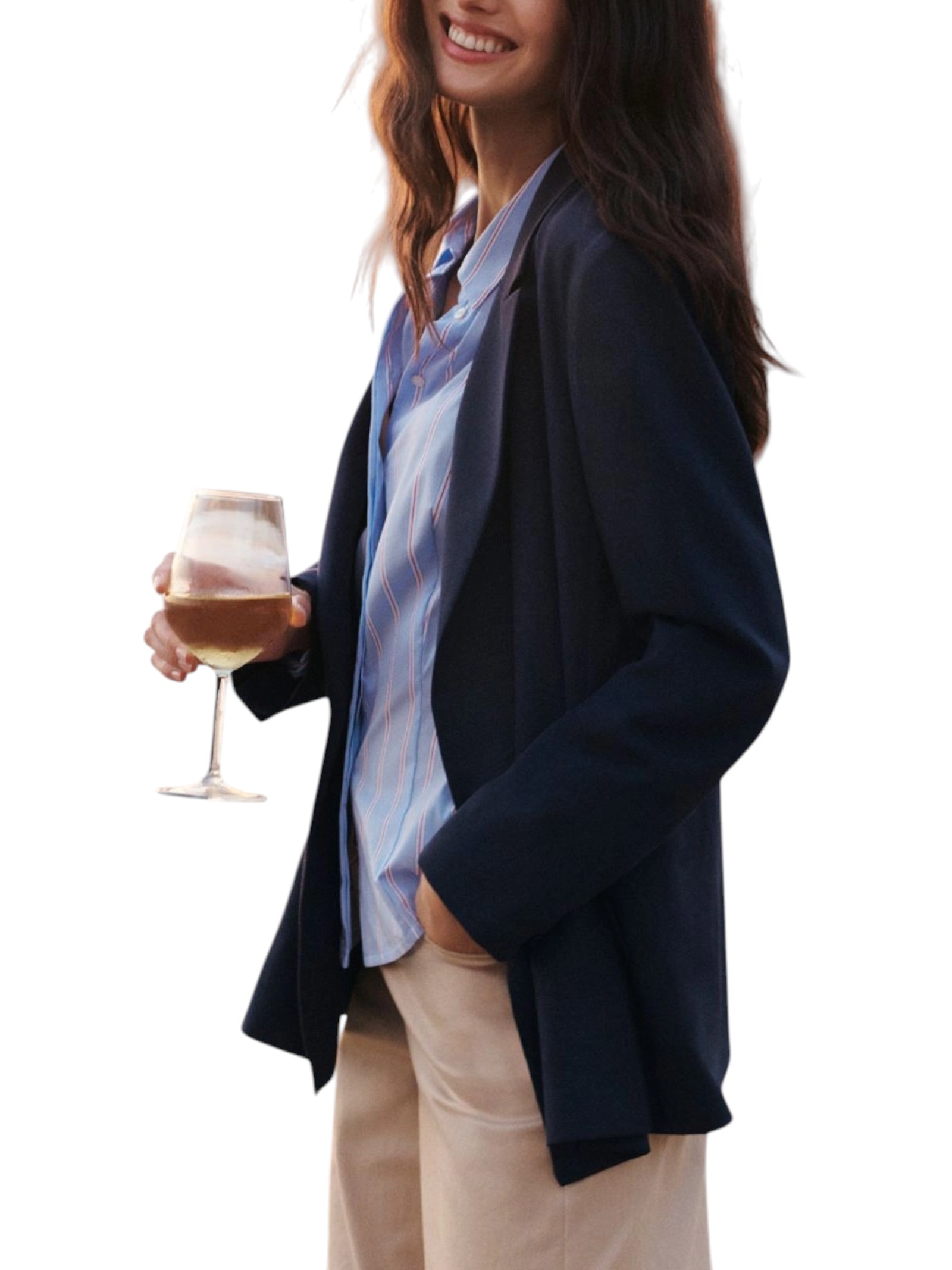 Giacca in morbida viscosa stretch, con linea fluida sul davanti enfatizzata dalla mancanza di chiusura. Da provare abbinata agli abiti di collezione, o come complemento dell'iconica t-shirt e denim.