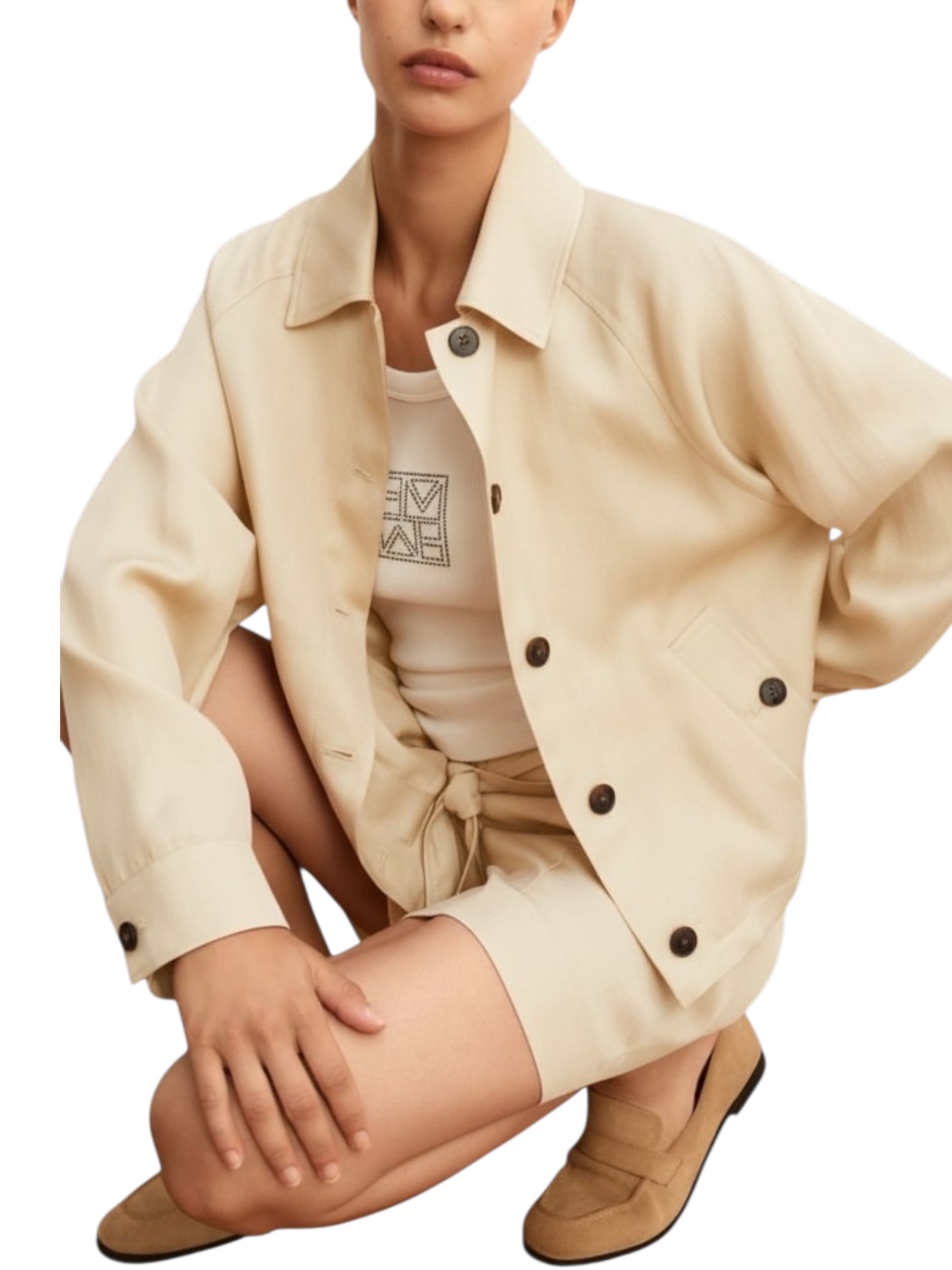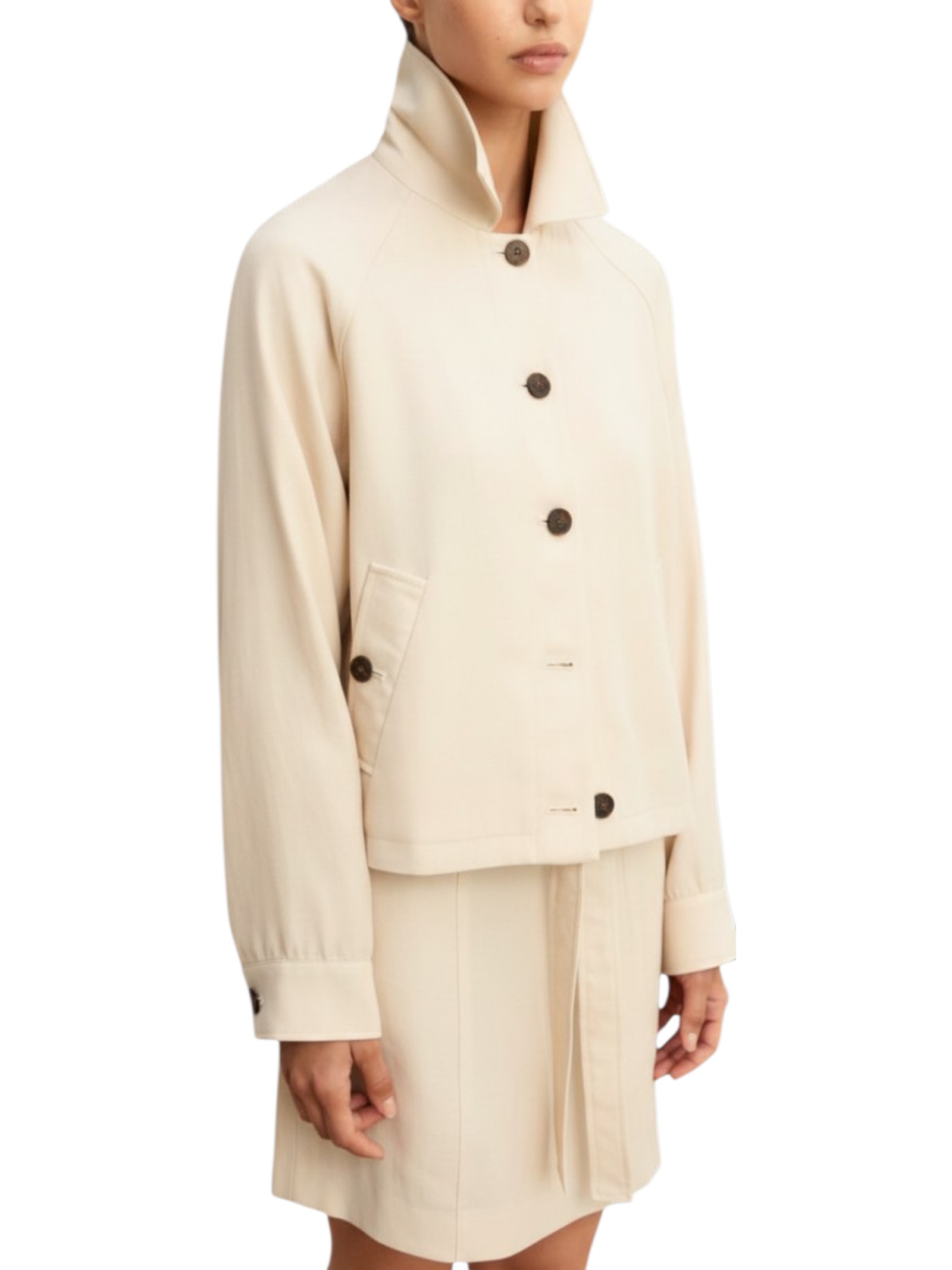 Casual per definizione, questa giacchina in twill di misto lino contiene tutti gli elementi giusti per comporre look sofisticati: materia fluida e leggera, bottoni a vista e un tocco informale per affrontare le tue giornate.
