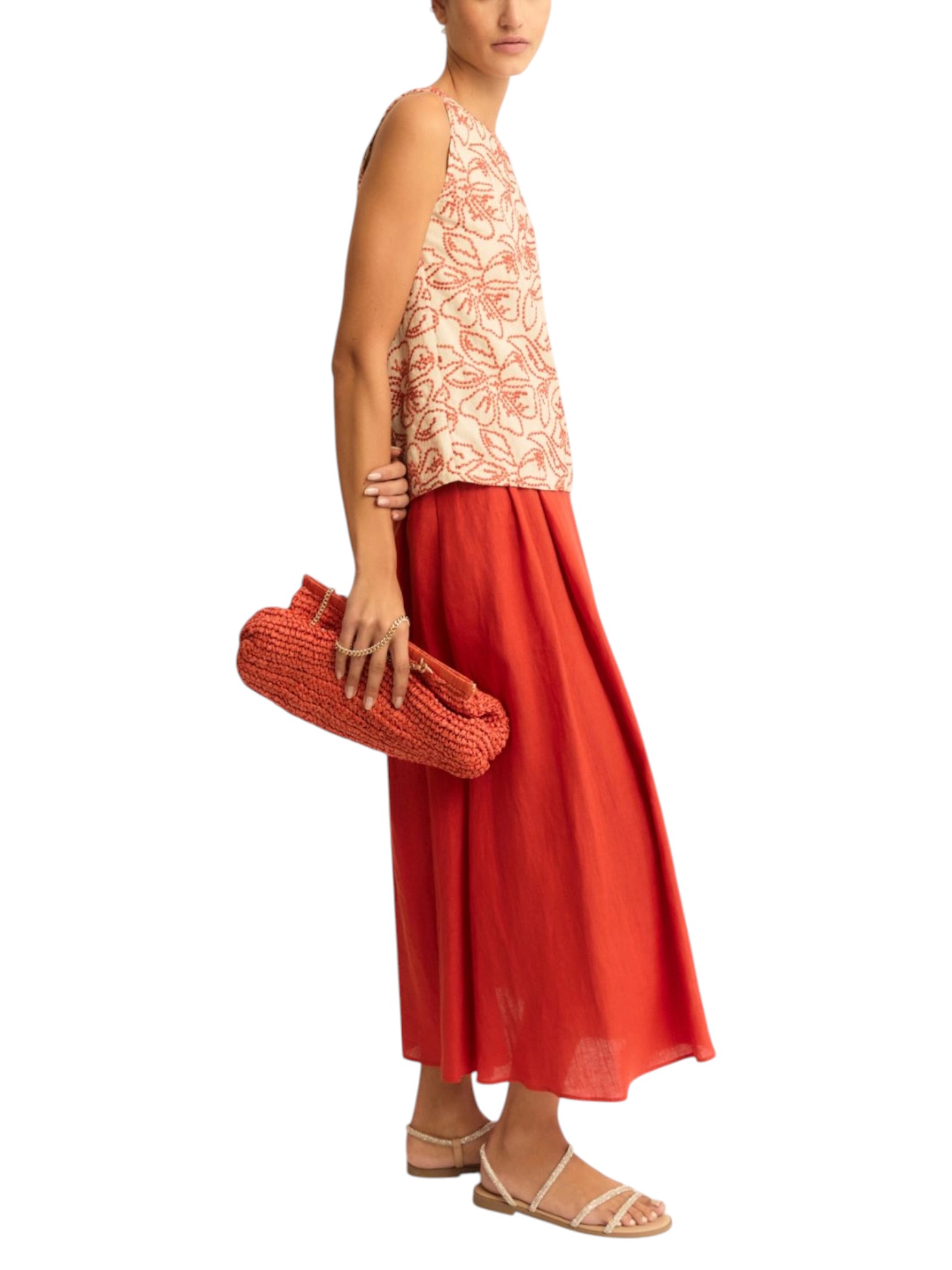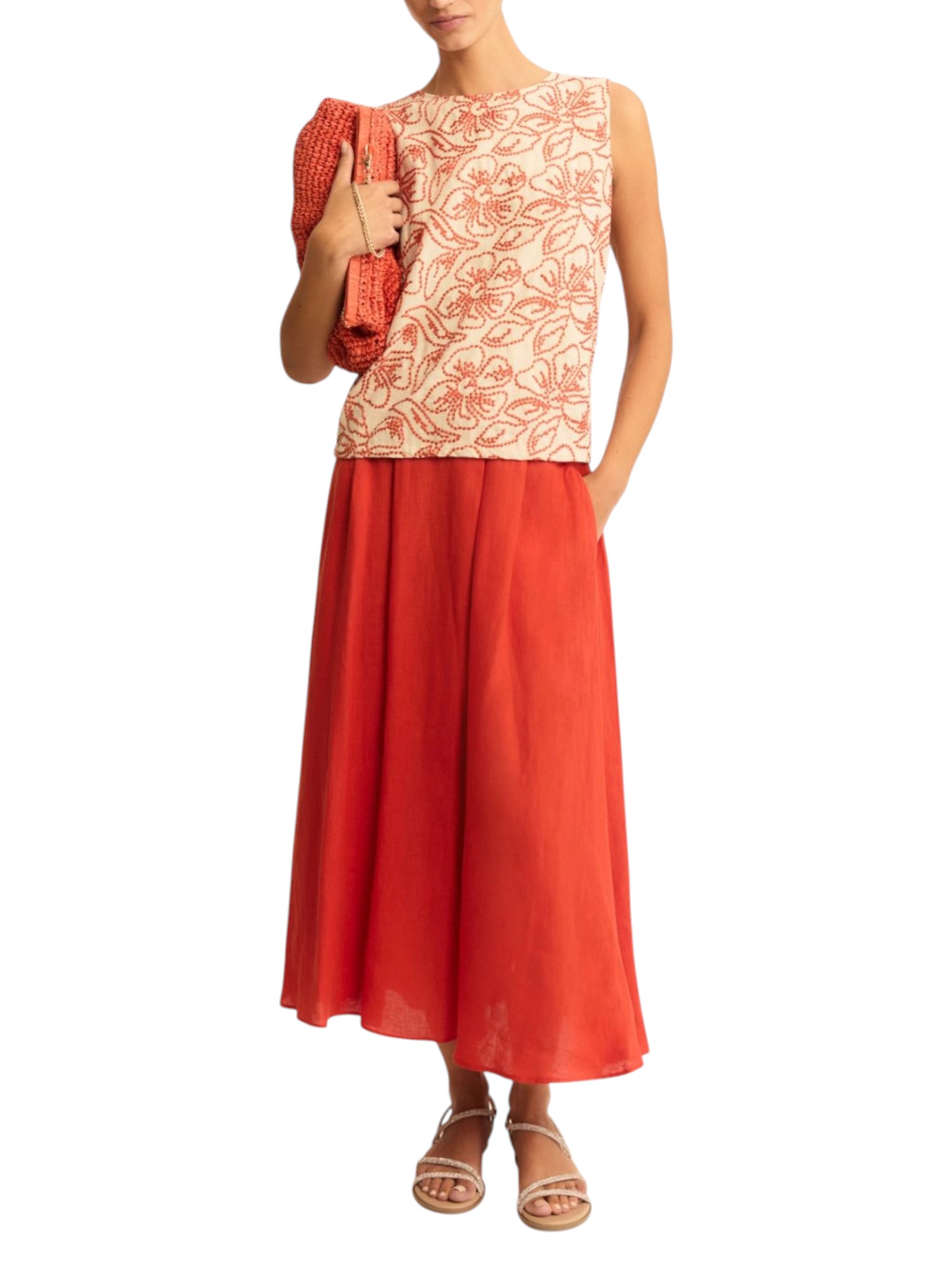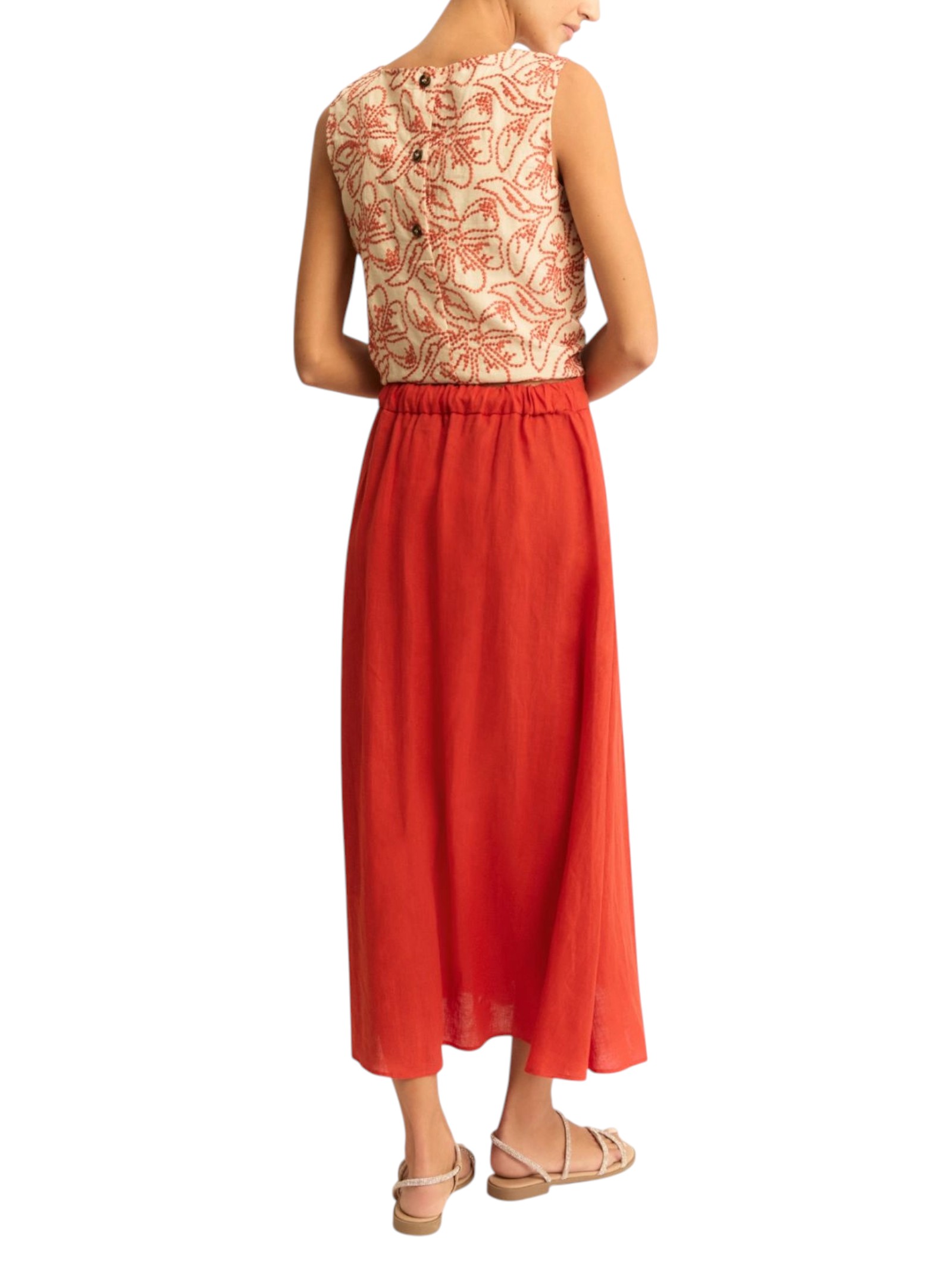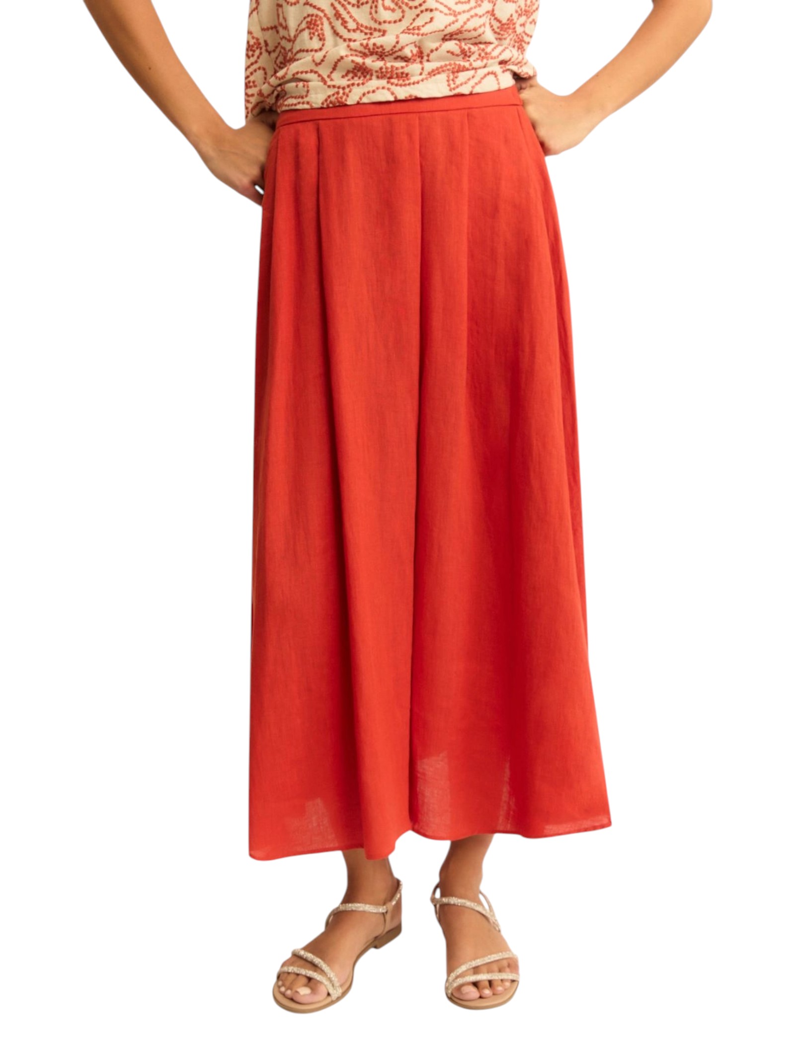 Pieghe morbide e una lunghezza versatile rendono speciale questa gonna in lino lavato. Fluida, si abbina a un top smanicato o a una camicia per i tuoi look quotidiani.