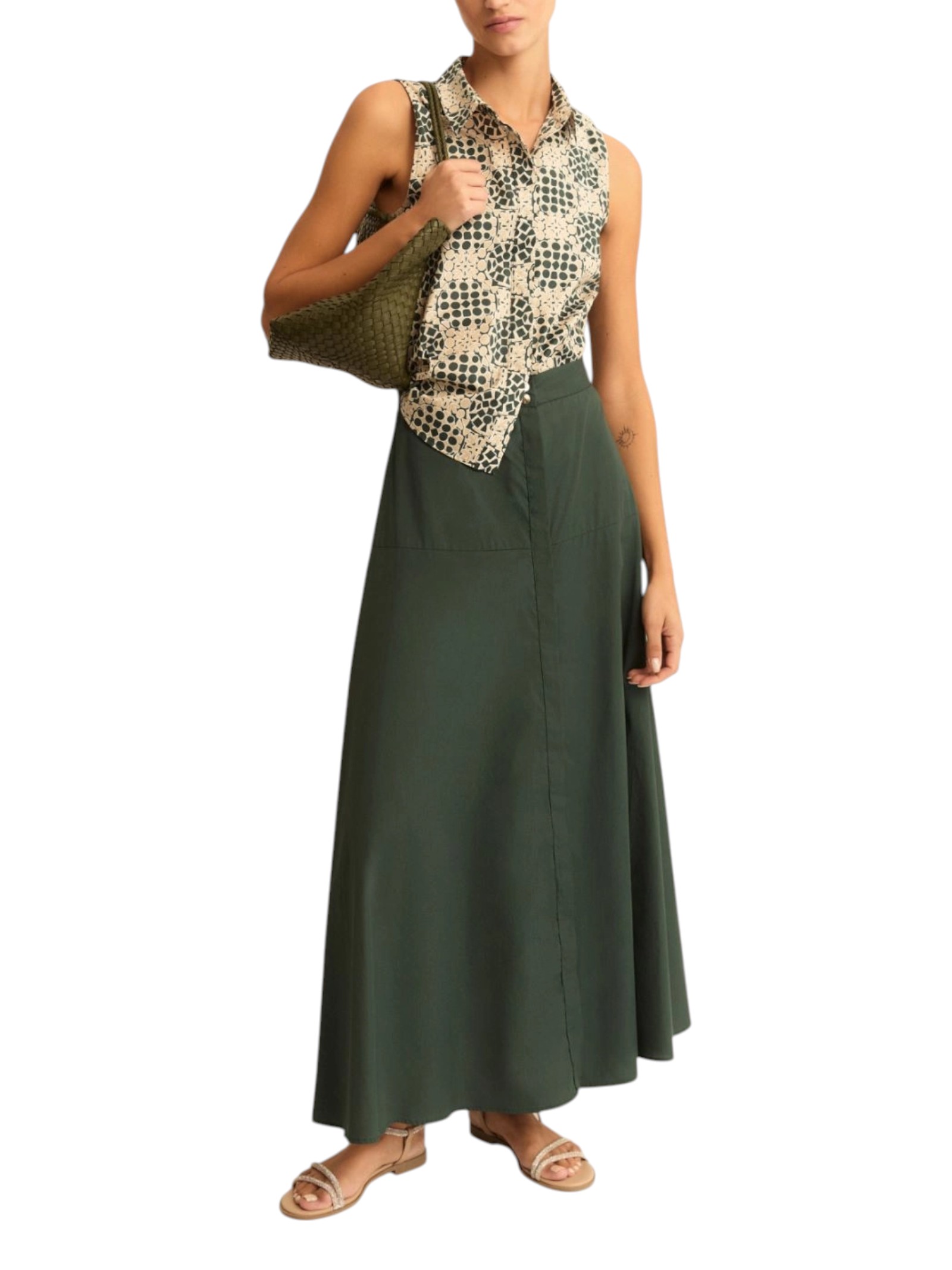 Linee morbide che richiamano l'estate, cotone leggero per affrontare con stile anche le giornate più calde: la nuova gonna svasata è una carezza da indossare giorno dopo giorno, con un top o una camicina smanicata.