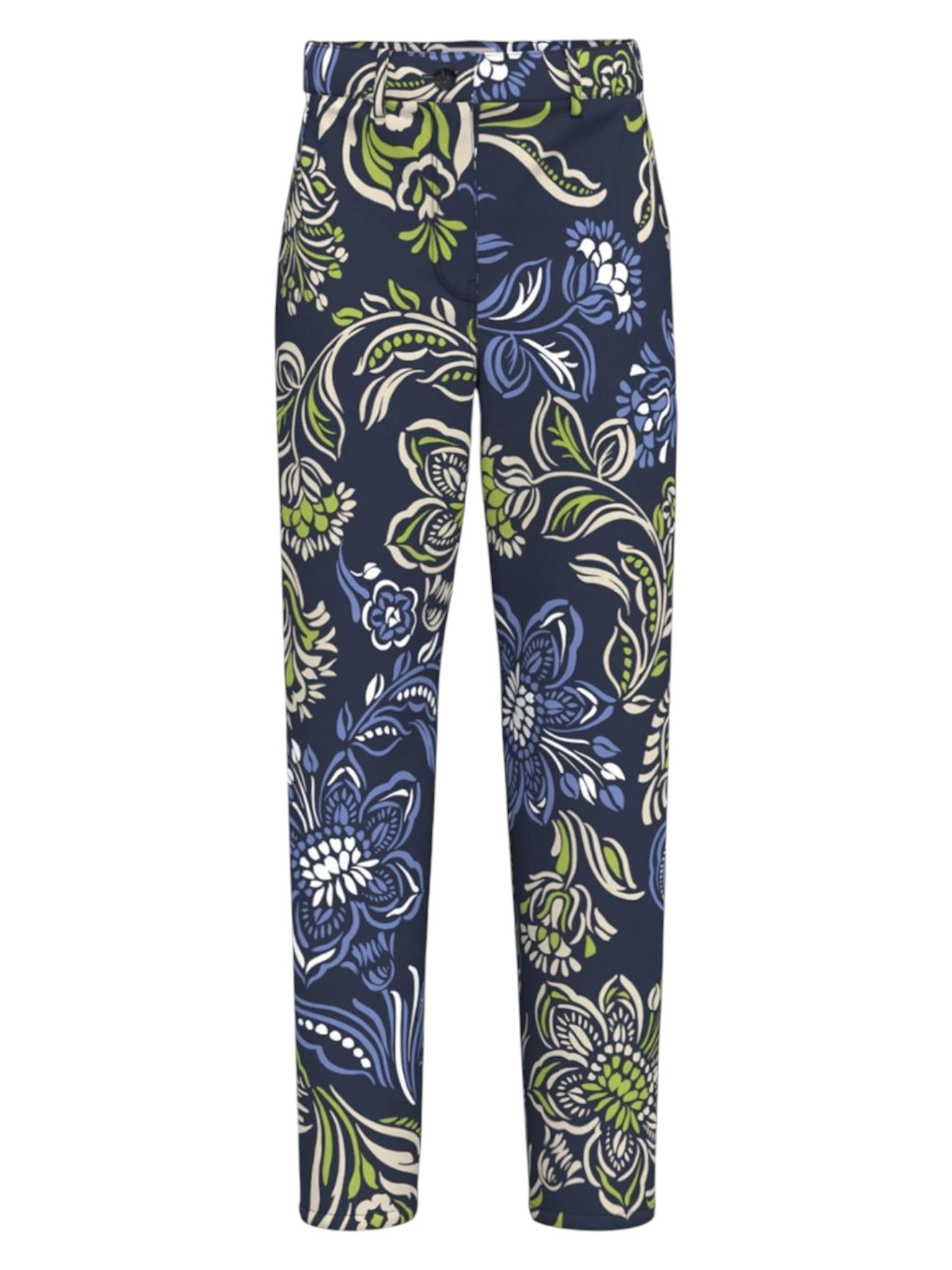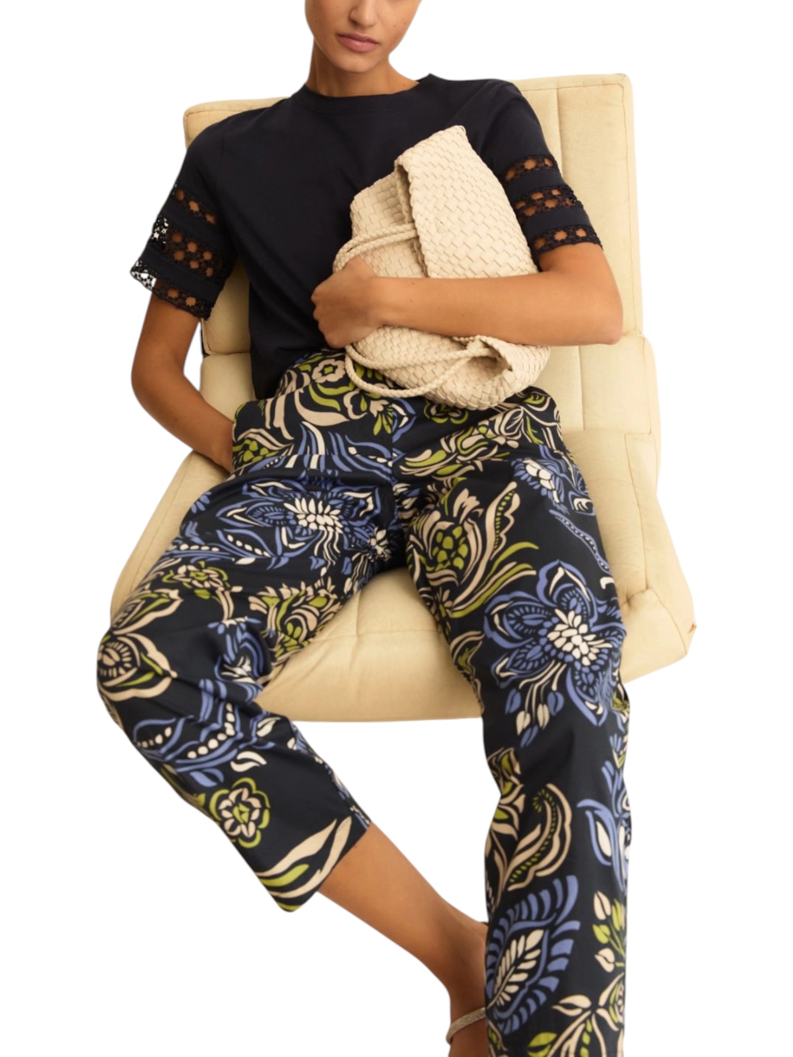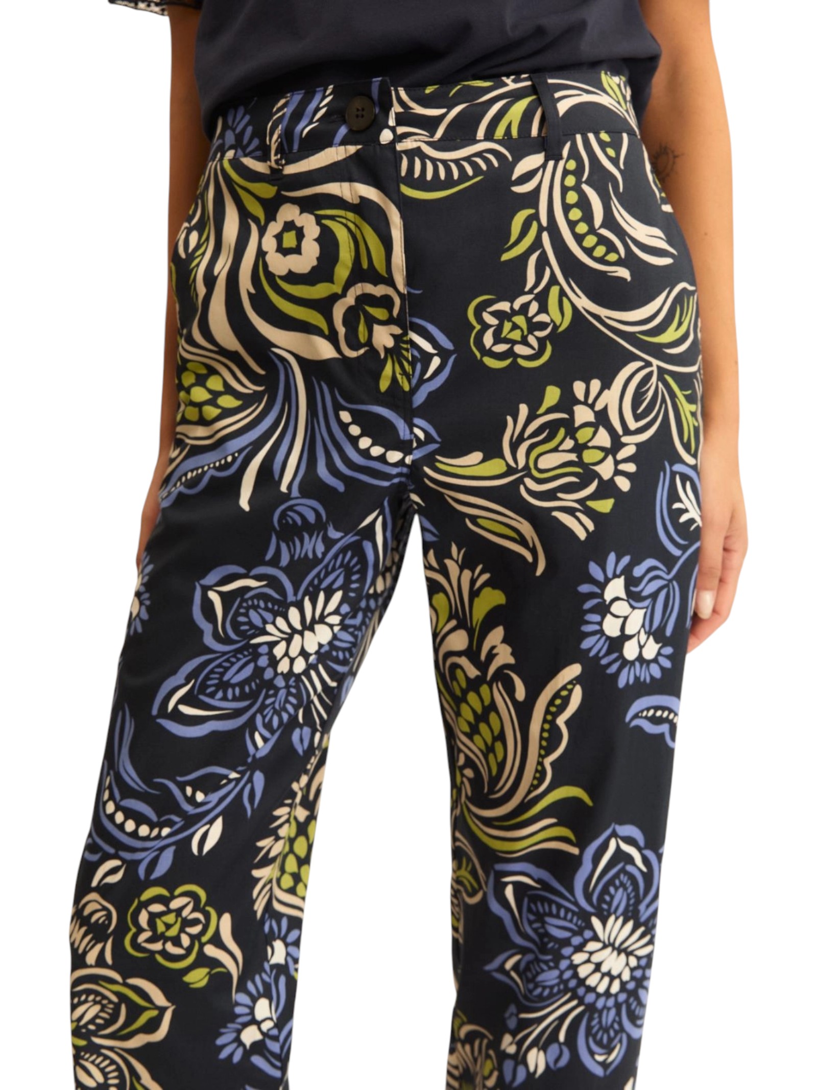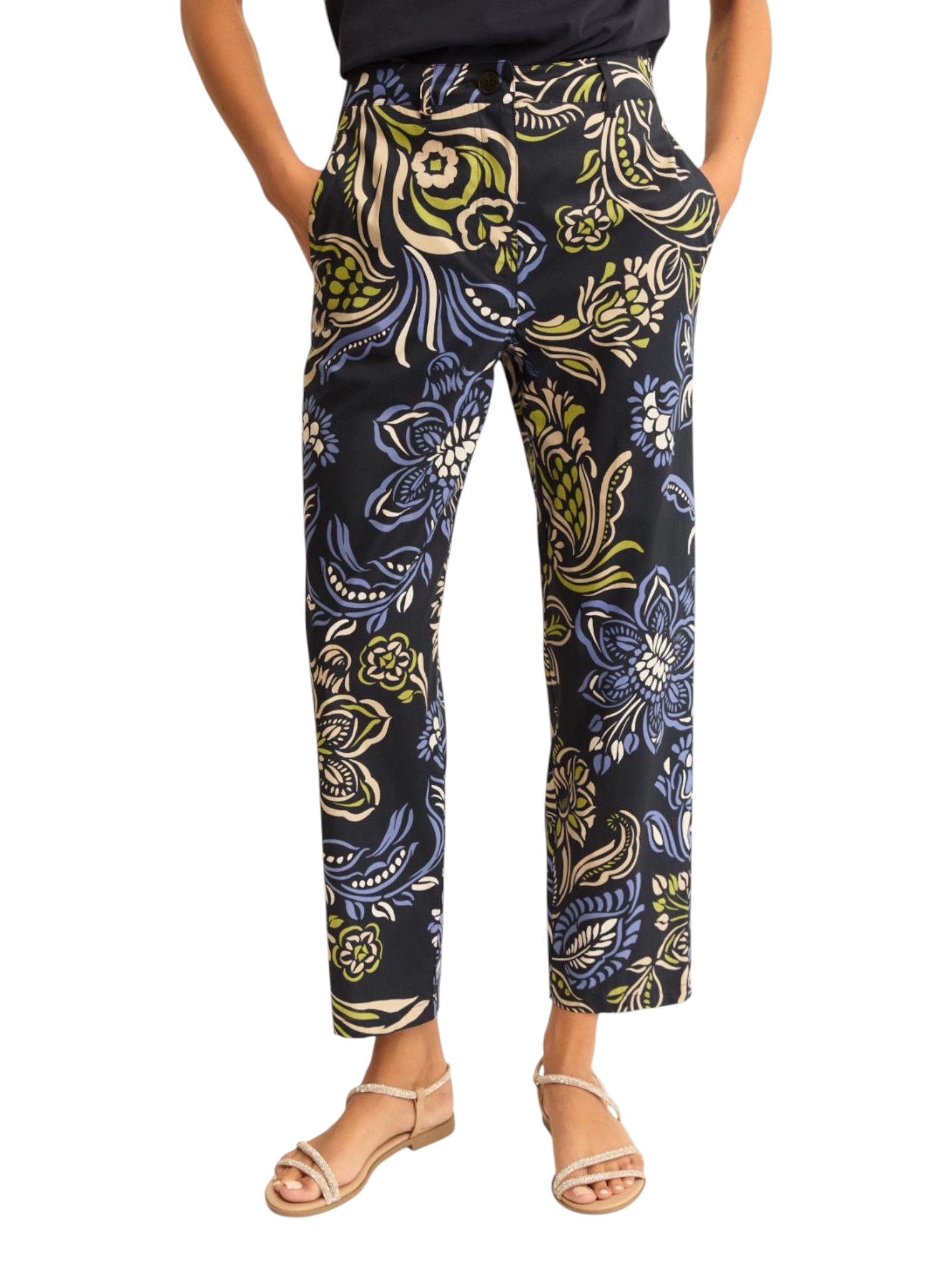 L'intramontabile chino, in versione estiva: il cotone è fresco e leggero, con una nota stretch in trama per accompagnare il movimento. La baschina sagomata posteriore segue le forme e regala una linea femminile.