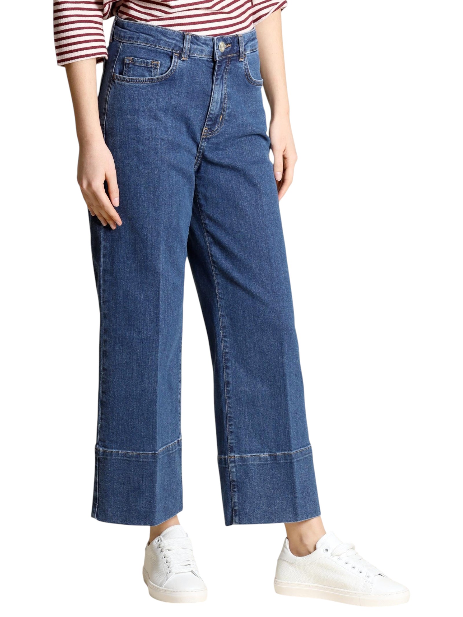 Slancia la silhouette con la linea femminile di questo denim cropped. La gamba rimane ampia, enfatizzata dall'orlo alto al fondo.