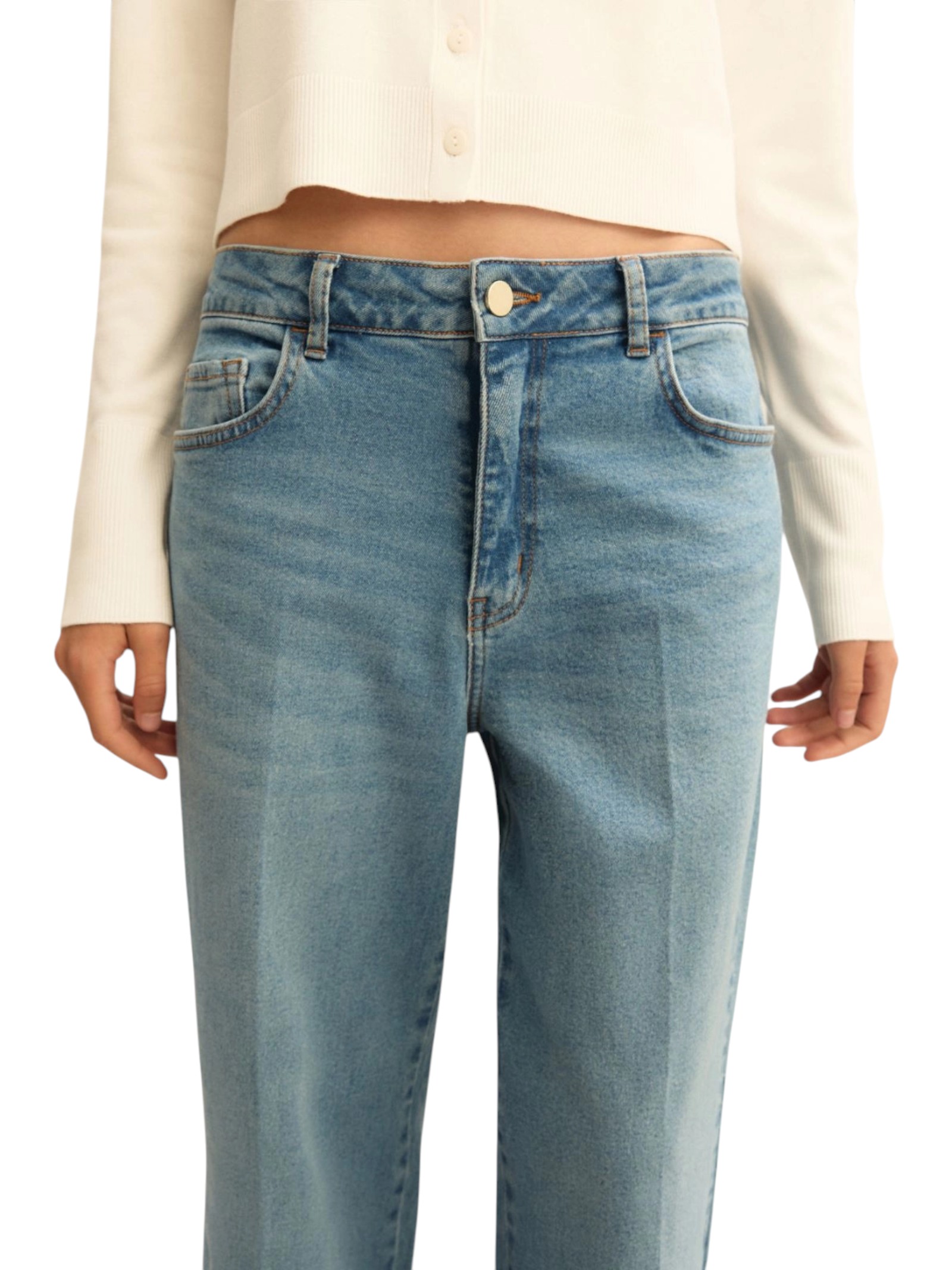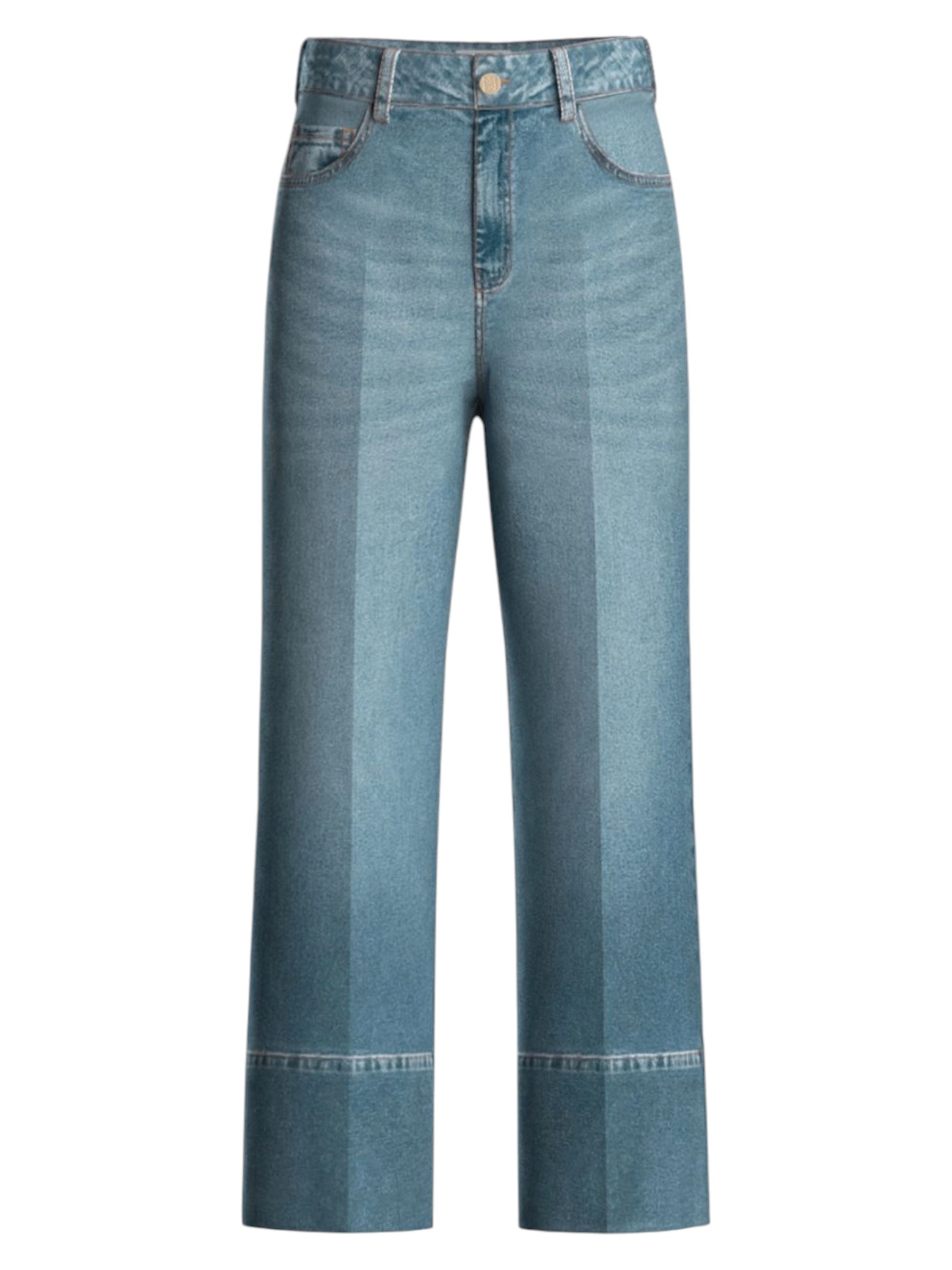 Slancia la silhouette con la linea femminile di questo denim cropped. La gamba rimane ampia, enfatizzata dall'orlo alto al fondo.