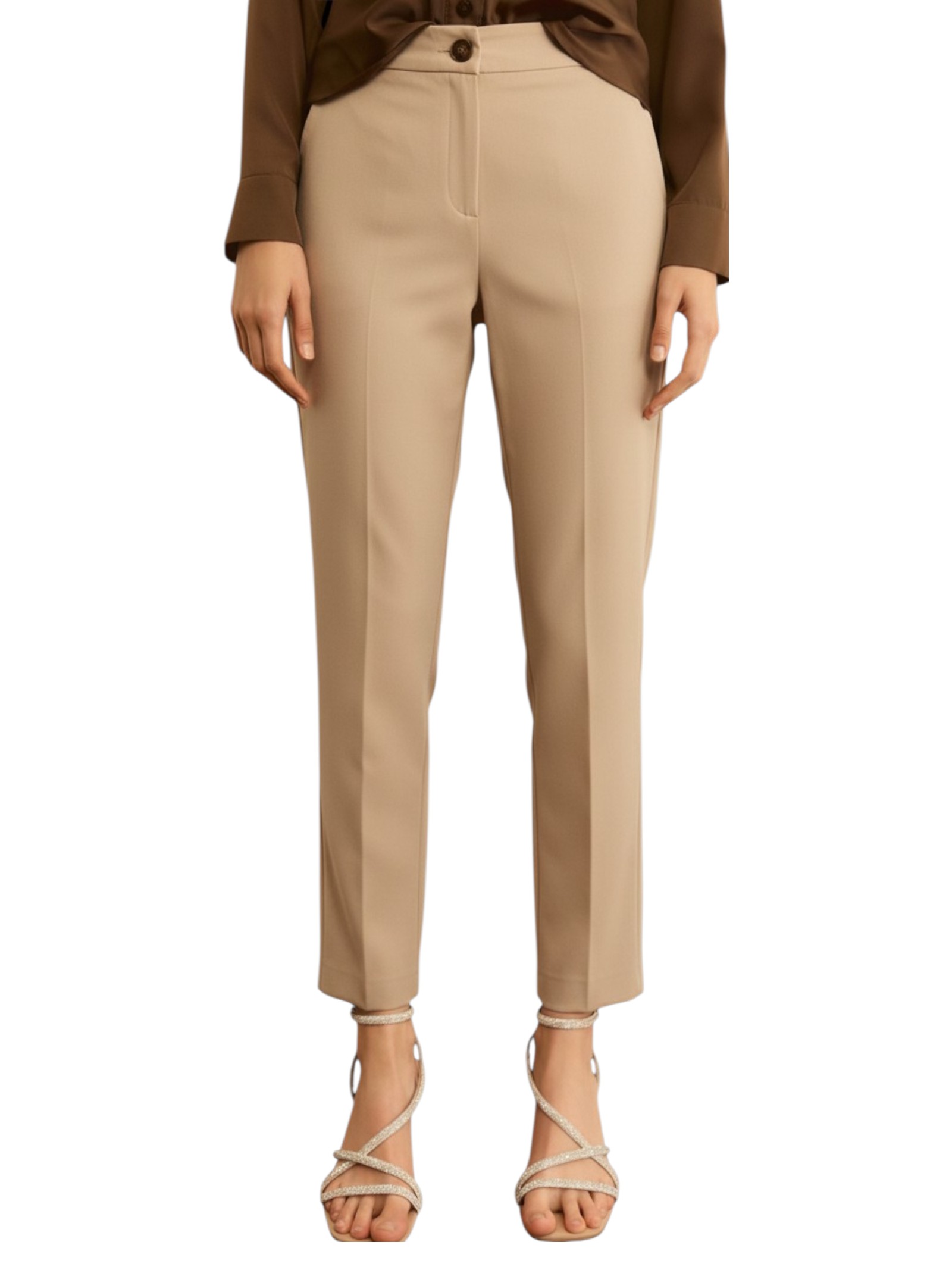 Gamba dritta e popeline stretch: il nuovo pantalone definisce la silhouette ti accompagna con versatilità, grazie alla costruzione classica e alla piega stirata.