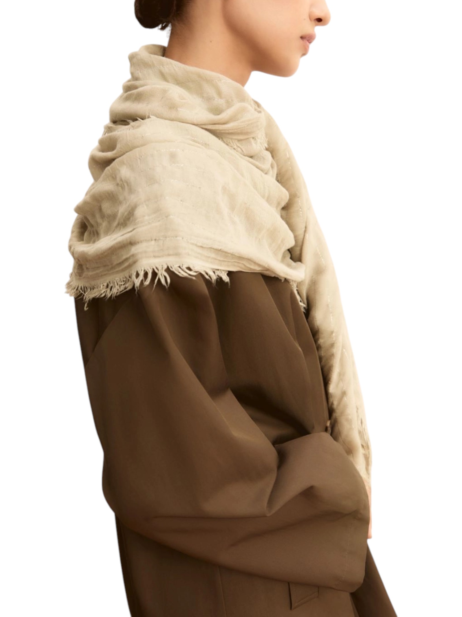 Con il filo di lurex in trama e la trama leggermente stropicciata, questa stola diventa la compagna preferita delle tue mise quotidiane. Abbinala alle t-shirt o ai blazer fluidi per una nota di carattere ai tuoi look.