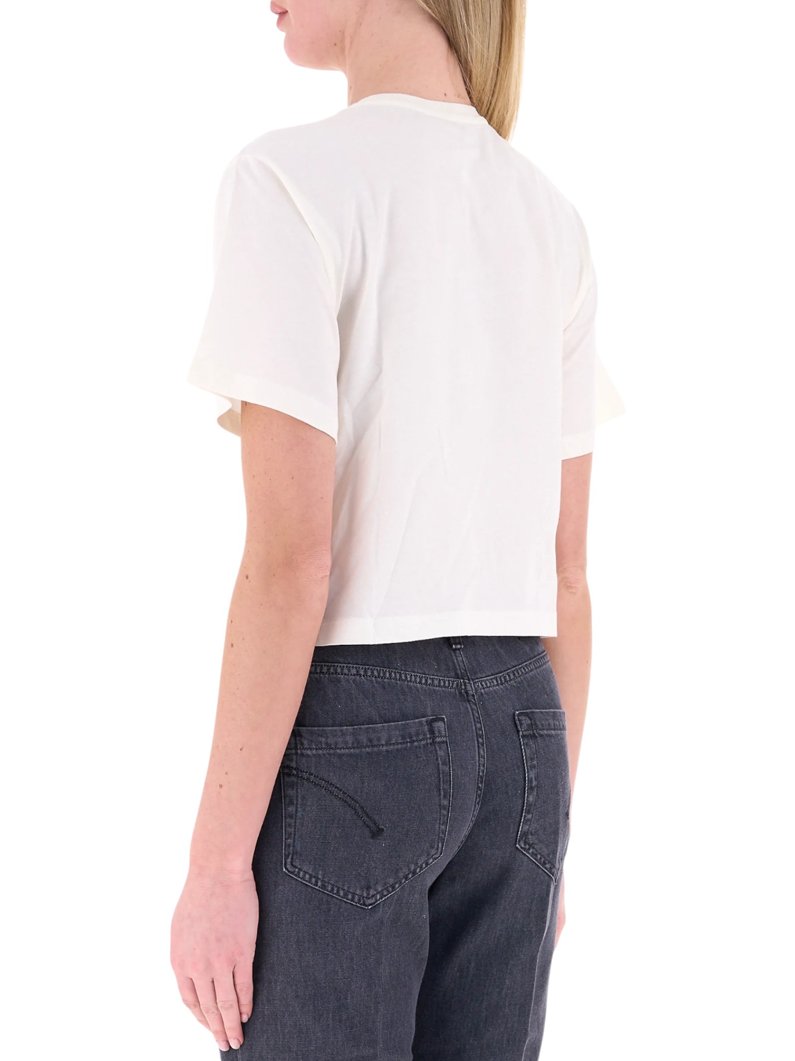 T-shirt girocollo cropped. Applicazioni sul davanti, mezza manica.