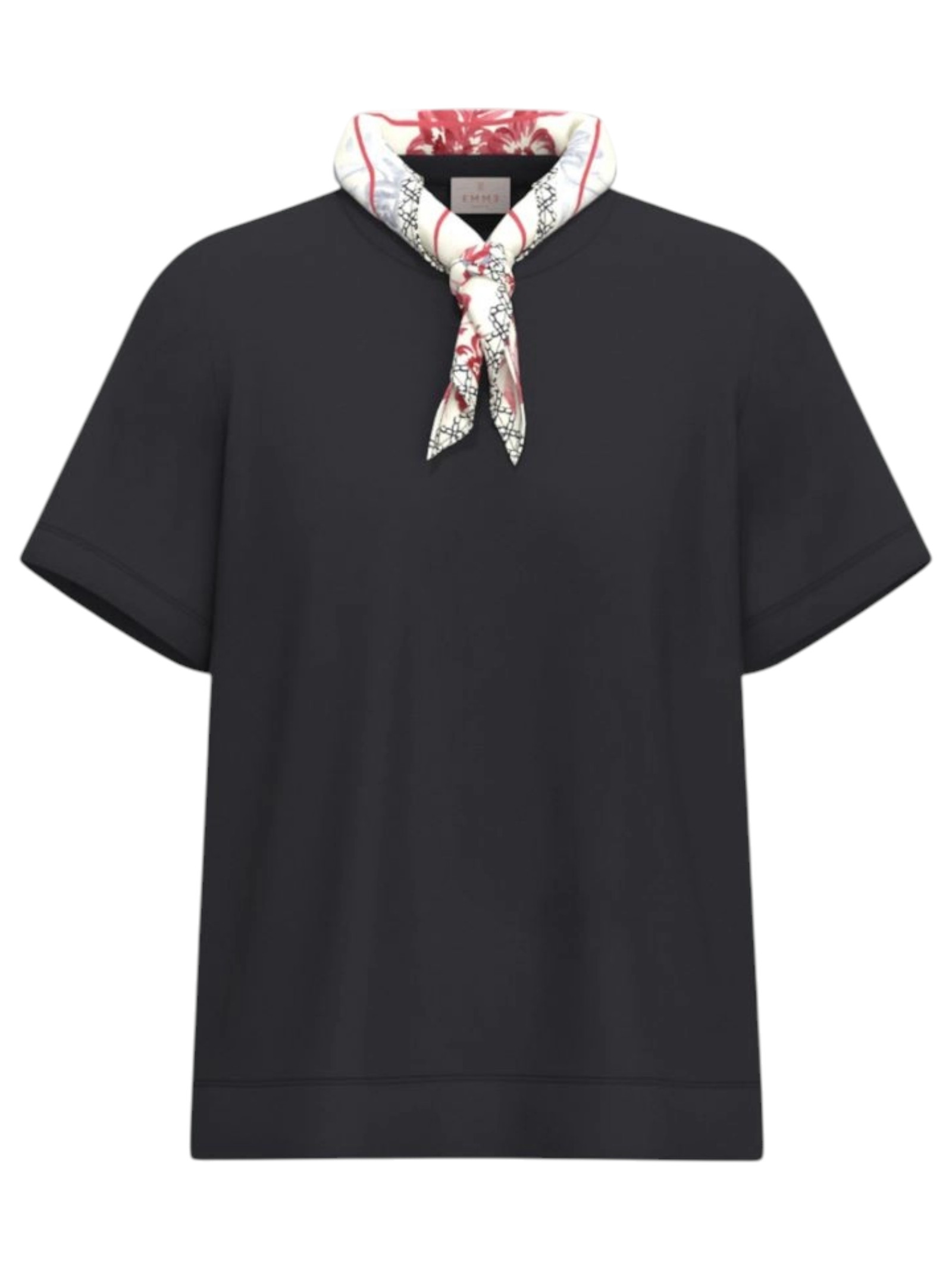 Composizione: T-shirt 95% cotone, 5% elastan. Foulard 100% poliestere.