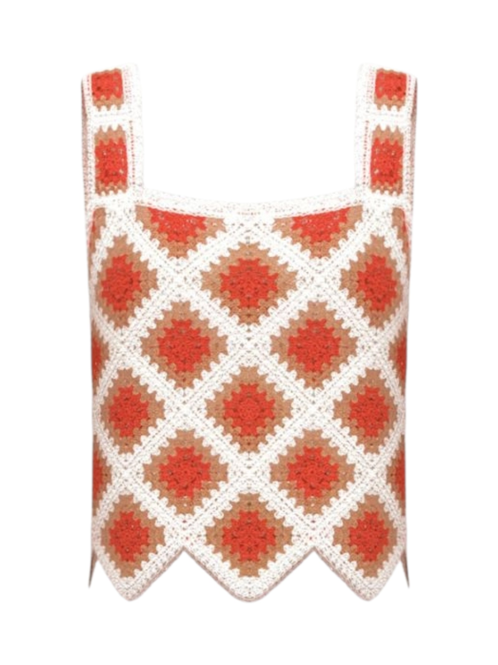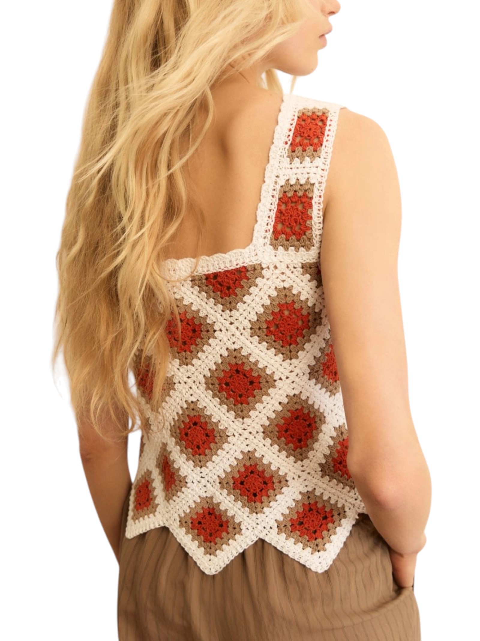 Segui il trend e lasciati affascinare dal lato romantico del crochet. In questo top diventa protagonista con colori e geometrie, messe in evidenza dal fondo smerlato.