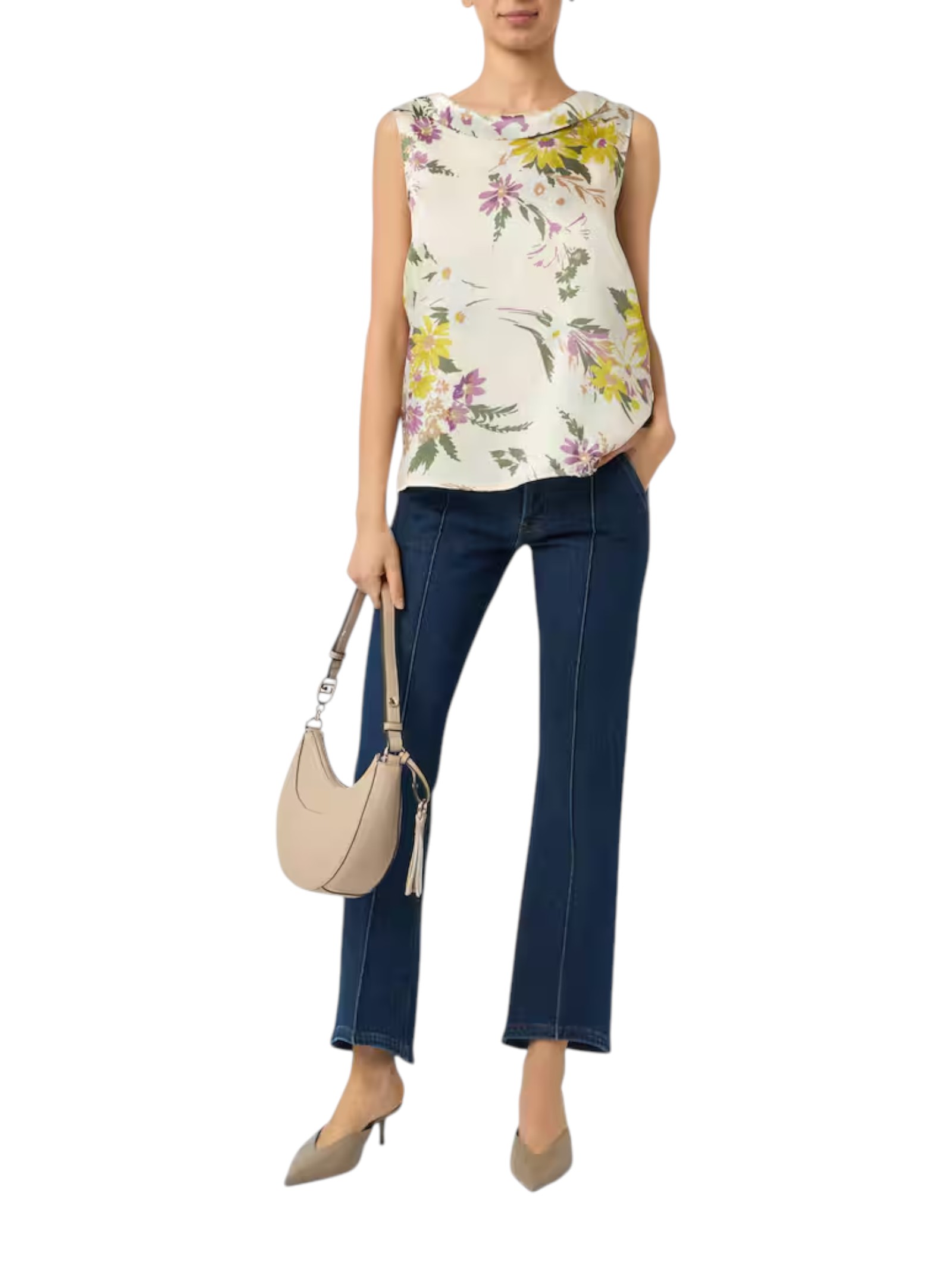 Linee sofisticate e uno scollo ripiegato che crea una linea decisa: il nuovo top rivela un'eleganza sorprendente, tra il metropolitano e l'iconico. Da completare con i pantaloni coordinati.