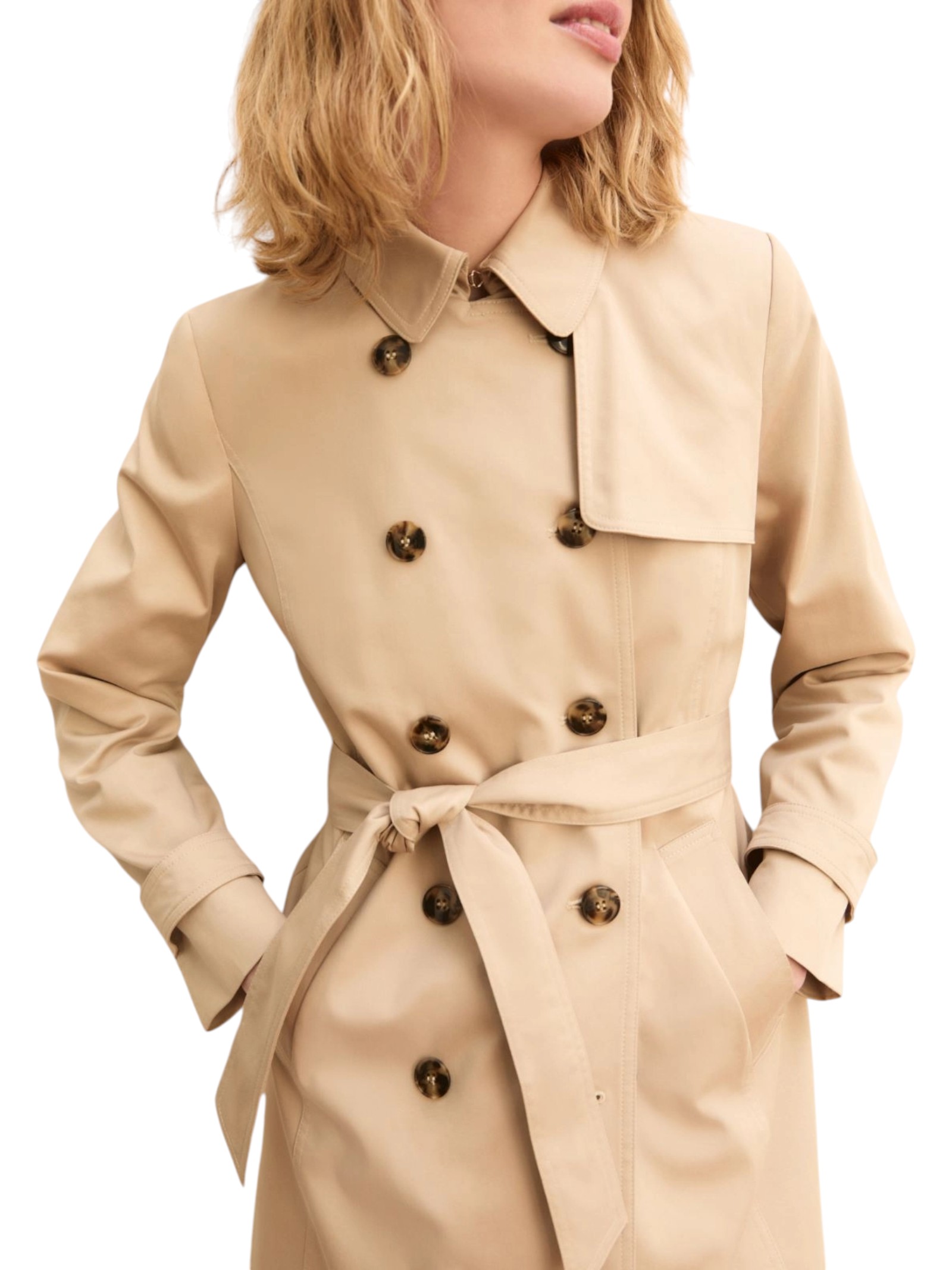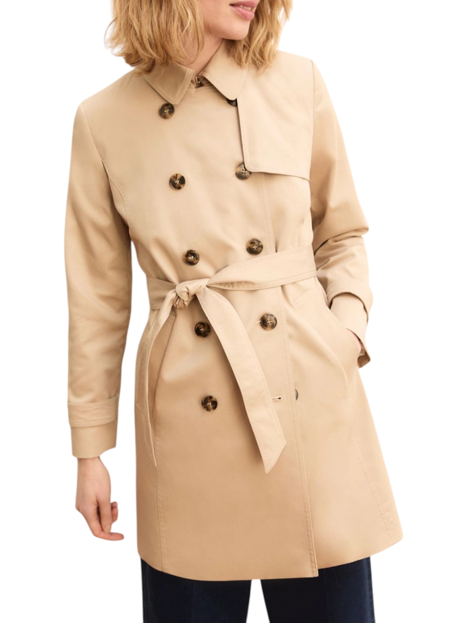 Per le amanti del capo beige più famoso di sempre, ecco il trench in raso di viscosa. Con l'iconica chiusura doppiopetto, la bavoletta sulla spalla e la cintura per stringere il punto vita.