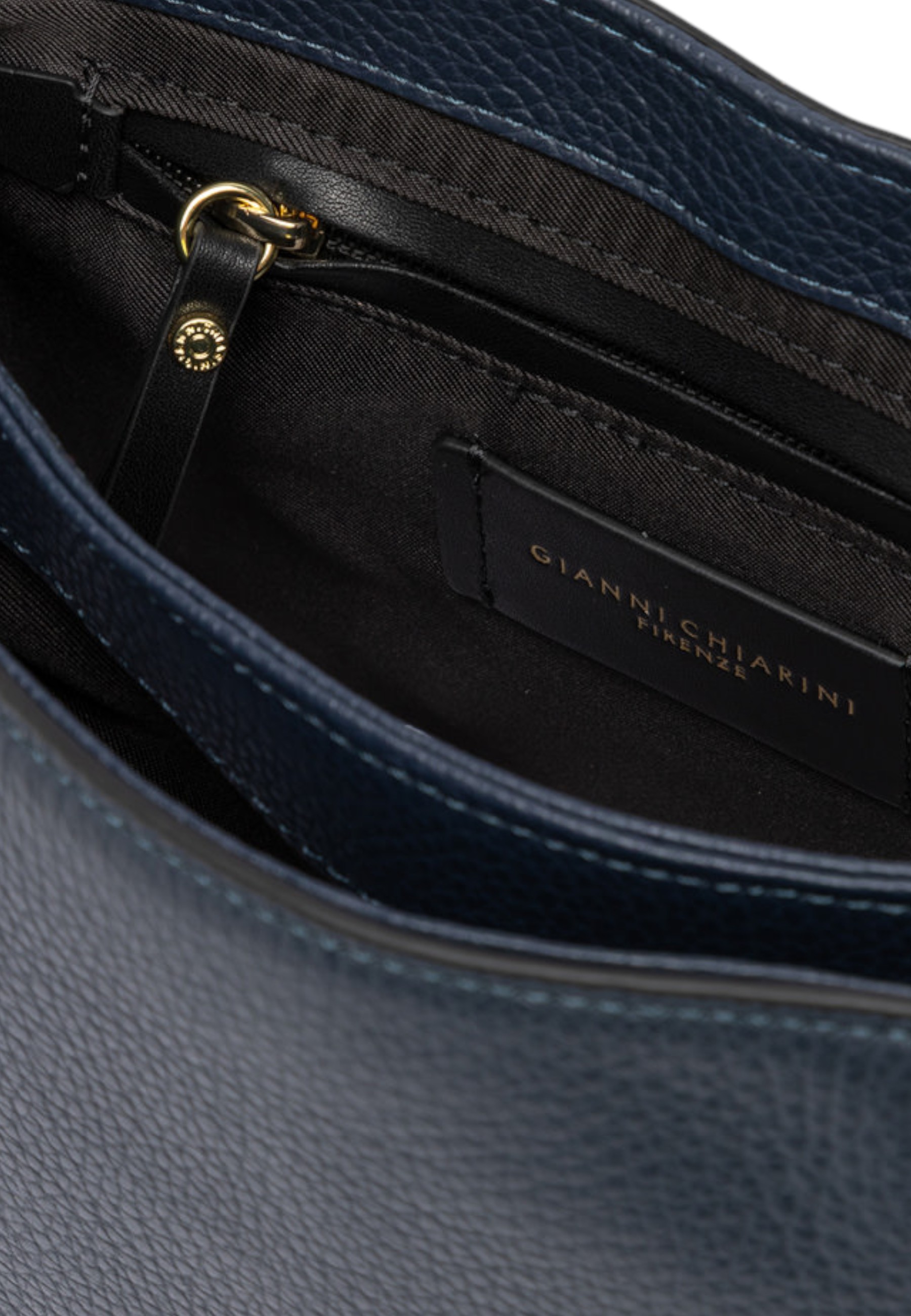 L'iconica Helena Round di Gianni Chiarini Firenze, realizzata in pelle martellata, si distingue per il suo design strutturato e dall'appeal contemporaneo. Versatile e funzionale, è dotata di una tracolla per una doppia portabilità. Pratica e organizzata è caratterizzata da un doppio compartimento interno e da una tasca a scomparsa anche nella parte posteriore della borsa.