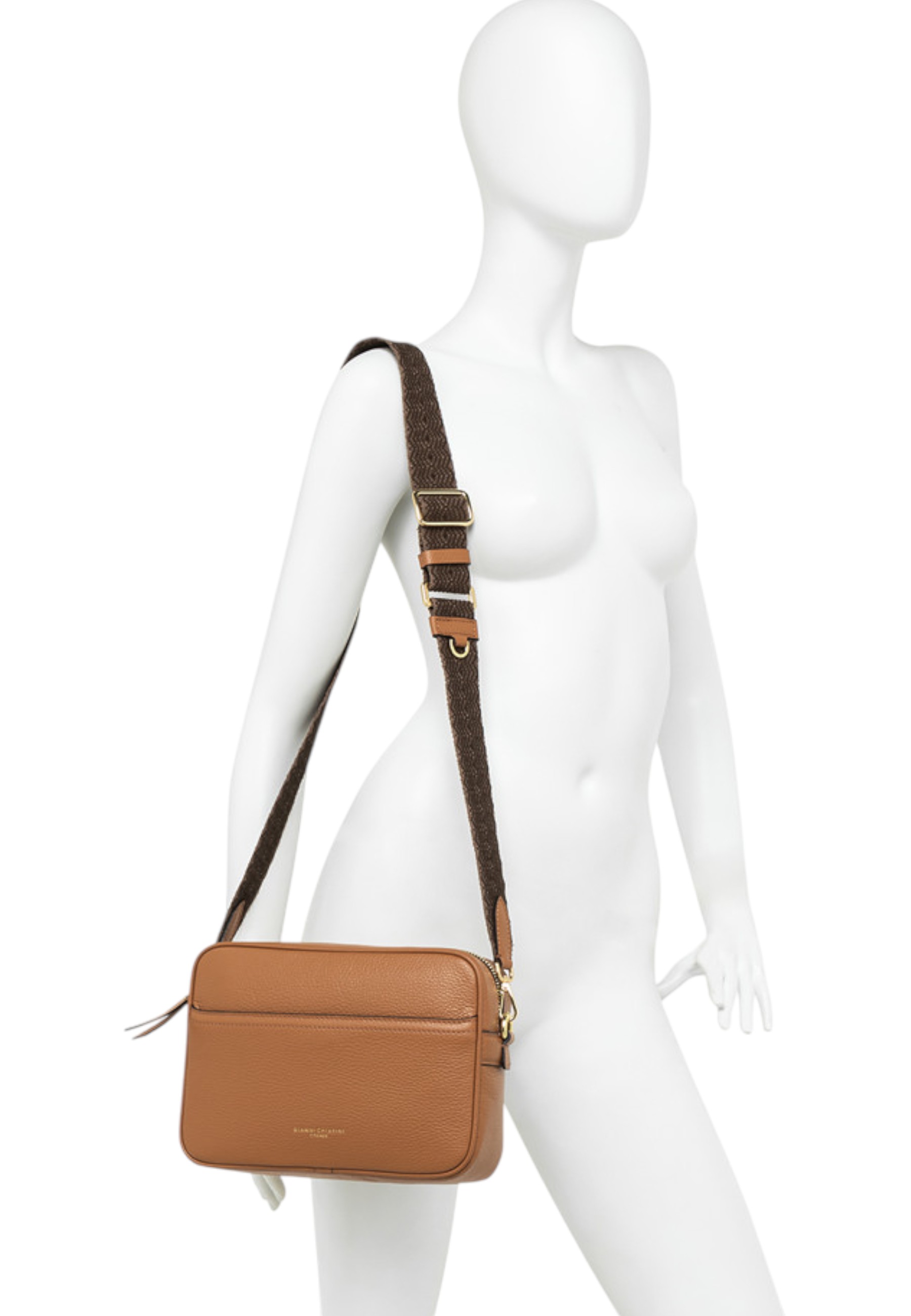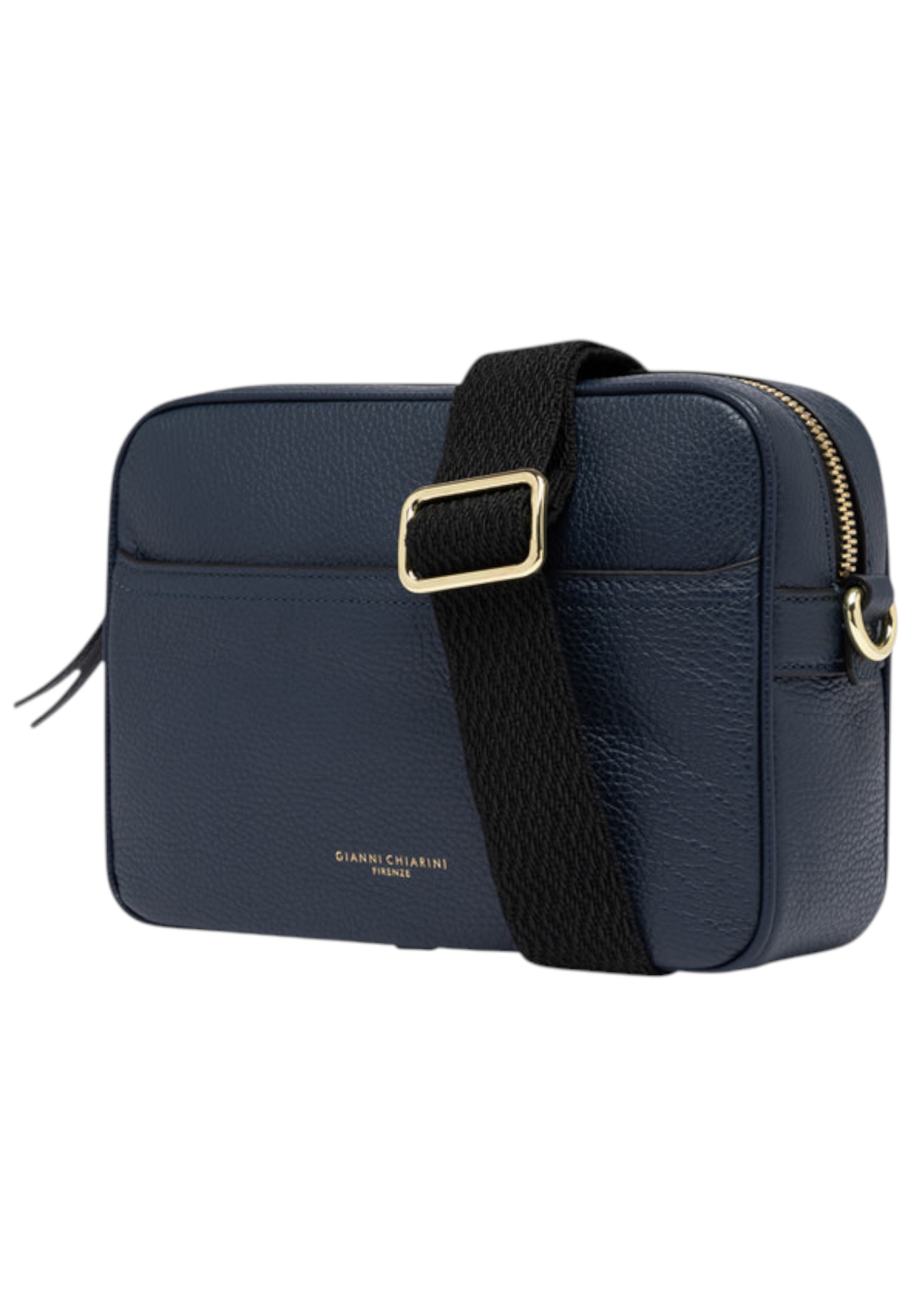 Nina by Gianni Chiarini Firenze è una pratica borsa a tracolla in pelle martellata, caratterizzata da una shape squadrata. Presenta uno scomparto principale con chiusura zip e una tasca piatta sul fronte. Dotata di una tracolla aggiuntiva in tessuto intrecciato per un utilizzo ancora più trasversale.