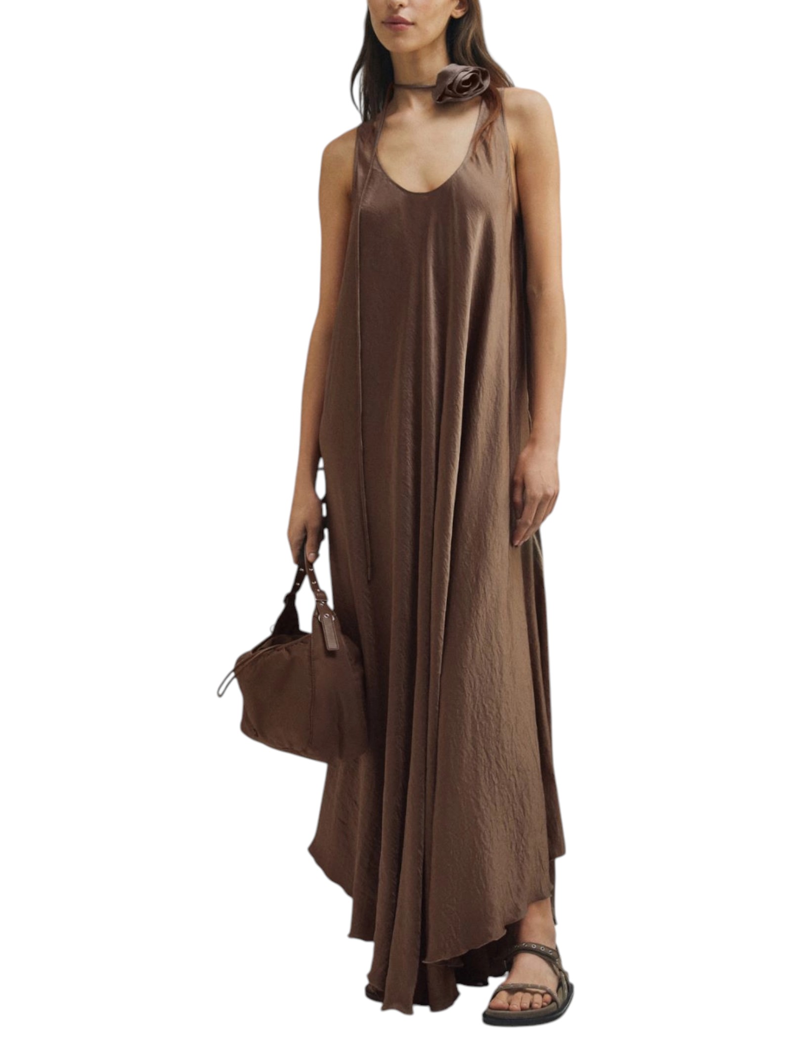 Si indossa con un gesto, e sei pronta ad uscire: è l'abito in twill con effetto crinckle, materico al tocco ma leggerissimo. Da completare con cintura abbinata a fiore e sandali per un summer look a prova di città.