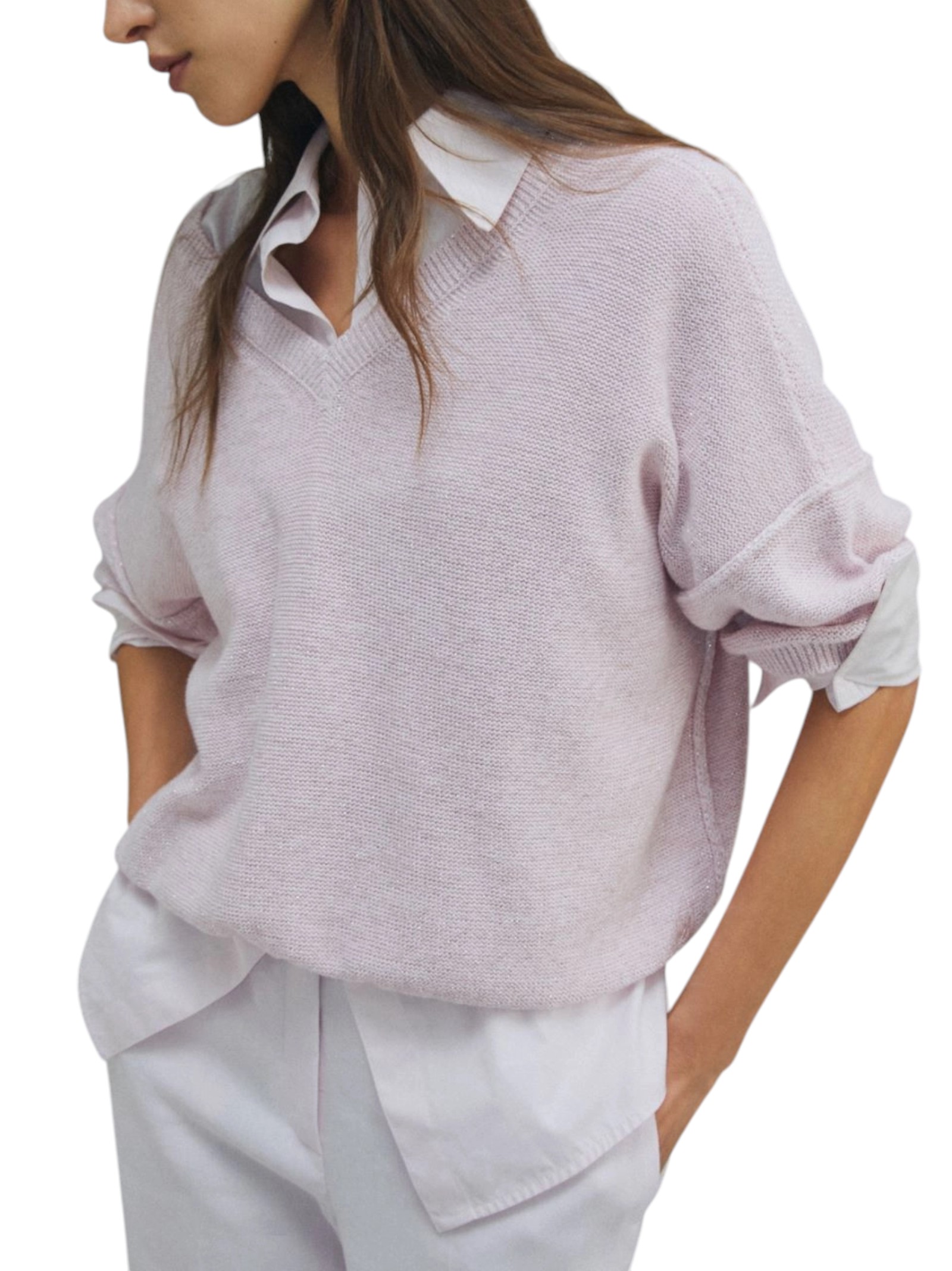 Linea ampia, spalla scesa: questa nuova maglia si inserisce con stile nel nostro guardaroba, grazie anche ai dettagli brillanti del lurex e alla sensualità dello scollo fronte e retro. Indossala con i jogger o con i pants sartoriali per un'eleganza up to date.