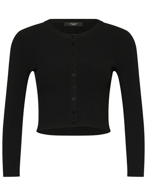 Piccolo cardigan a costine con taglio cropped in vita.