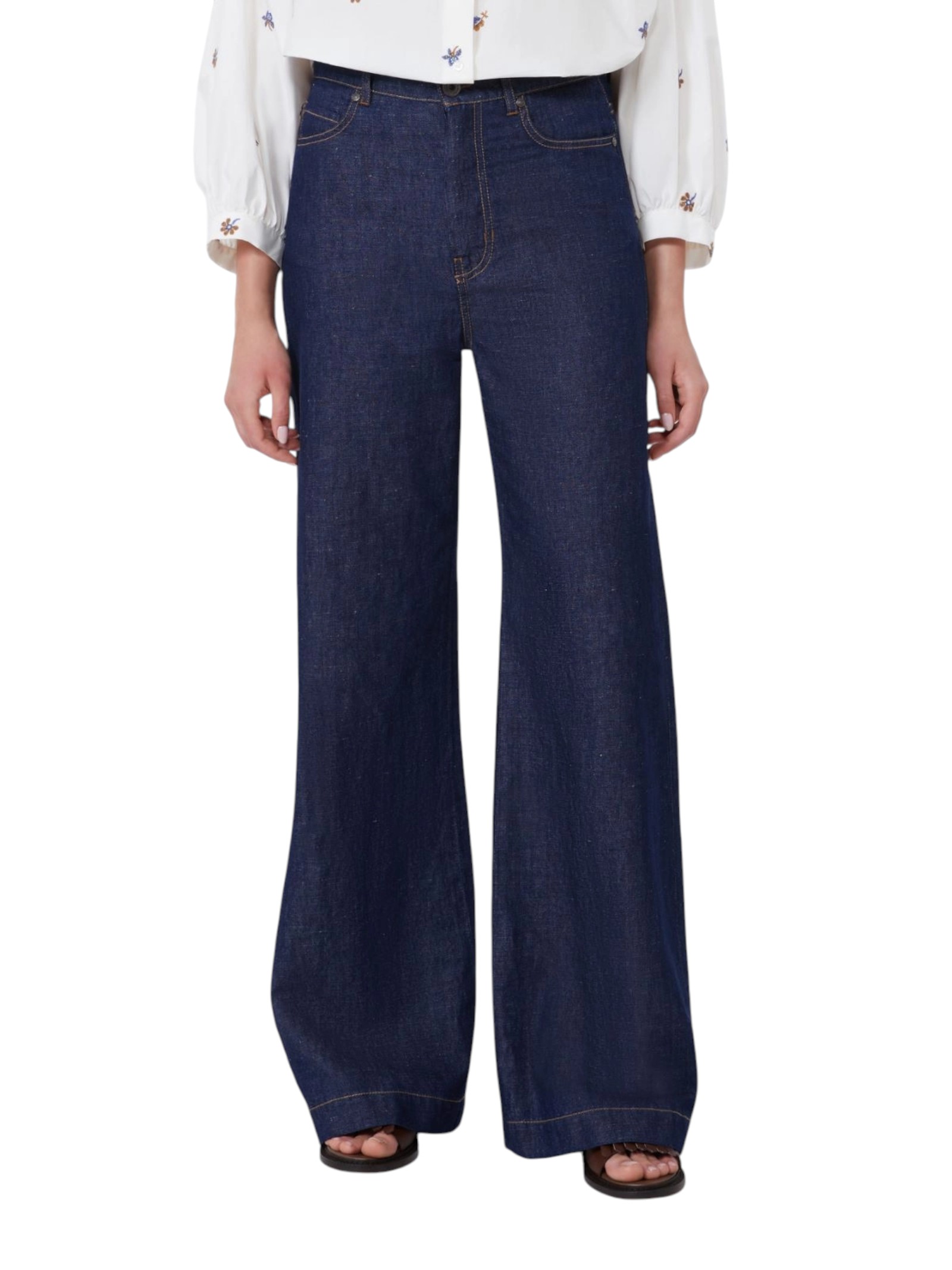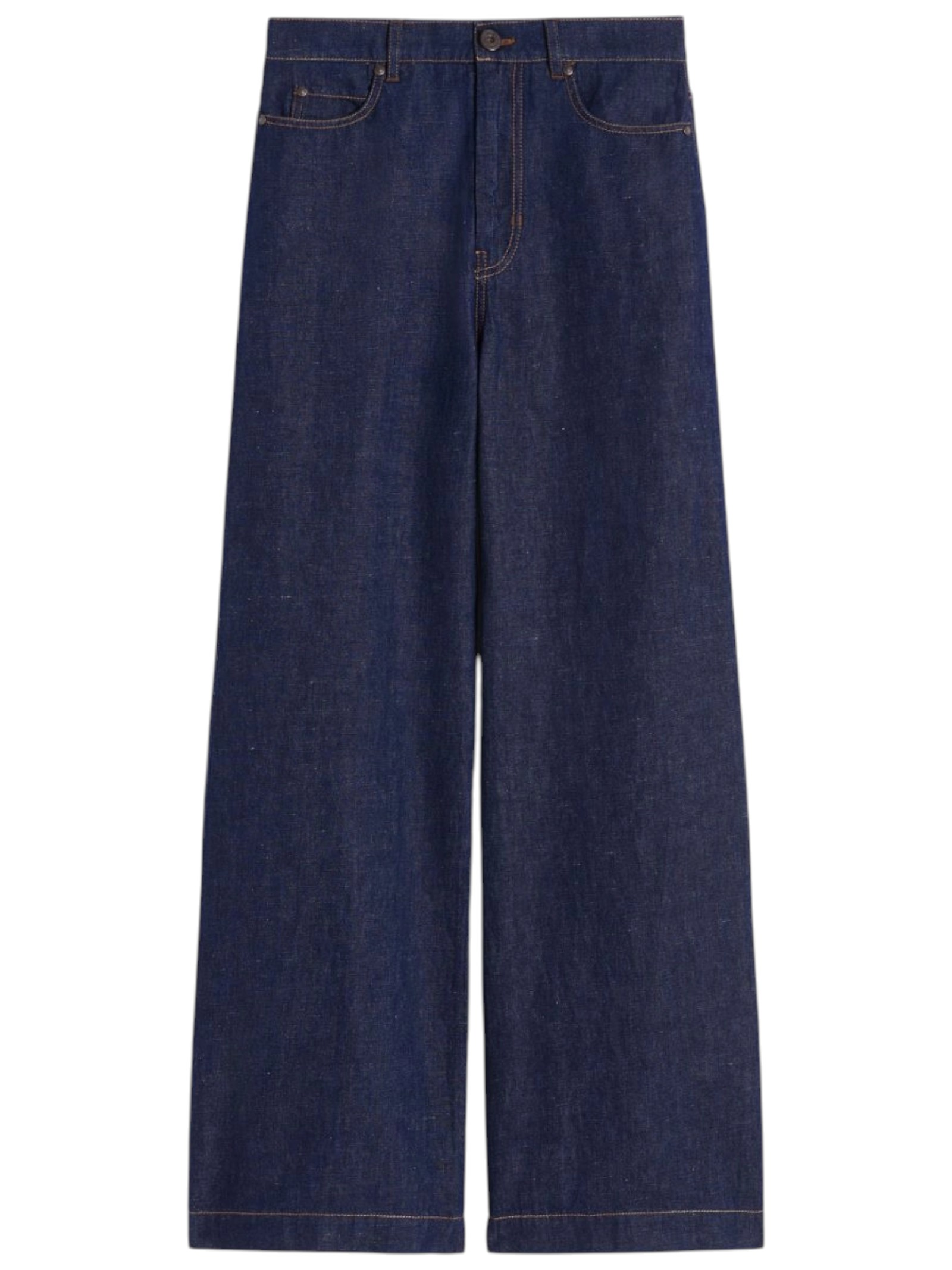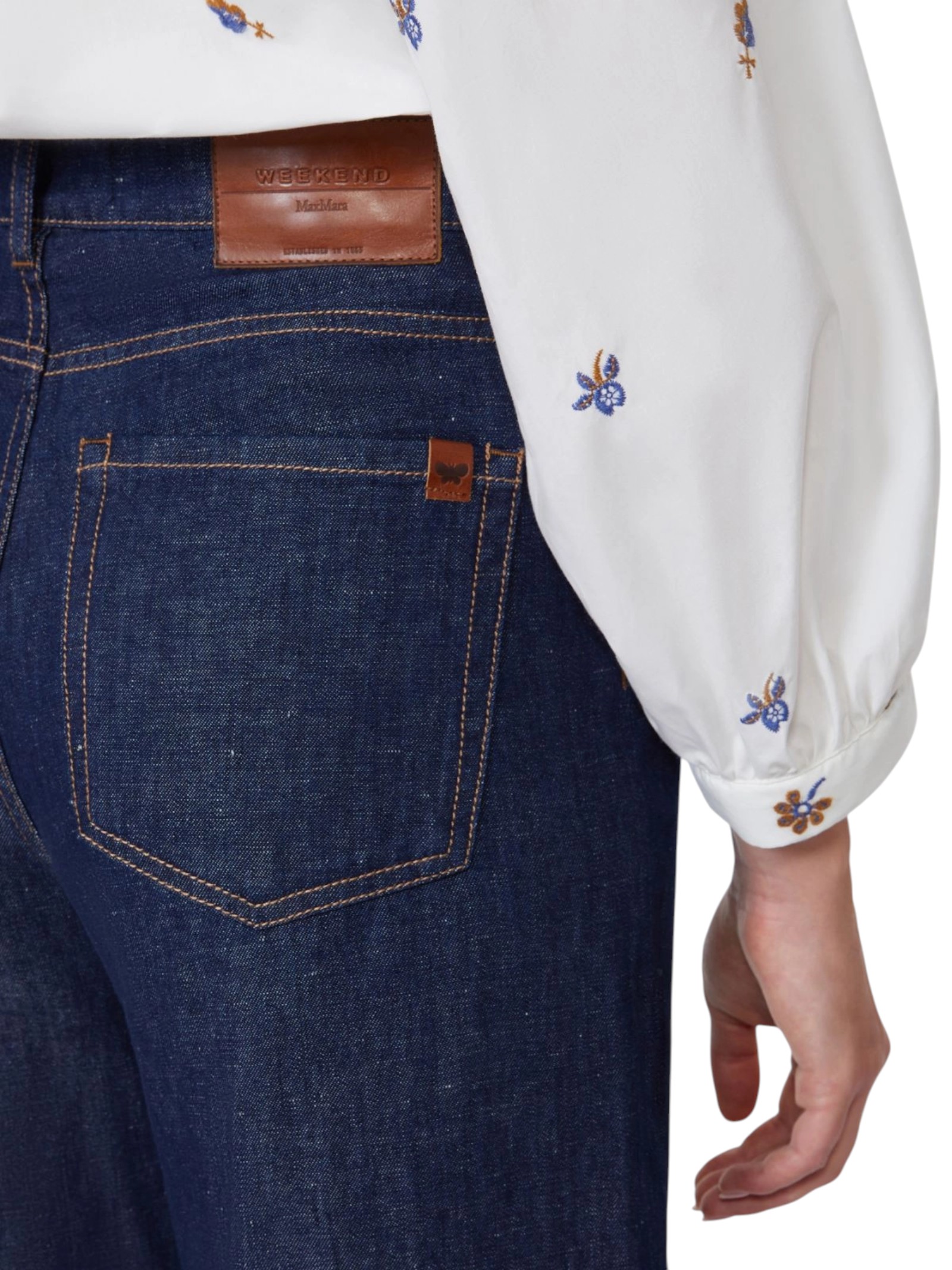 Jeans 5 tasche, caratterizzato da una silhouette leggermente svasata d'ispirazione Seventy.