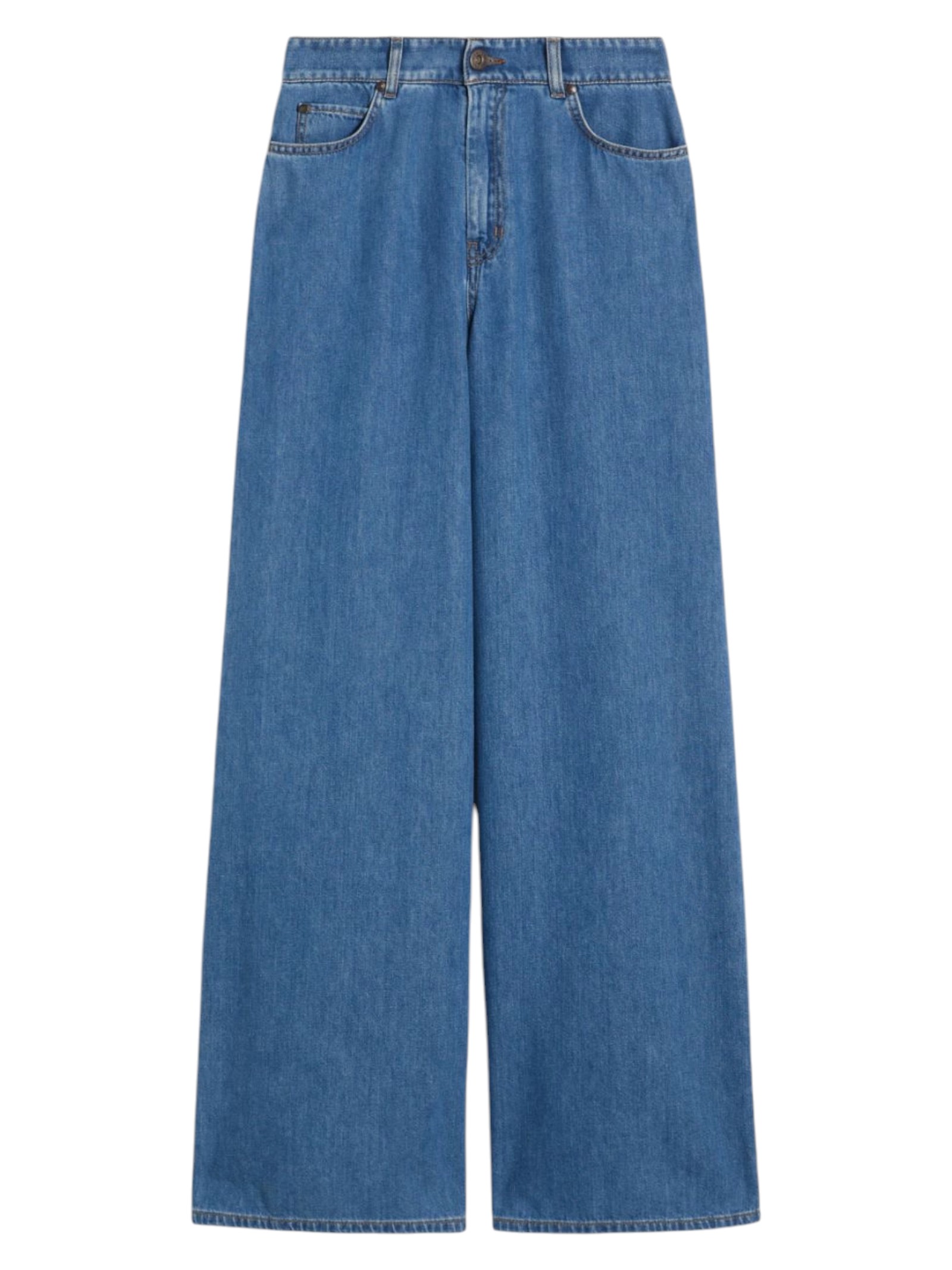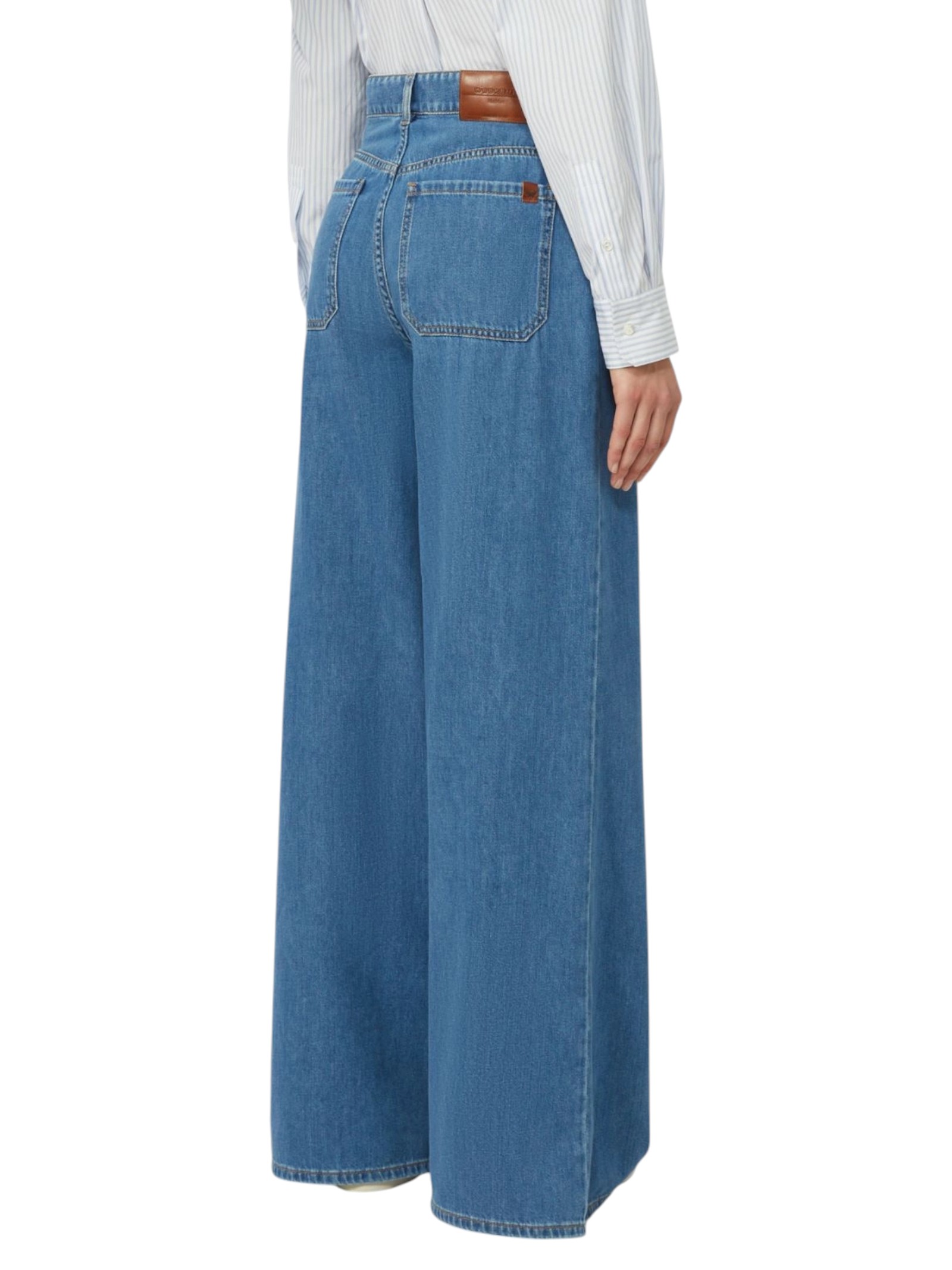 Jeans 5 tasche dalla silhouette wide leg, personalizzato da label con logo a farfalla sulla tasca posteriore destra.