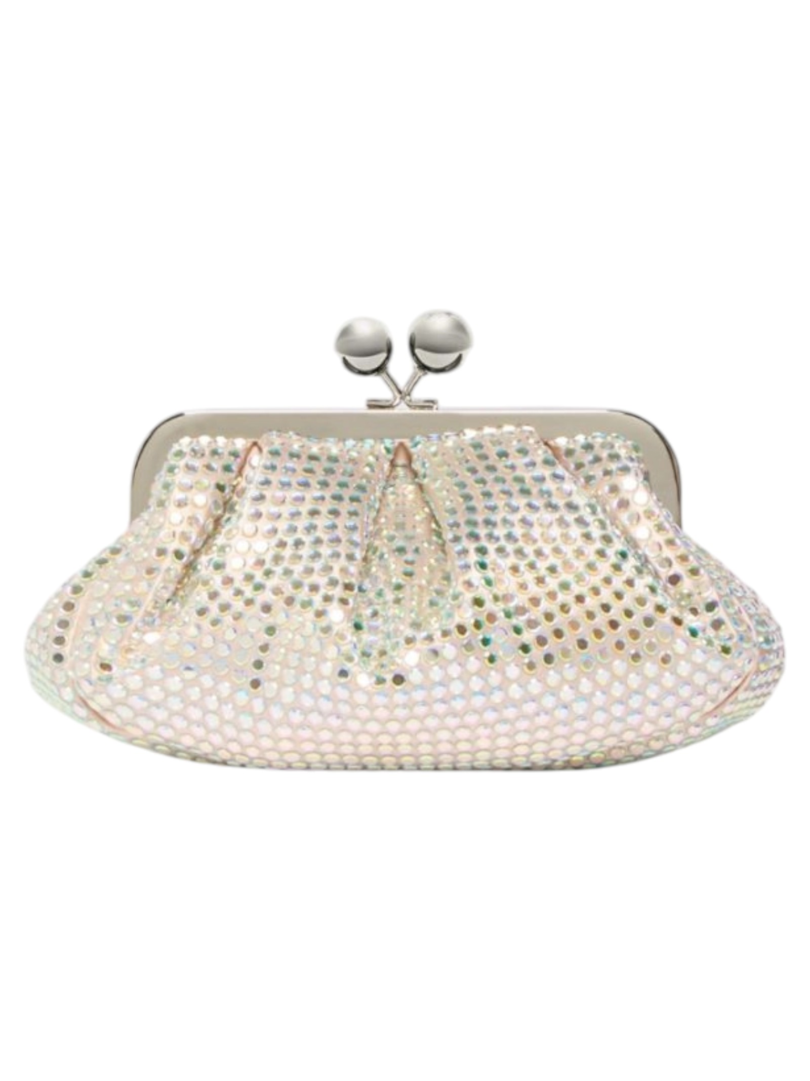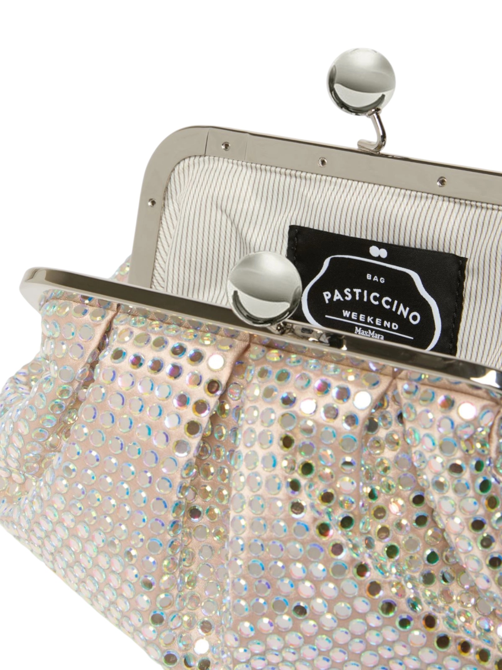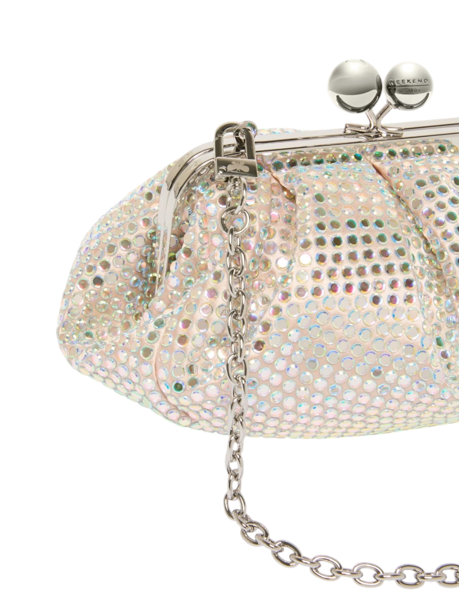 Borsa in raso interamente ricoperta da pavé di strass termosaldati