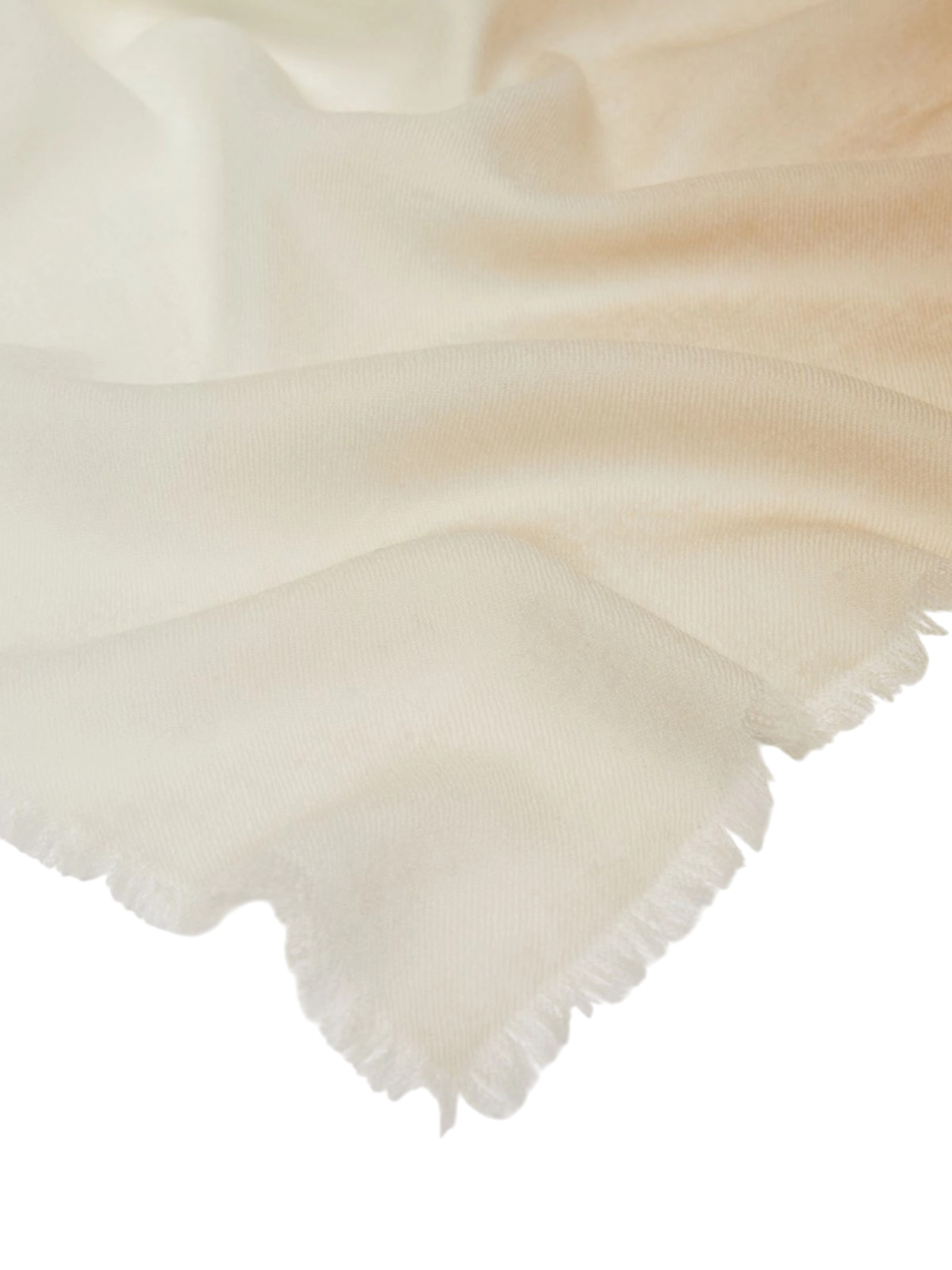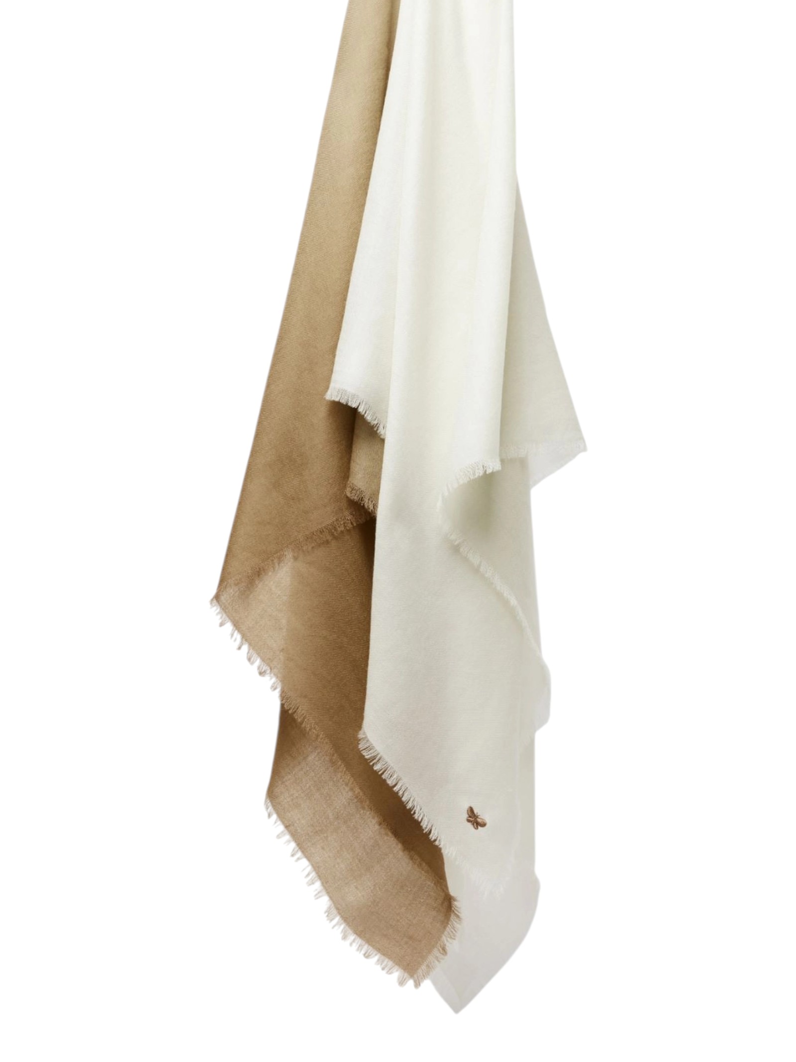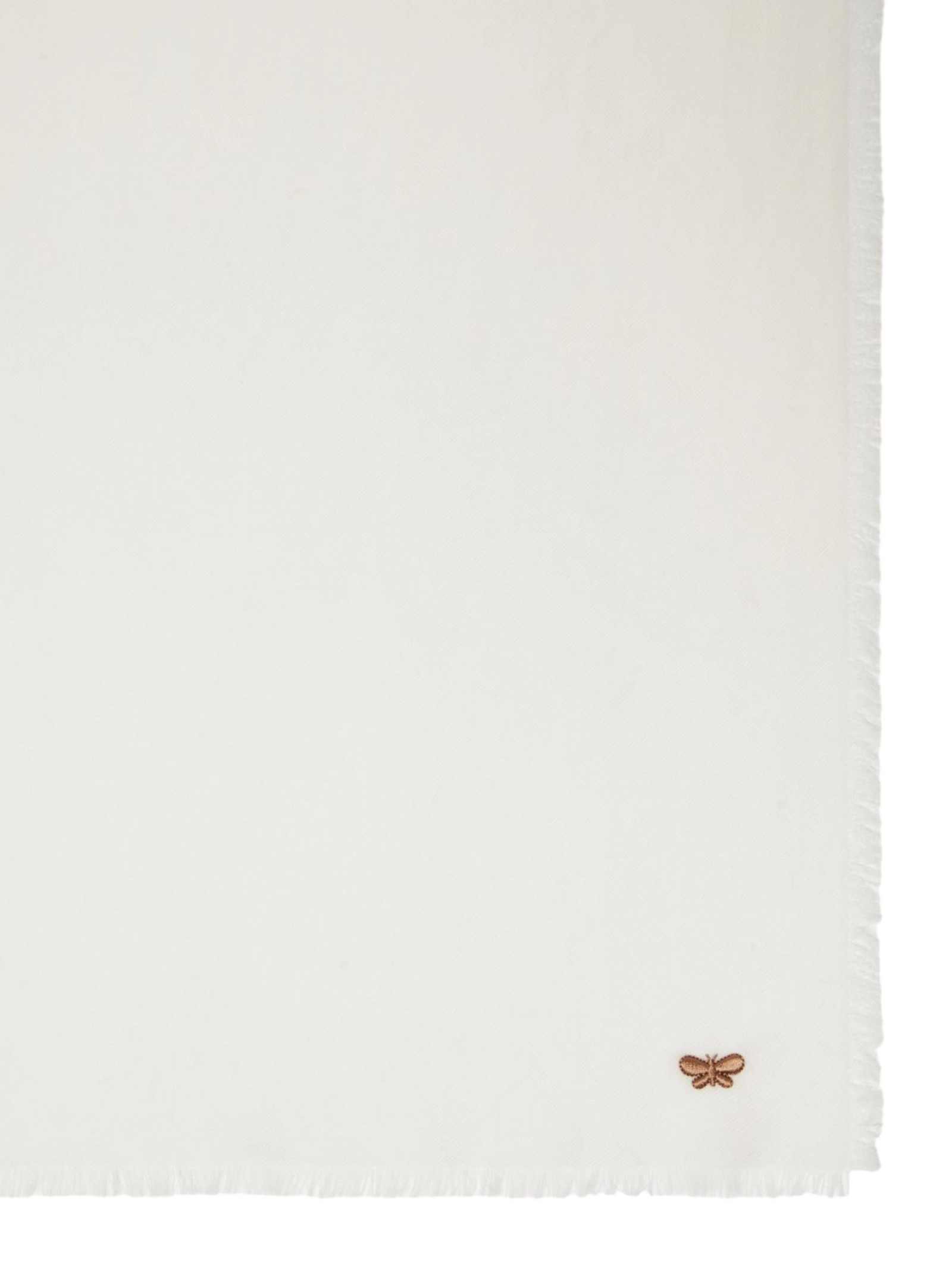 Scialle ampio personalizzato con effetto sfumato dégradé e logo ricamato con farfalla.