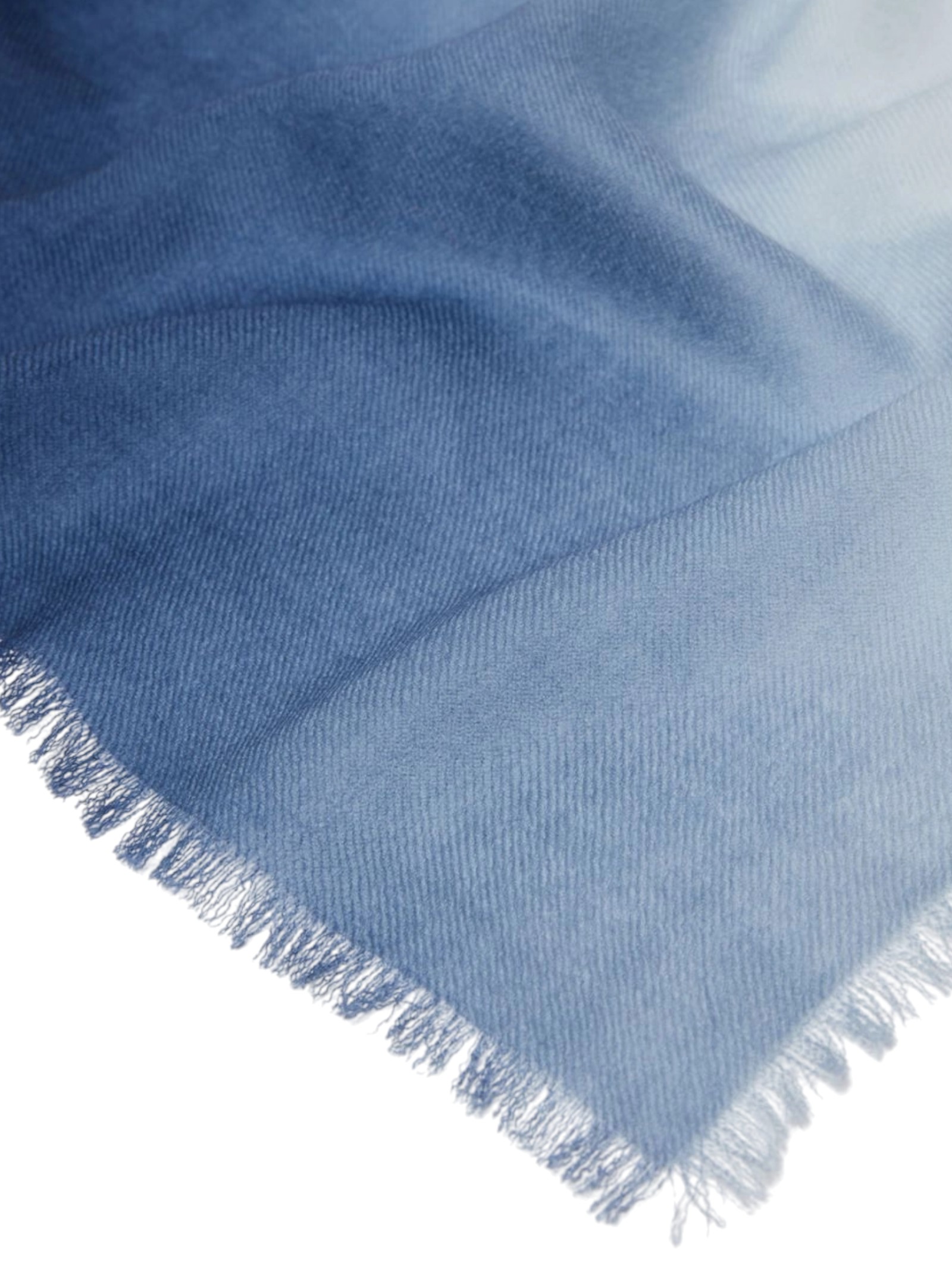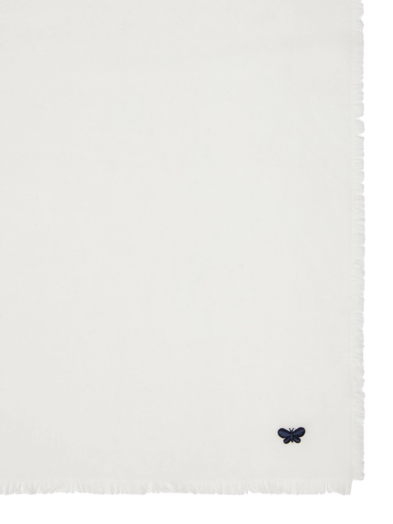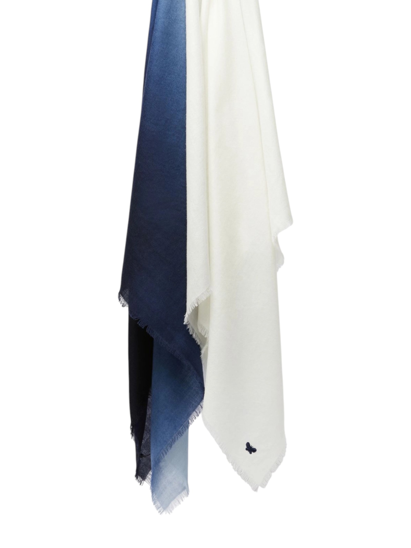 Scialle ampio personalizzato con effetto sfumato dégradé e logo ricamato con farfalla.