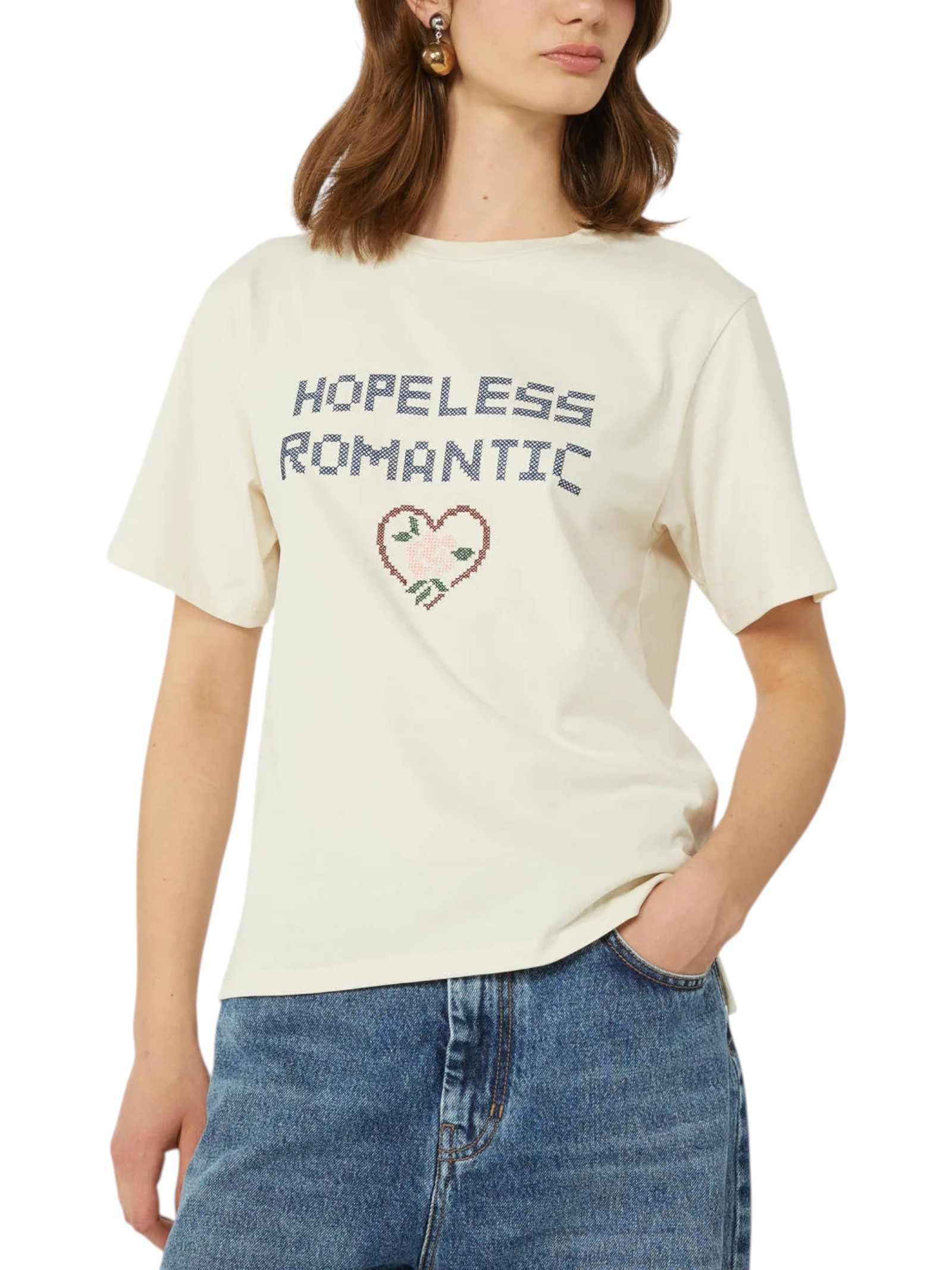 T-shirt basic personalizzata con motivo di stampa e ricami sul davanti.