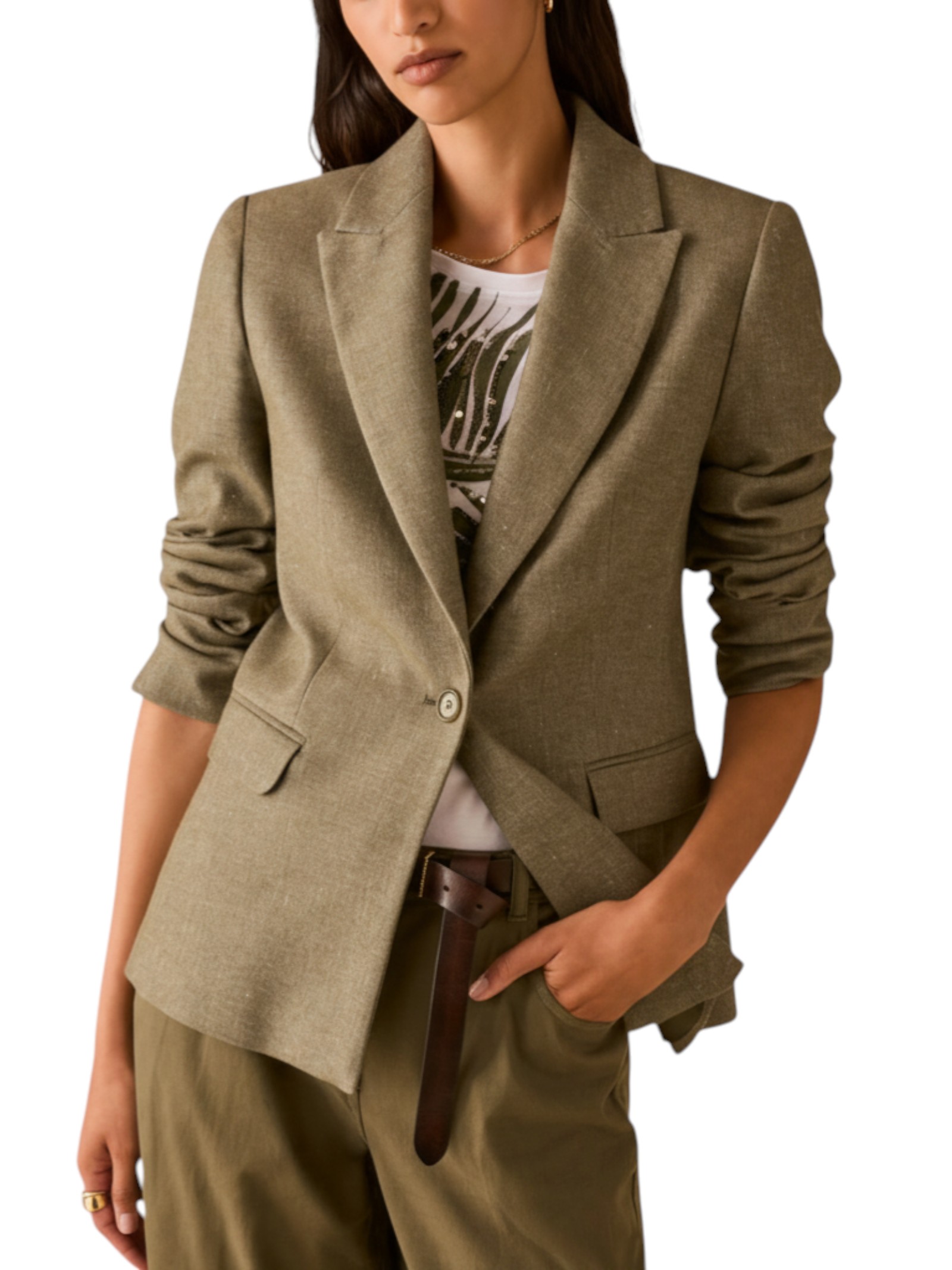 Tagliato per sfiorare la silhouette, questo blazer dal design classico in cotone e lino accompagna con stile il passaggio verso i giorni più caldi.