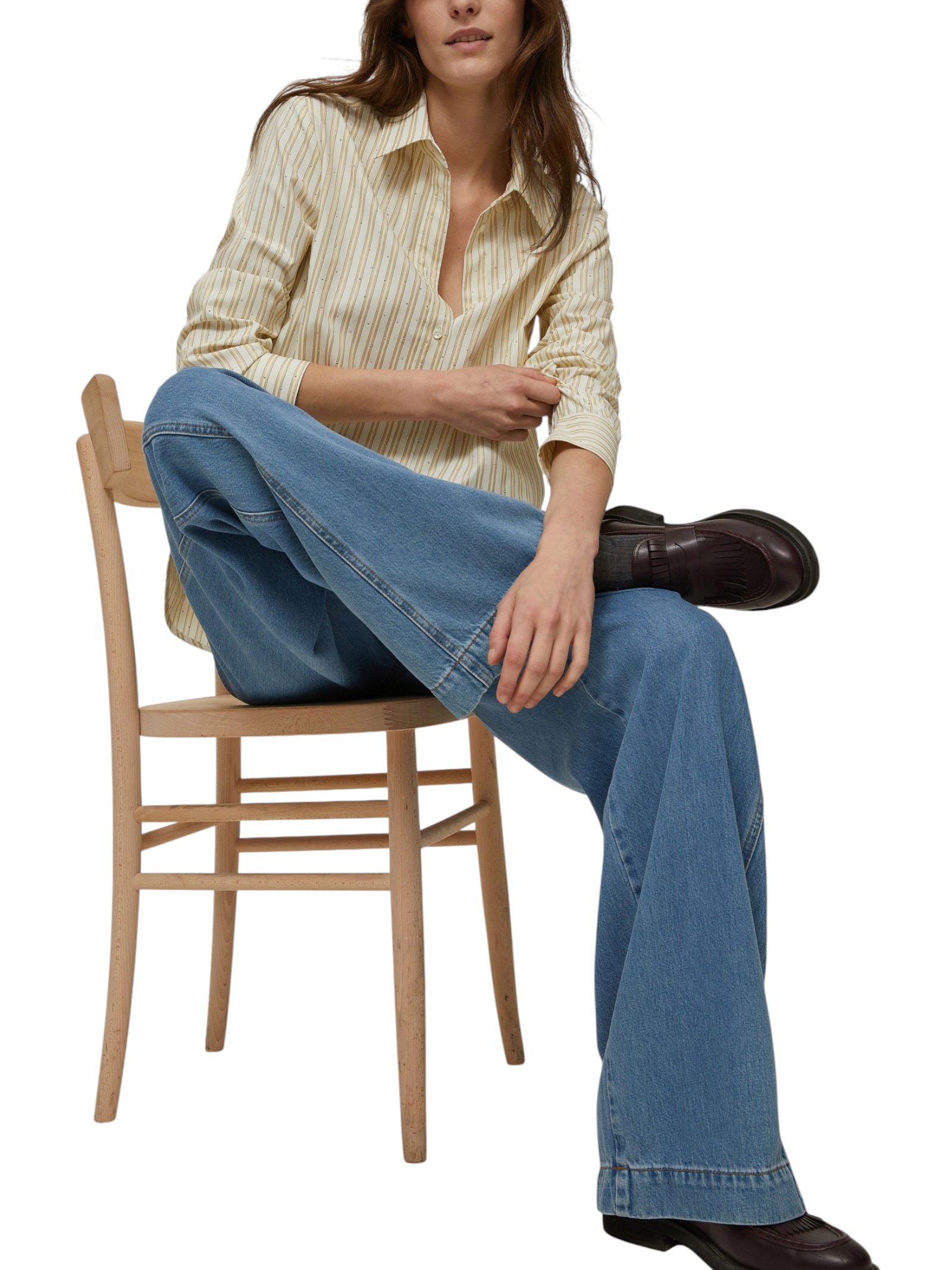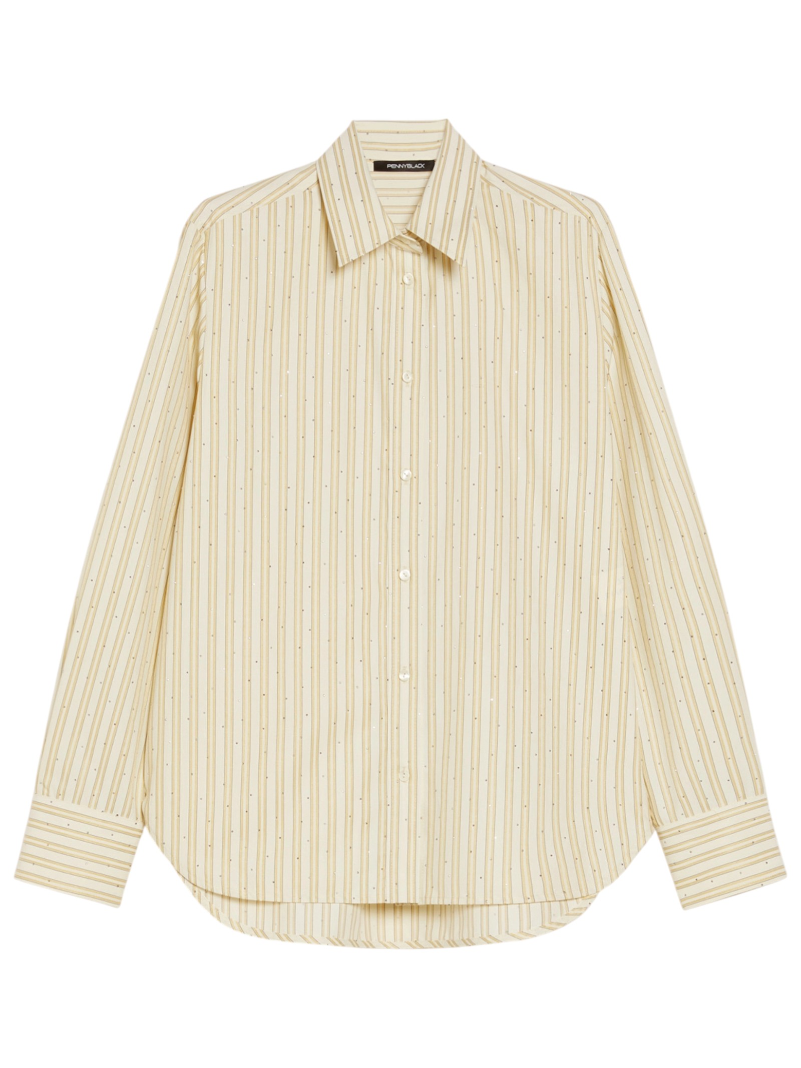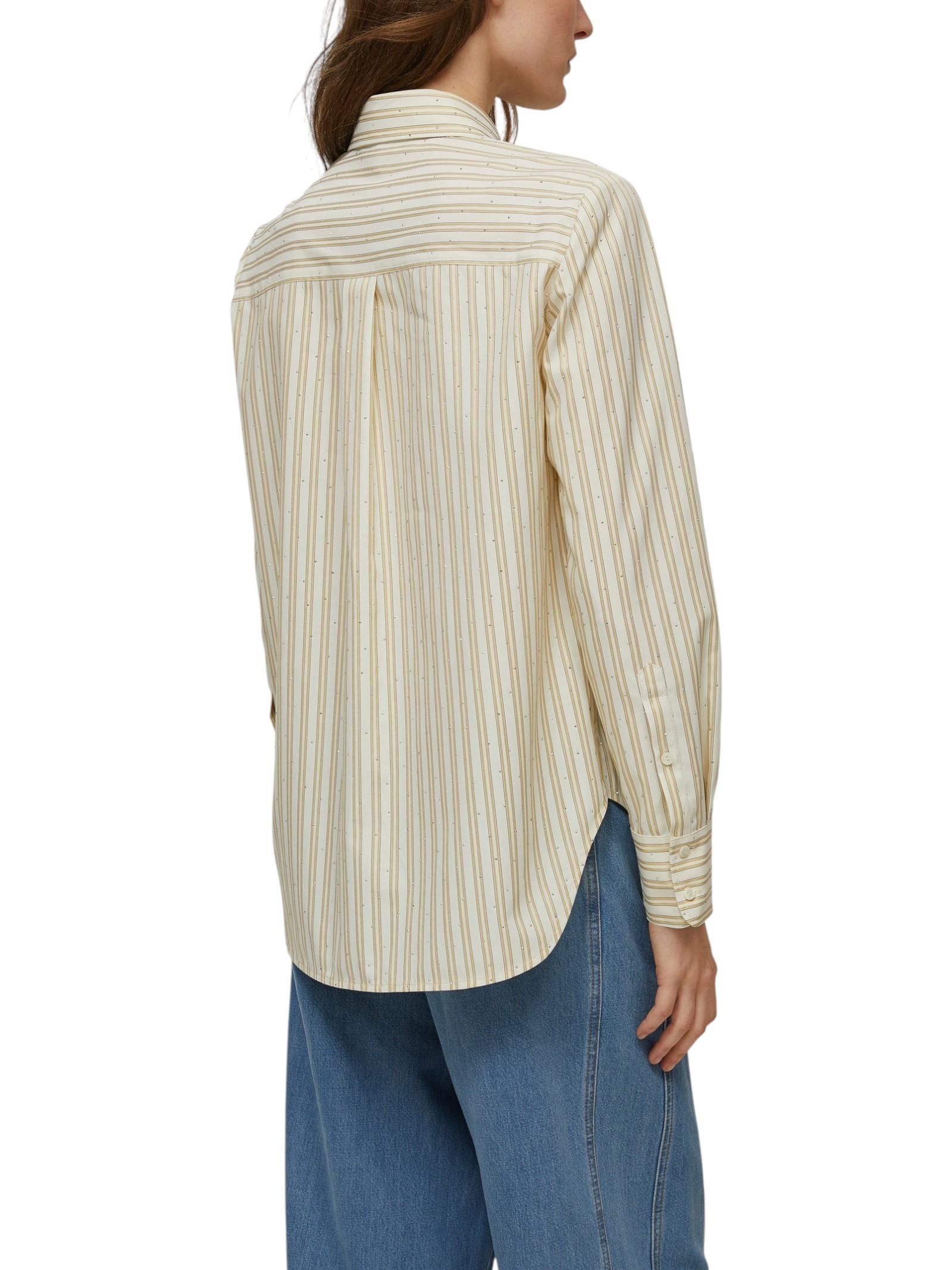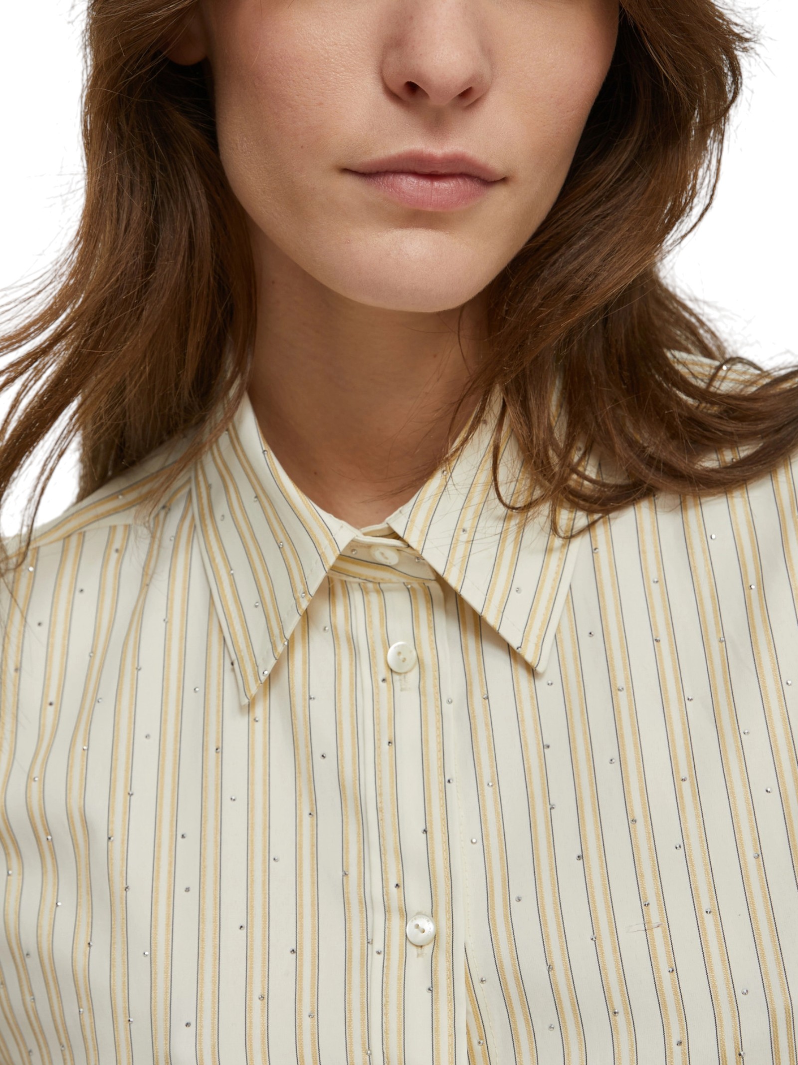 Reinventata da micro-borchie scintillanti, la camicia maschile a righe bastonetto sarà perfetta sui jeans e darà un twist inaspettato al completo sartoriale.