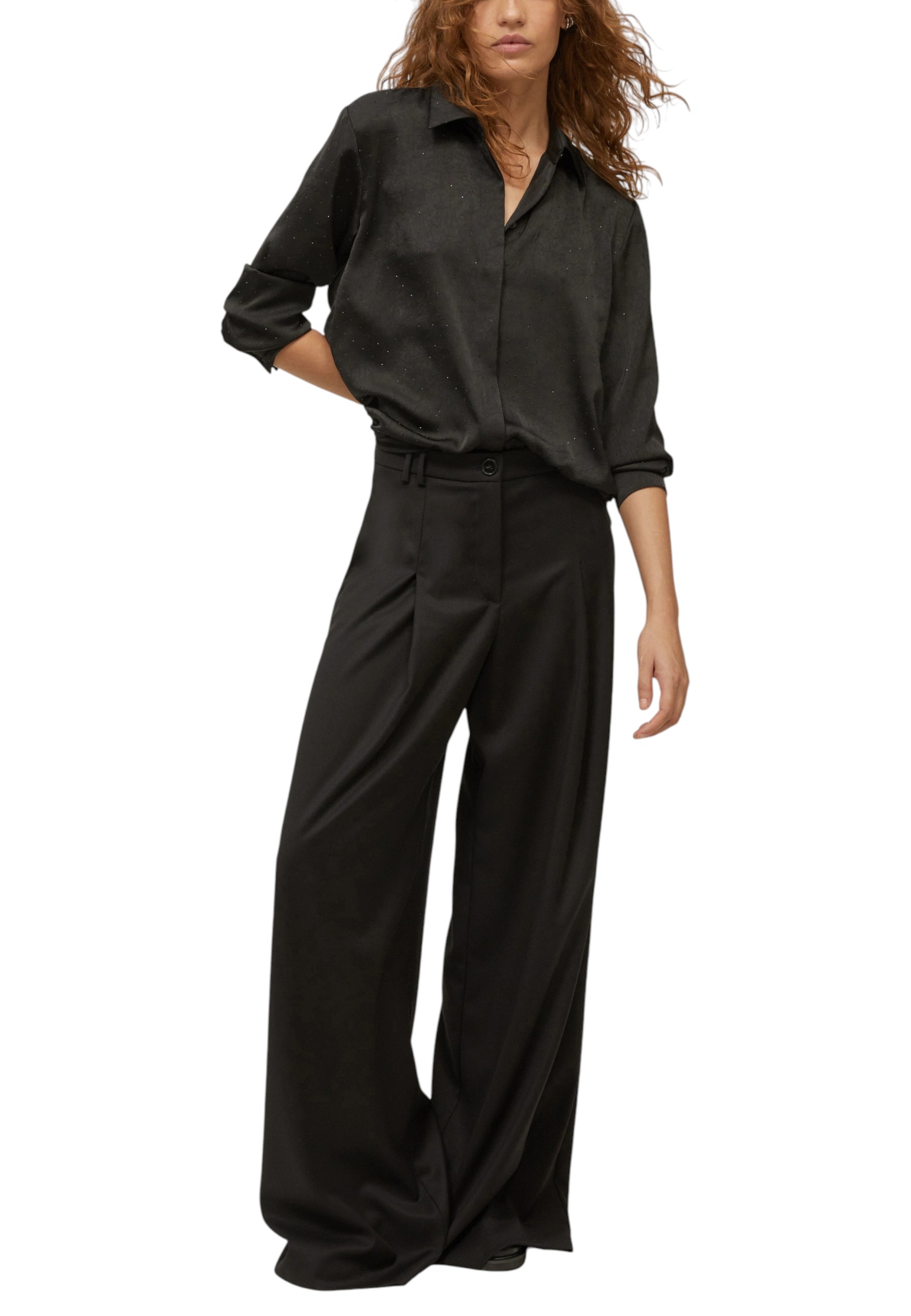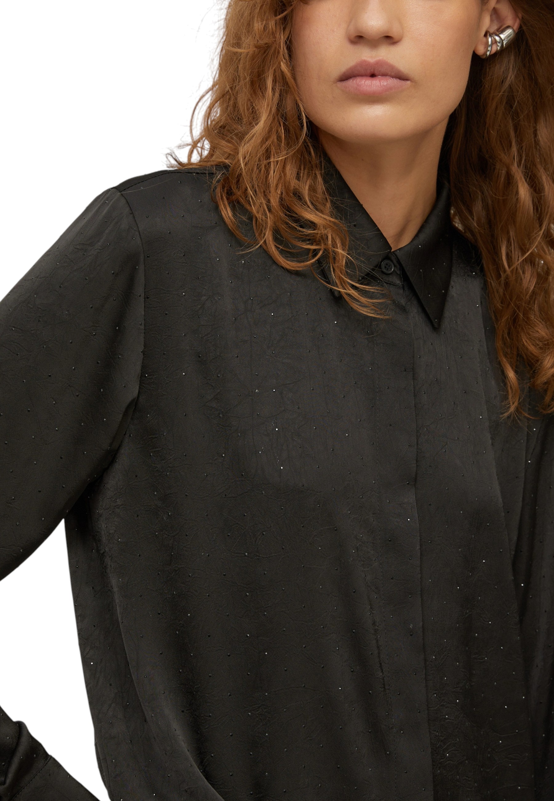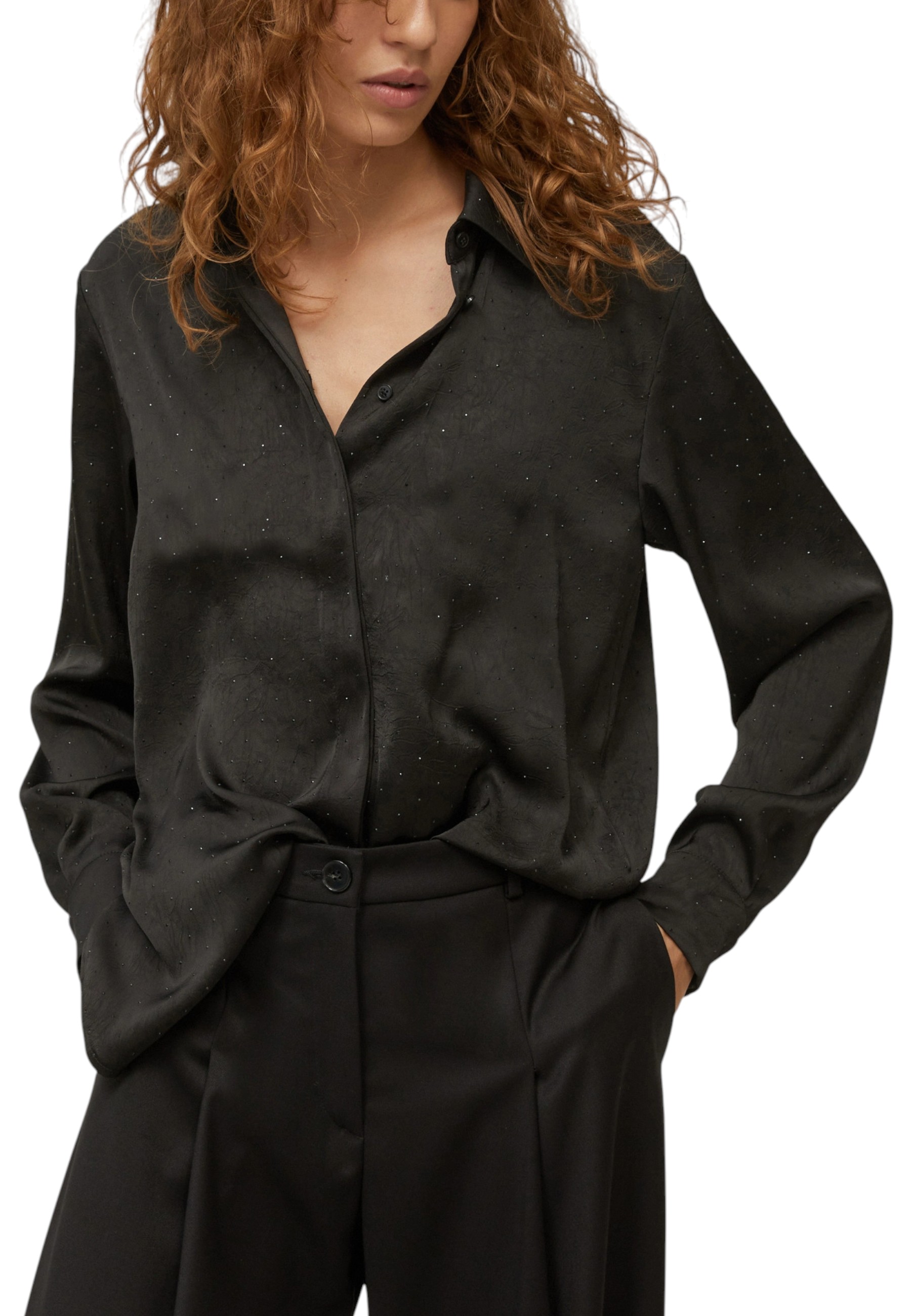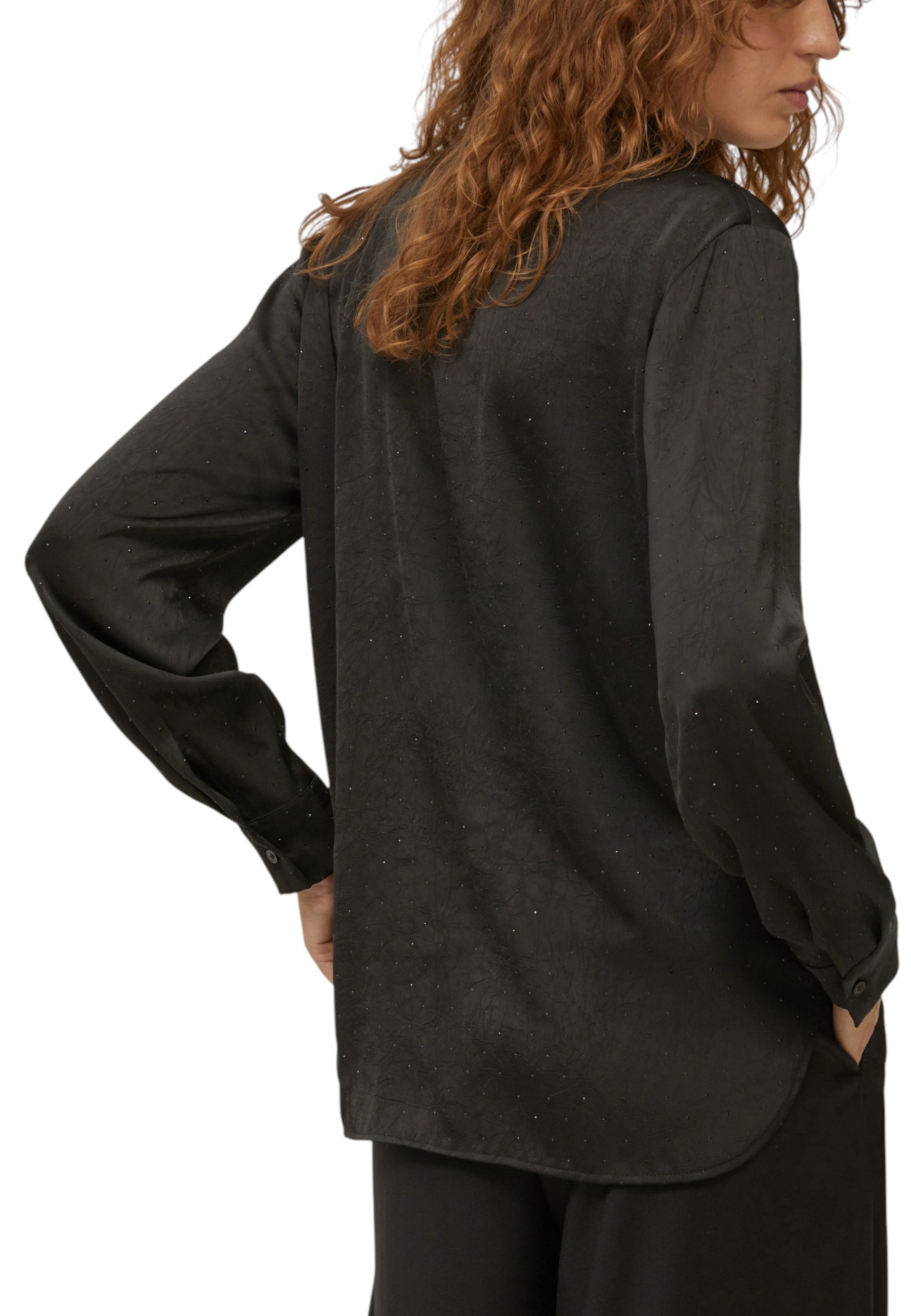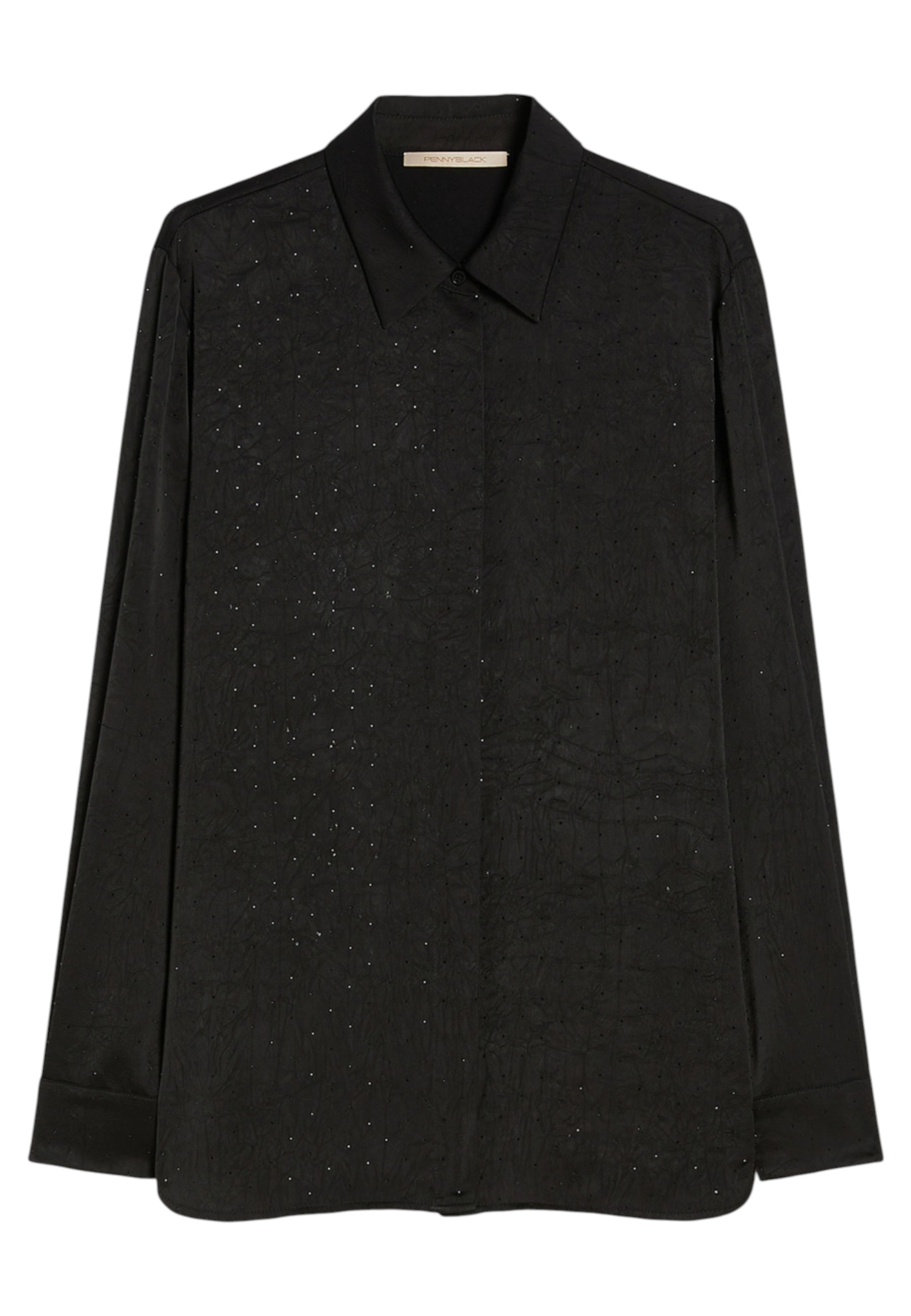 Caratterizzata da una leggera finitura increspata, questa camicia aggiunge i delicati bagliori di micro-borchie alla raffinata lucentezza del raso. Per accendere ogni look.