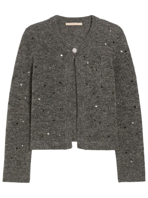 Impreziosito da strass scintillanti, il cardigan in blend di lana e alpaca ha le proporzioni giuste per riscaldare con stile il party look, ma sarà perfetto anche sui jeans.